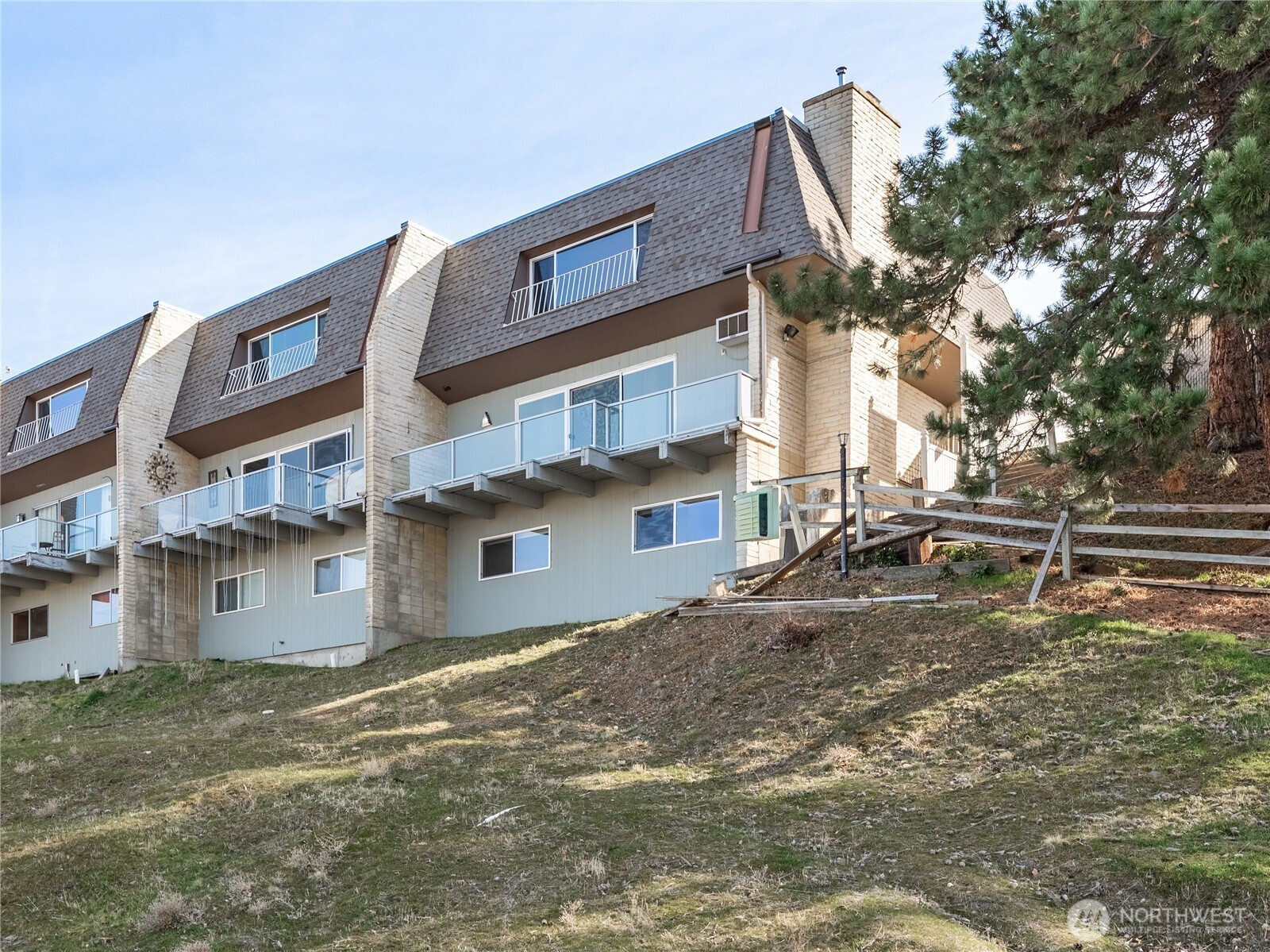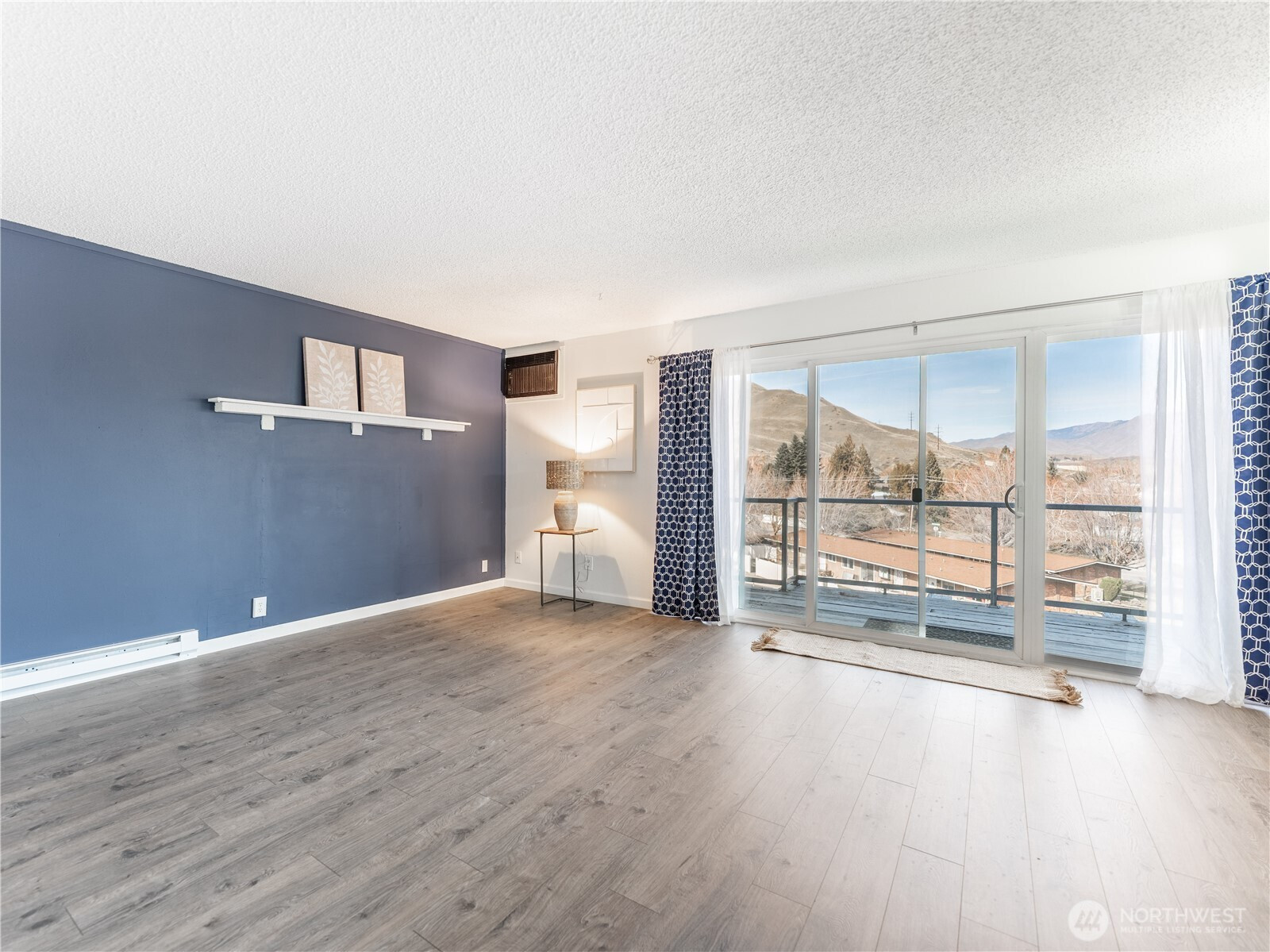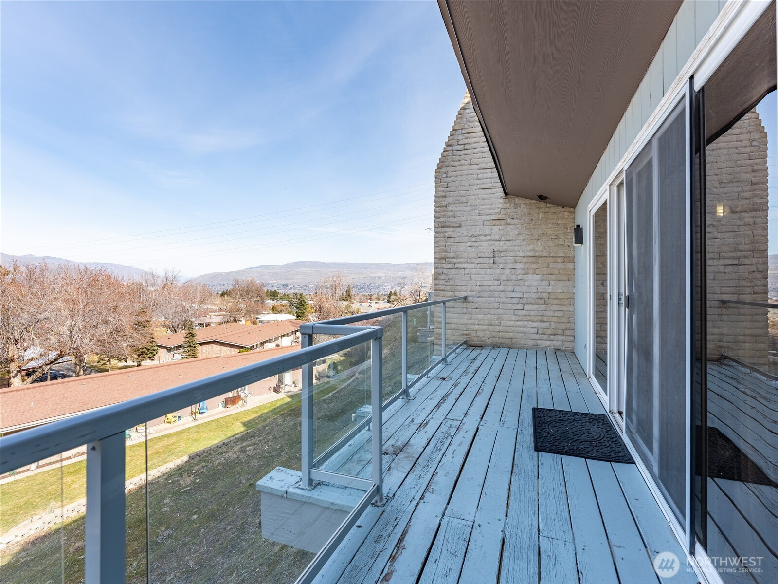 Stunning two-level townhouse-style condo with sweeping Wenatchee Valley, mountain, and river views! The main level features a galley kitchen that opens to the dining and great room with luxury vinyl plank flooring throughout. The primary suite offers dual sinks and a spacious closet. Downstairs includes two bedrooms plus a versatile bonus room—ideal for a home office or workout space—along with a laundry room featuring built-in shelving. New composition roof in 2023. HOA dues cover water, sewer, and garbage. Two covered parking spaces and a view deck perfect for enjoying wildlife and sparkling valley lights. Conveniently located near trails and shopping.