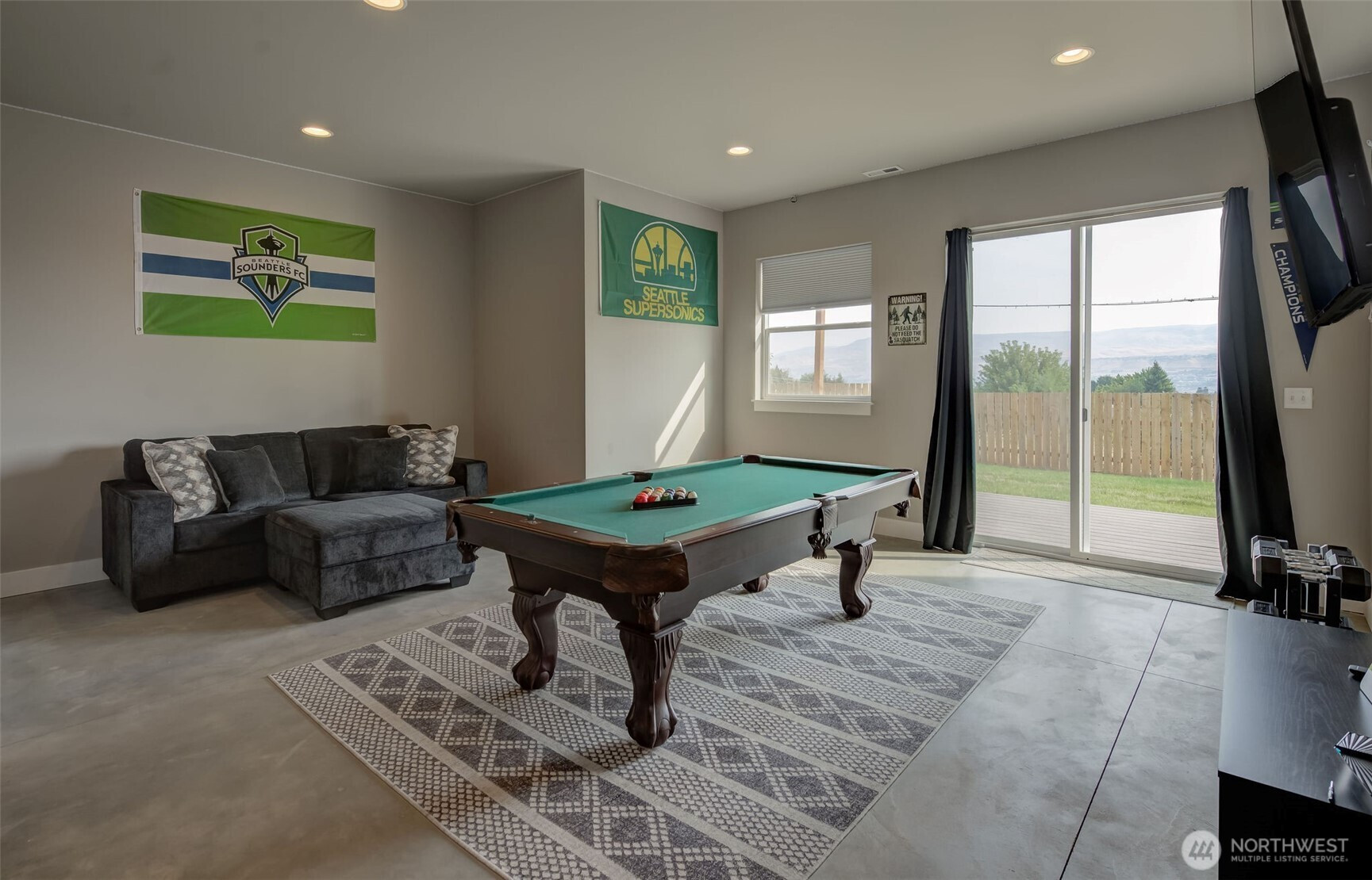 Game on here!! This 3 bedroom home has a winning game/entertainment room for all to enjoy with its high ceiling, cements floors, full bath, sliders to the outside yard, deck and more to enjoy! Large primary bedroom on the main floor and laundry room as well. Two good size bedrooms up with a full bath to share. The walnut color flooring is beautiful, accented with granite kitchen countertops, super clean and move in ready. Full range valley views highlights this home nestled on the hillside.