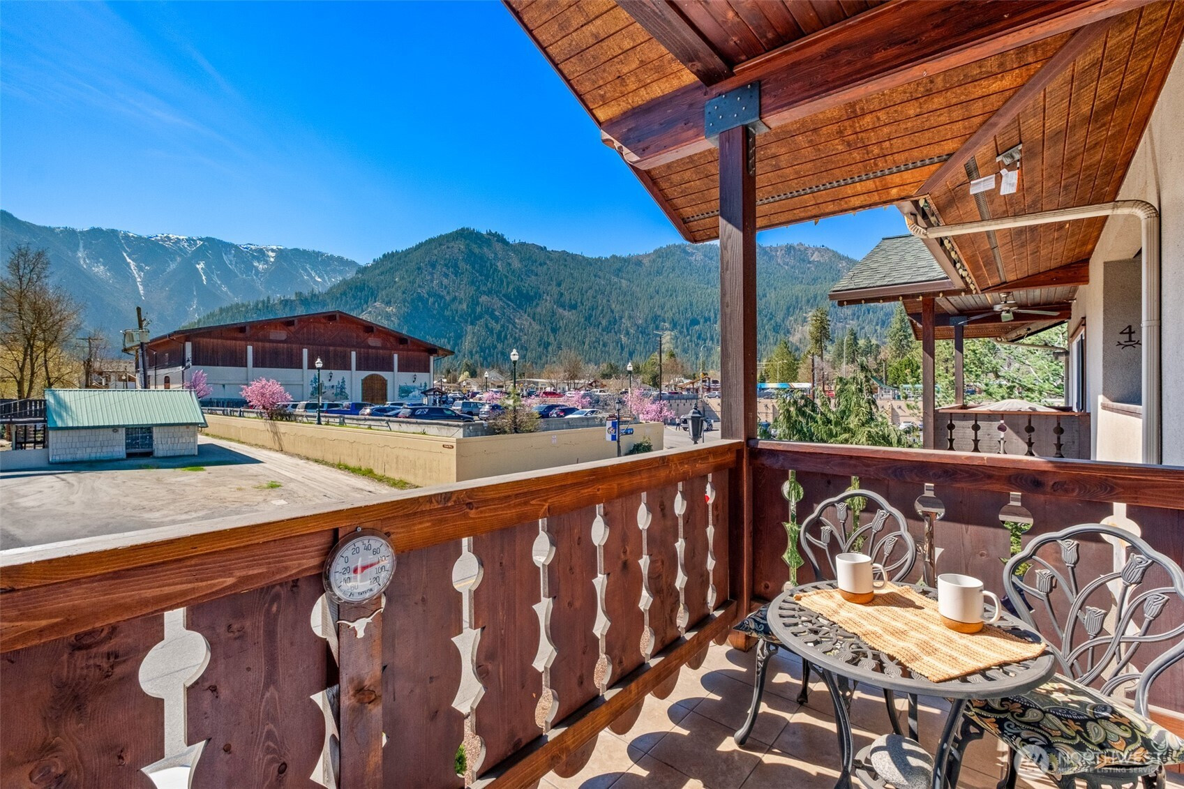 Luxury Alpine Retreat in the heart of Leavenworth! Indulge in an upscale condo with the best mountain views and location Leavenworth has to offer. This investment condo makes around $50,000 in rental income and comes completely furnished and includes future reservations! Start making money the day you close. Inside, the open floor plan features high-end finishes, quart countertops and newer appliances ideal for relaxing or entertaining. Unwind by the cozy fireplace or step out onto your private front balcony to take in the charming alpine surroundings. Both bedrooms are designed for rest and privacy, with the main bedroom having an outside deck for fresh mountain air. The back deck is also equipped with a pulley-system to pull up luggage and heavy groceries. A private garage is also included with plenty of storage for all your toys. Whether you're sipping local wine, exploring nearby trails, or enjoying the festive downtown atmosphere, this luxury condo is your perfect home base for experiencing the best of Leavenworth. Adventure awaits from this perfect investment opportunity!