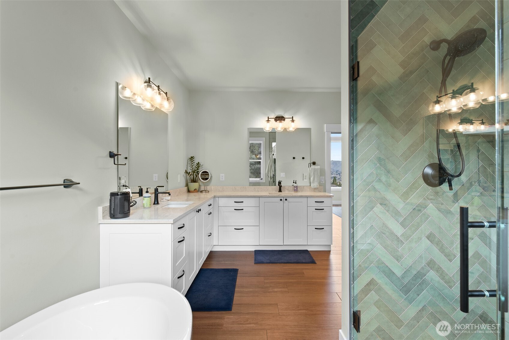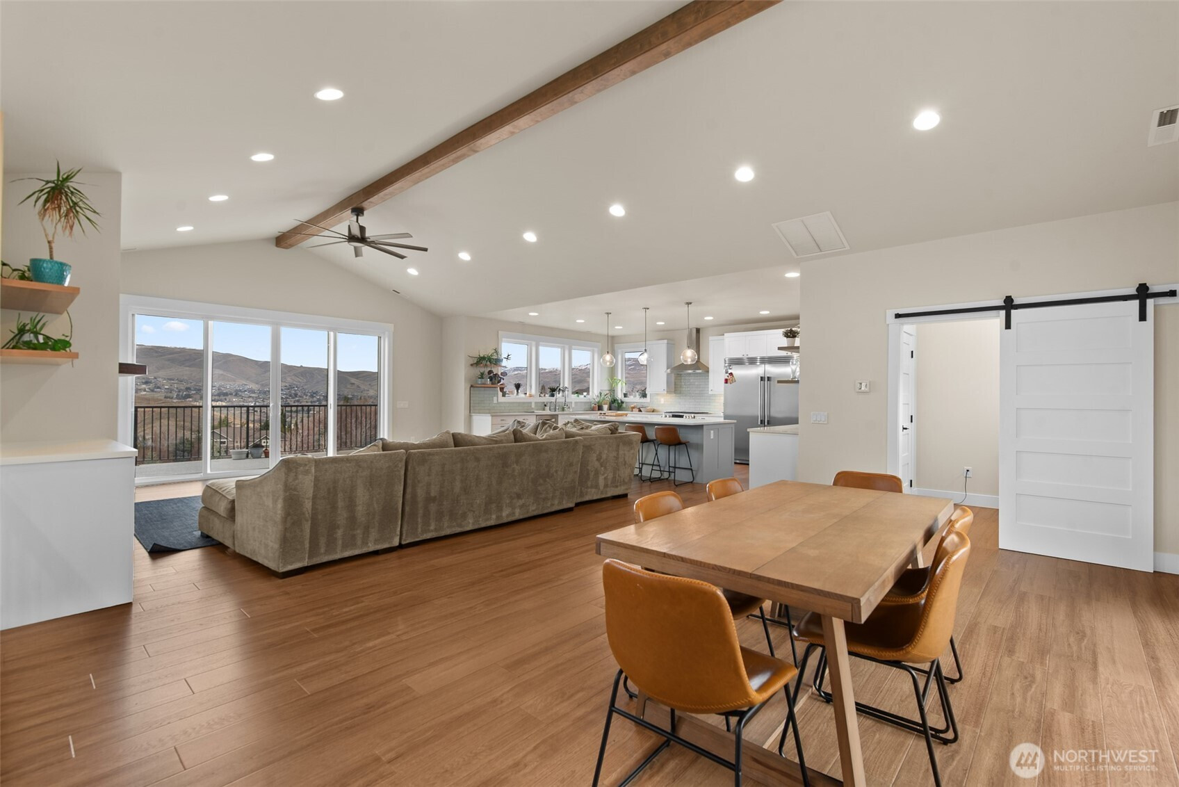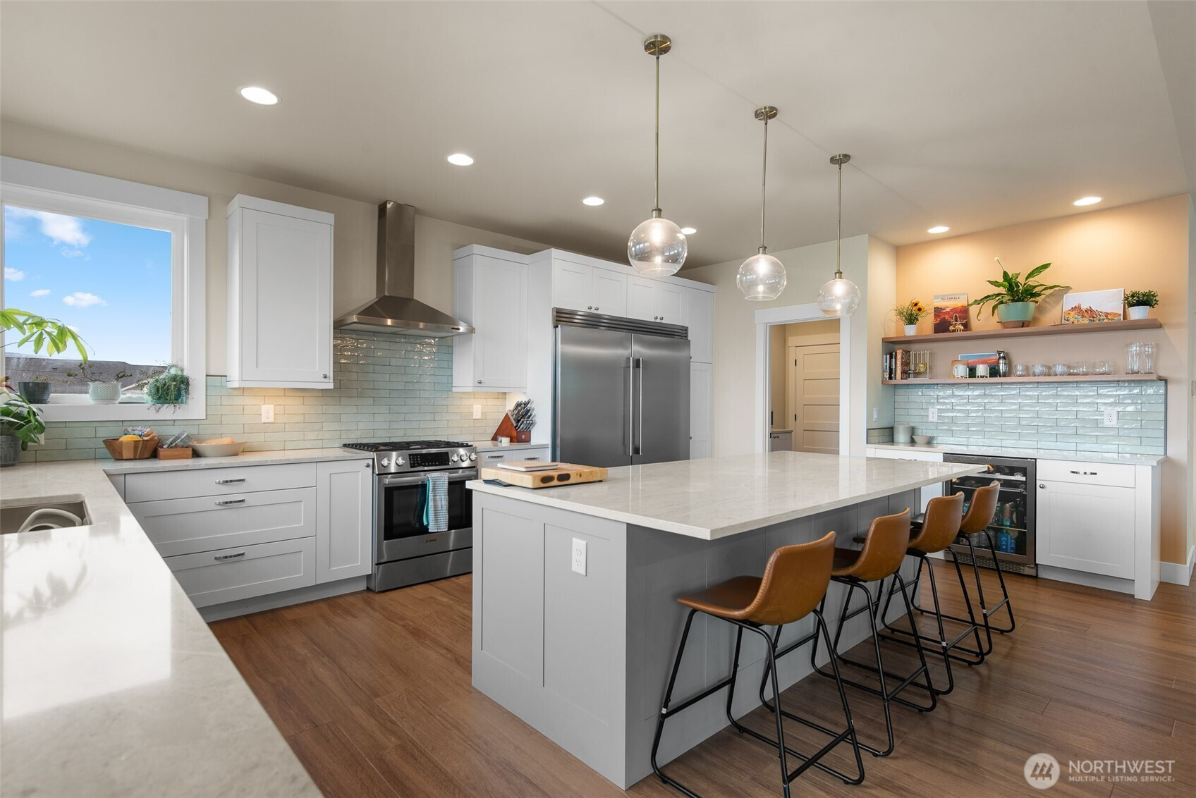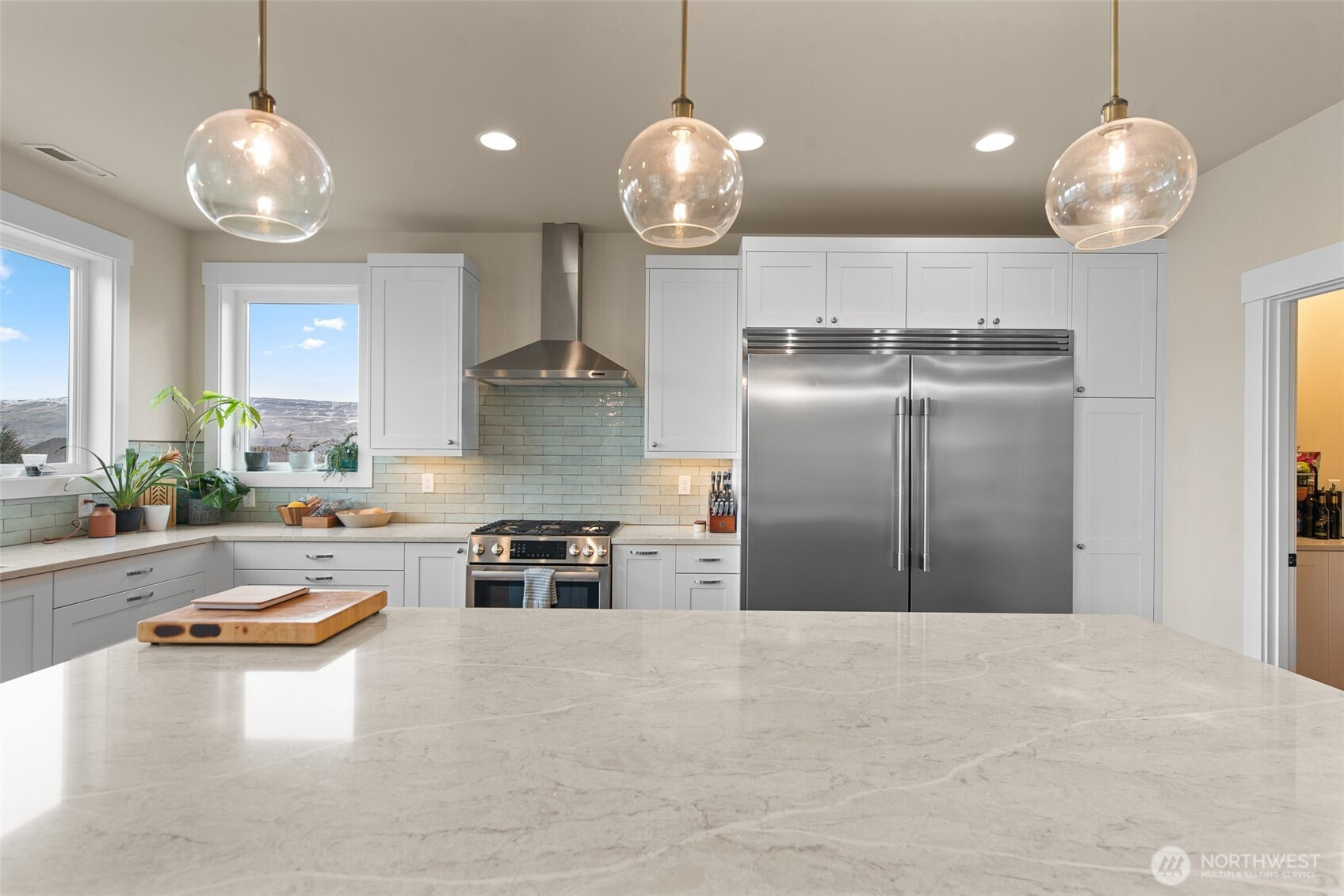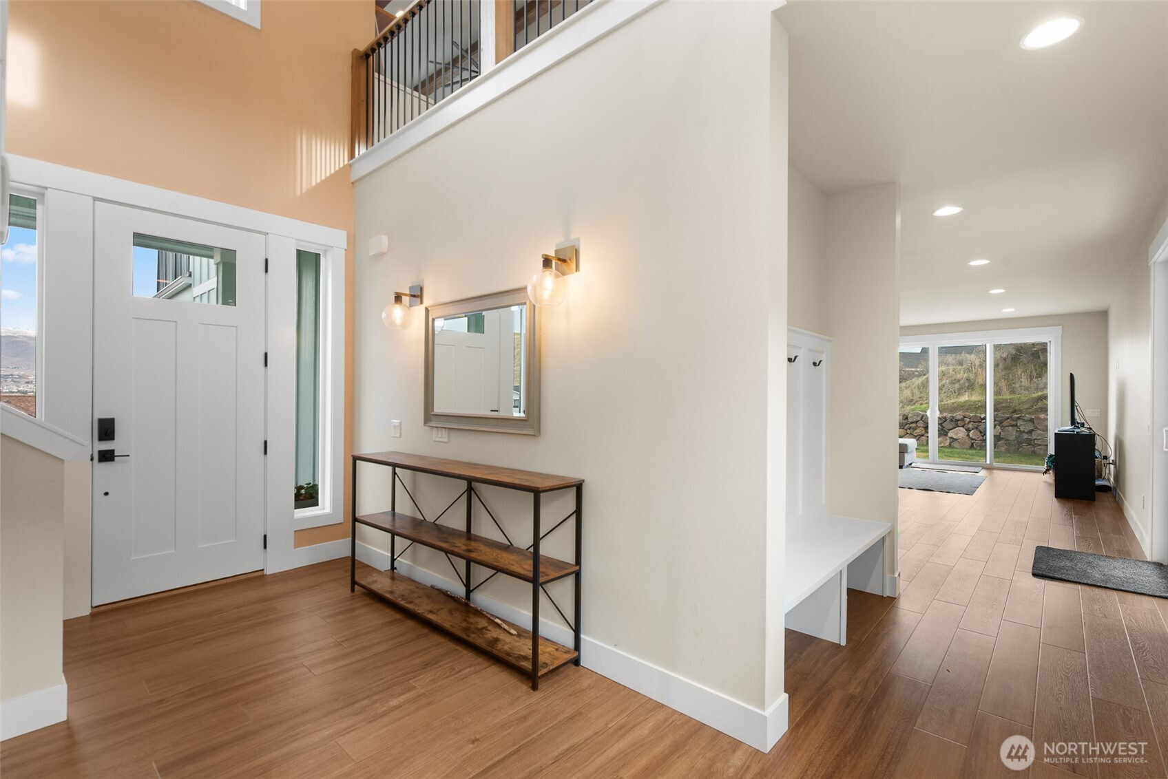 Custom built home with sweeping views tucked into the peaceful hills of the Wenatchee Valley. This impressive two-story home in the desirable Broadview neighborhood features high end finishes, soaring ceilings, and light-filled living spaces designed for comfort and style. The upper level showcases a stunning open concept layout with panoramic views, a living room with a beautiful gas fireplace, and a chef’s kitchen complete with a gas cooktop, oversized island, and spacious butler’s pantry. The primary suite is also upstairs, offering a spa-like bath, walk-in shower, and second laundry area. The lower level includes two generous bedrooms, a large family room, and a full laundry room. The 1,000+ sq ft garage offers three bays and a 30-amp RV hookup. Enjoy expansive view decks, level lawn space, and direct access to the Sage Hills trail system right out your back door.
