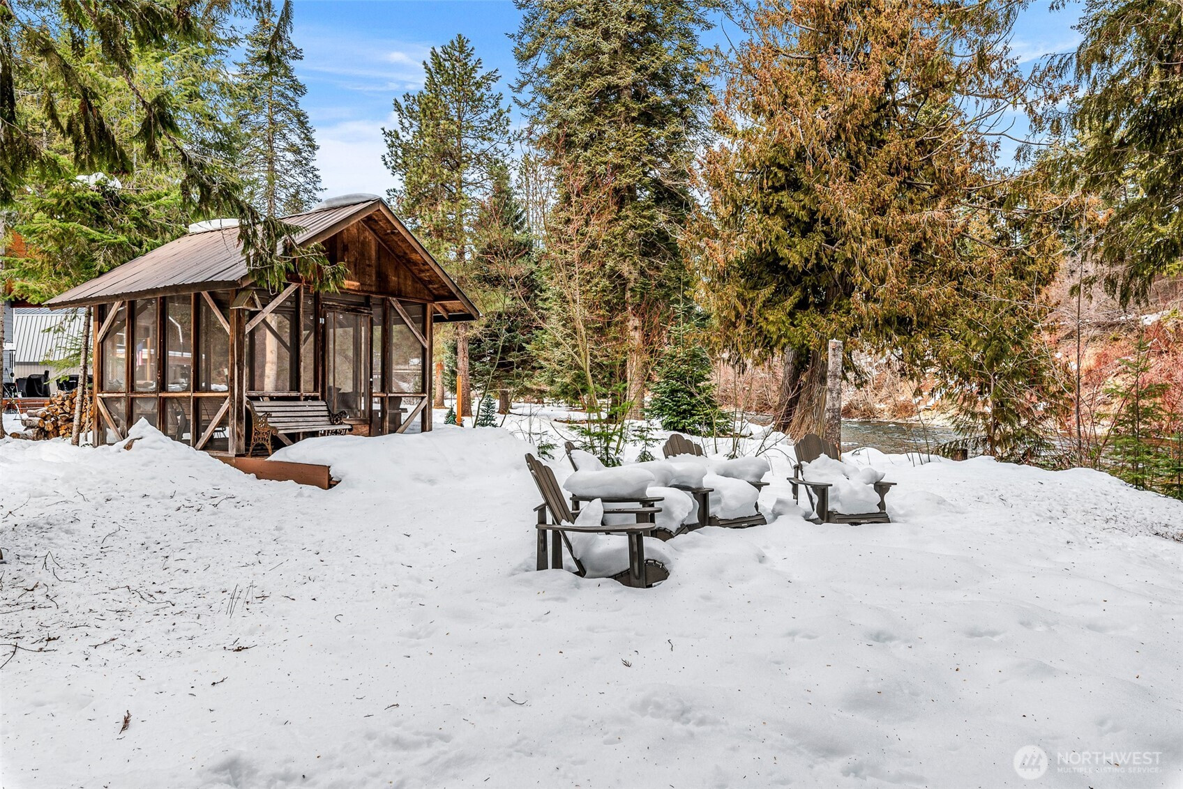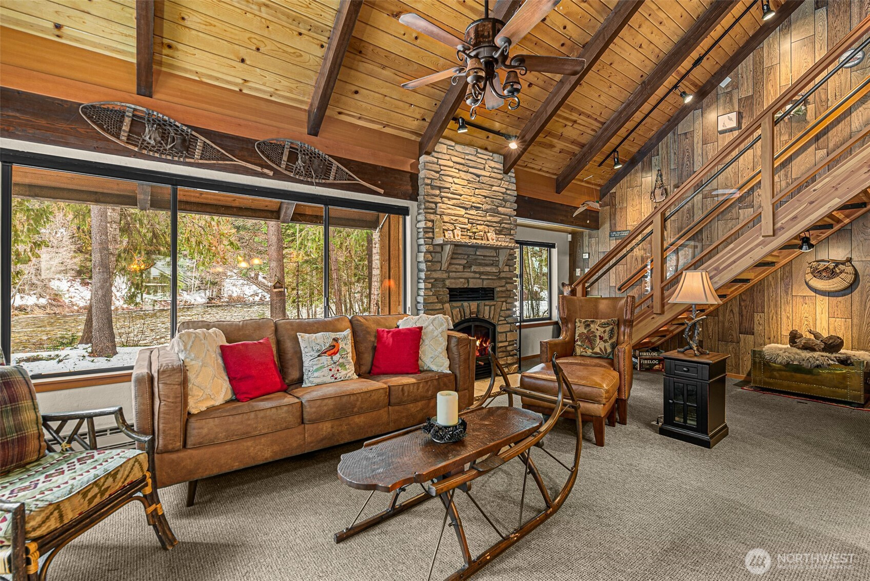 Welcome to Papa Bear’s River Cabin, a charming mountain retreat nestled in the desirable Chiwawa Pines community, offering 160 feet of Chiwawa River frontage and the rare advantage of a permitted short-term rental. Set on 0.80 acres with two lots, this property delivers space, privacy, and exceptional investment potential. The cabin features two bedrooms plus a loft, with a cozy, functional layout designed for both relaxation and gathering. The living space is anchored by a floor-to-ceiling dry stack stone fireplace, creating a warm lodge-style ambiance that perfectly complements the riverfront setting. The primary bedroom enjoys peaceful river views, while the sights and sounds of the Chiwawa River can be experienced from most every window in the home. Outdoor living is exceptional, featuring ample space for entertaining, recreation, or quiet moments along the water’s edge, highlighted by a covered riverside hot tub—perfect for year-round enjoyment. Whether enjoyed as a personal mountain escape or a proven income-producing vacation rental, this property offers flexibility and long-term value. Located just minutes from downtown Leavenworth, Lake Wenatchee, and year-round recreation, this is a rare opportunity to own riverfront property with an active STR permit in one of the area’s most sought-after mountain communities.