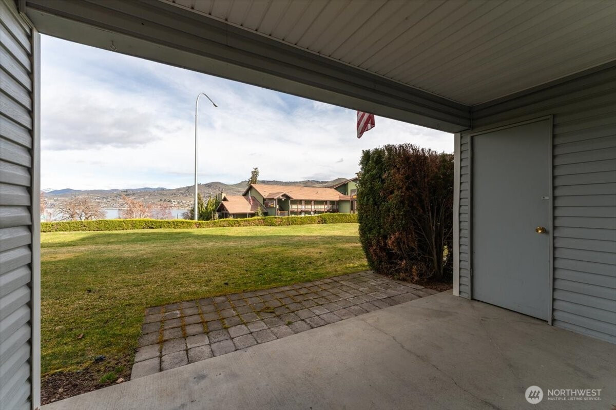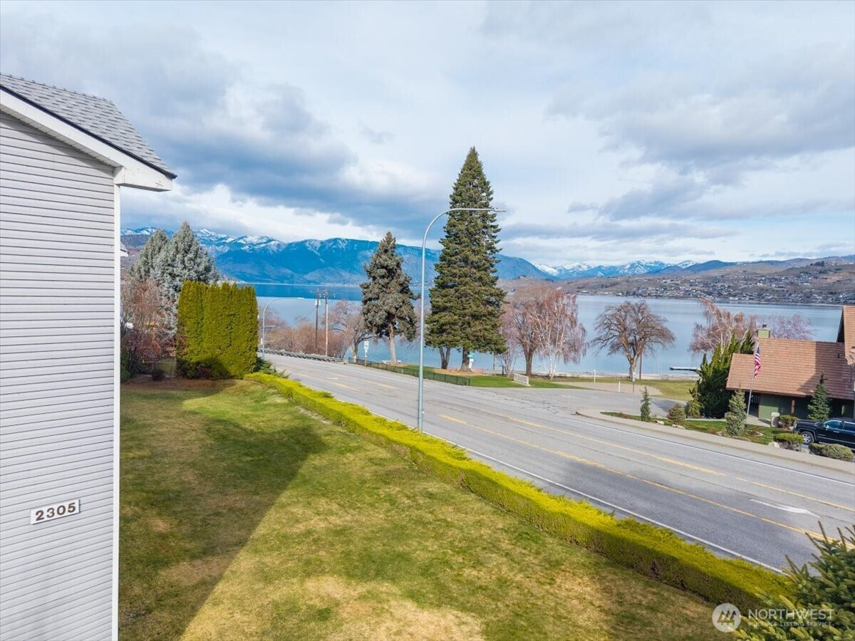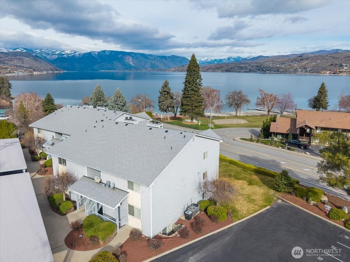 Looking for the ideal location with that perfect blend of comfort and convenience, this ground level Lakeside unit offers that. Enjoy the pleasing lake view from your covered patio and large front yard. The unit offers 2 large bedrooms, with primary bedrrom/ensuite. The open living/dining kitchen bring in the natural light with pleasant view of Lake chelan. The location can not be better, with access to the inviting Lakeside Park directly in front of the unit. The new walking trail to downtown Chelan is also at your doorstep. The Overlake Condominium complex provides 2 dedicated parking spaces, one covered and one uncovered. The unit is freshly painted with new window coverings. HOA provides water, sewer, garbage, common area maintenace and yard service. The unit is currently vacant. AI enhanced furnishings.