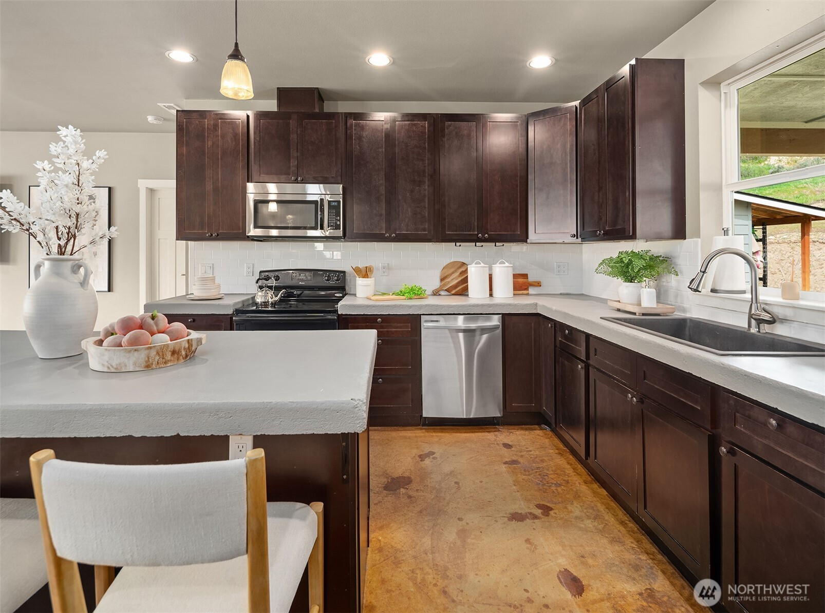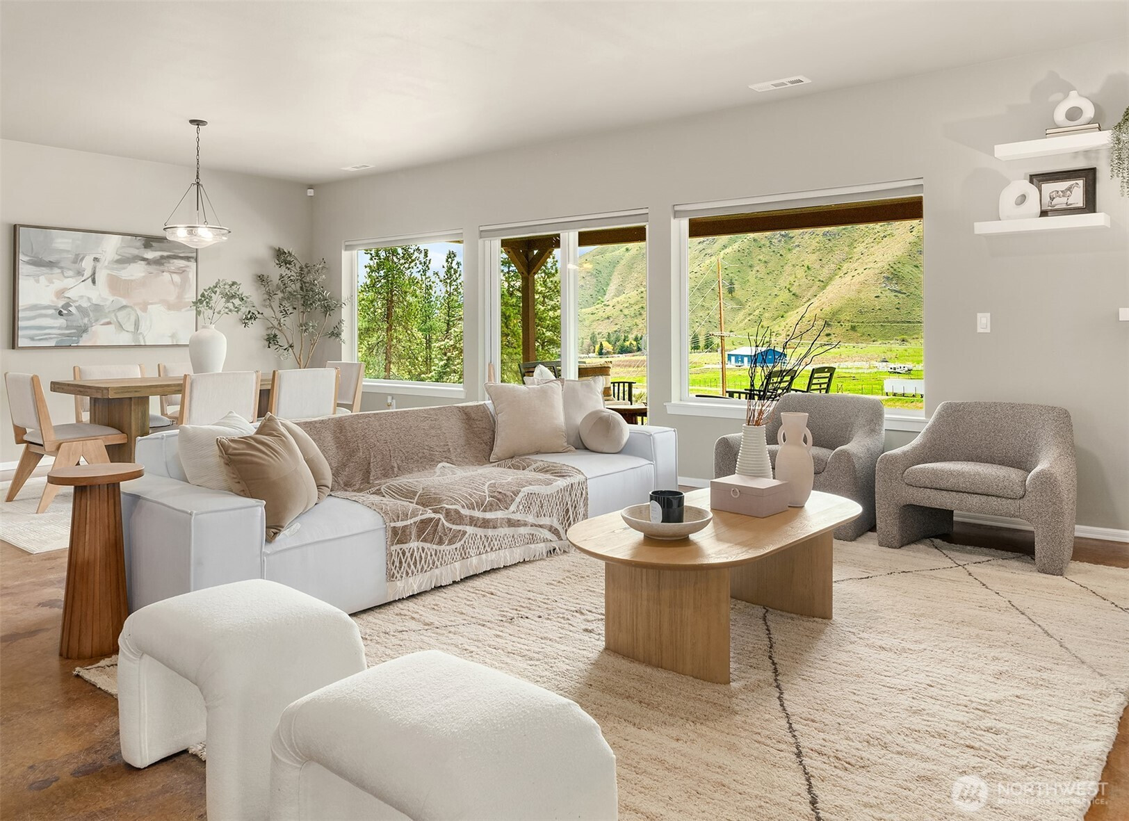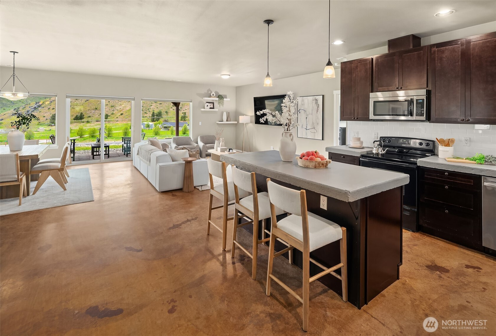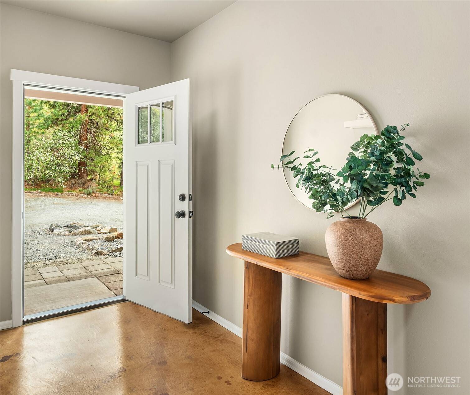 First time on the market, this inviting one-story Chelan home offers comfort, convenience, and opportunity. Featuring 3 bedrooms and 1.75 baths, the functional layout provides easy everyday living with bright, welcoming spaces and a practical floorplan. Beautiful concrete floors run throughout the home, complemented by concrete countertops in the kitchen for a clean, modern aesthetic. A heat pump system provides efficient heating and air conditioning for year-round comfort. A spacious covered patio extends the living area outdoors—perfect for relaxing, entertaining, and enjoying Chelan’s sunshine year-round. Situated on over 8 acres, the property offers room to roam, relax, and expand. A small enclosed area is ideal for gardening or pets, while the outbuilding provides excellent space for a shop or additional storage. Enjoy close proximity to Lake Chelan for boating, wineries, and endless recreation, just minutes to Downtown Chelan for shopping and dining, and easy access to Wenatchee for additional amenities and travel. Whether you're seeking a full-time residence, weekend retreat, or investment property, this home blends charm, space, and location in one of Central Washington’s most desirable destinations. A rare opportunity to own a well-loved home making its debut on the market.