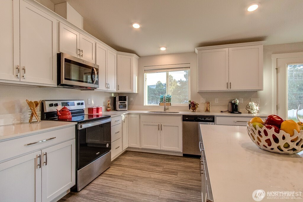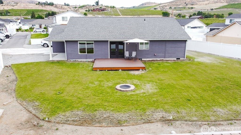 Enjoy one level newer 3 bed, 1.75 bath rambler in Manson with custom floor plan located within walking distance to Manson amenities, schools, lake access, parking parks and dining options including variety of wineries nearby. The home's interior features quartz counters in the kitchen and bathrooms, white cabinets and stainless steel appliance package in the kitchen. Primary bedroom is large with huge walk-in closet and double sinks and tiled shower in master bathroom. Kitchen and great room face out towards the large fully fenced back yard with automatic sprinkler system, partial lake view and great mountain view. There is a large space on one side of the house for park RV or boat, 400 amp electrical, irrigation water. Come to see!!!