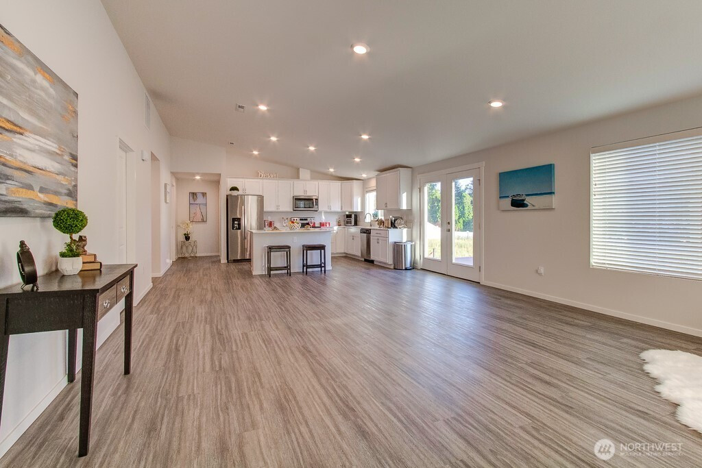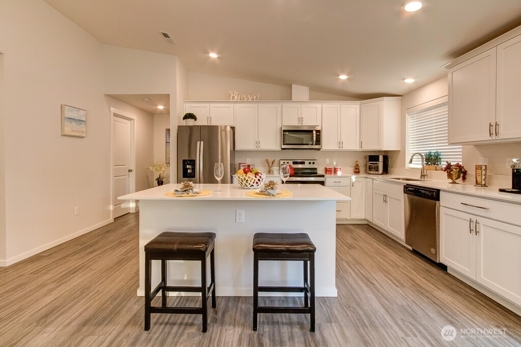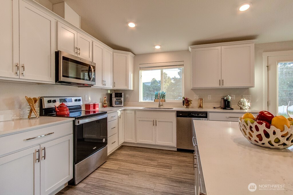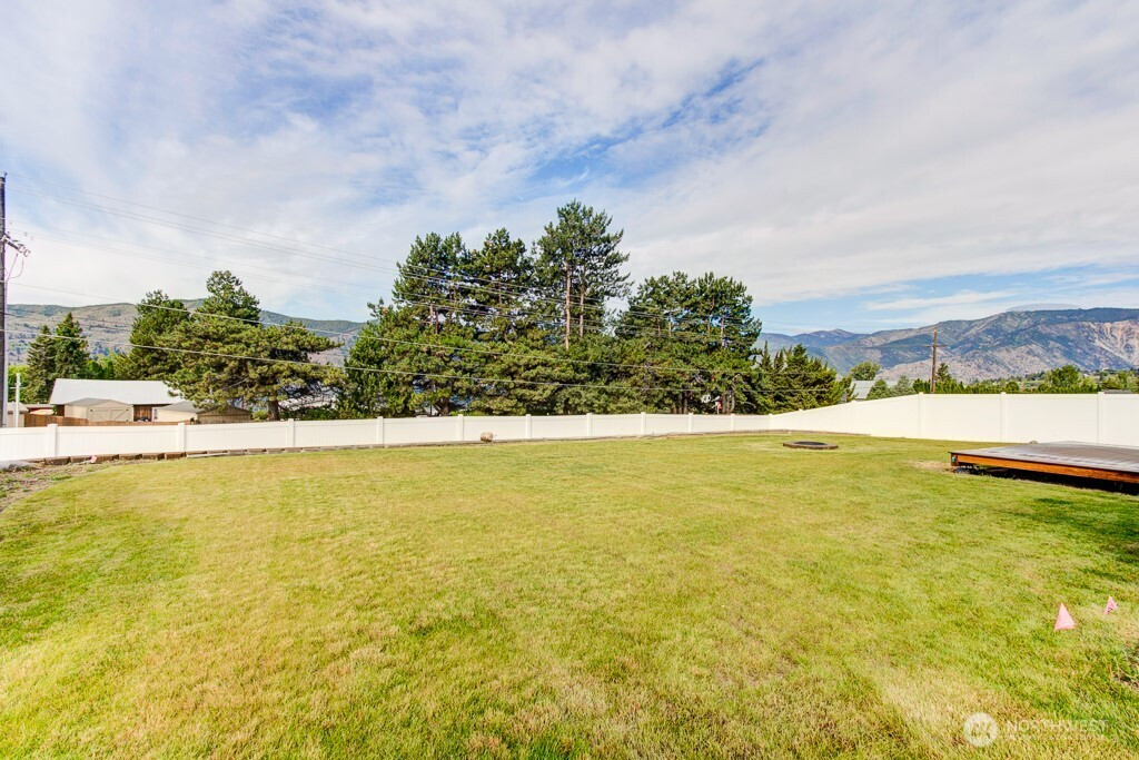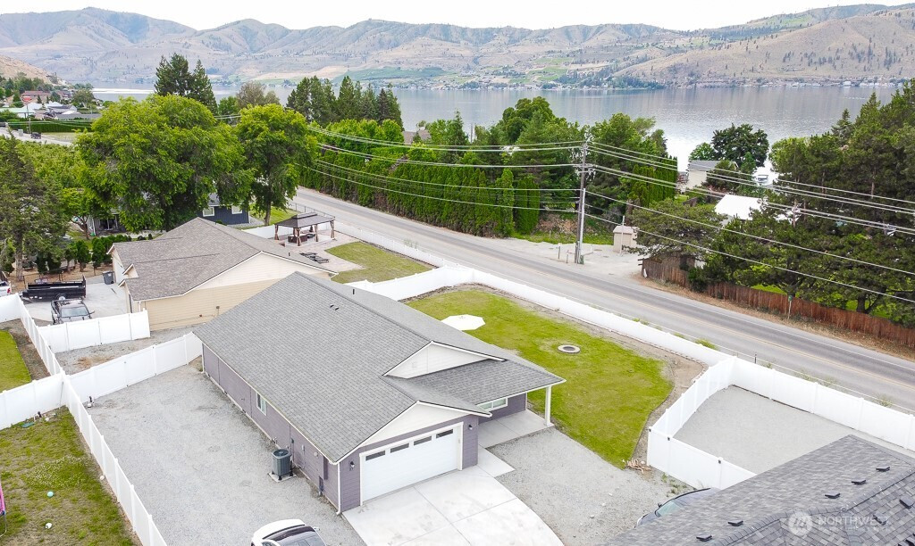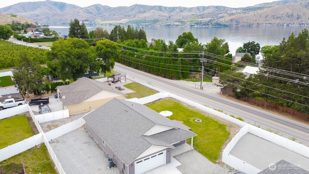 Enjoy one level newer 3 bed, 1.75 bath rambler in Manson with custom floor plan located within walking distance to Manson amenities, schools, lake access, parking parks and dining options including variety of wineries nearby. The home's interior features quartz counters in the kitchen and bathrooms, white cabinets and stainless steel appliance package in the kitchen. Primary bedroom is large with huge walk-in closet and double sinks and tiled shower in master bathroom. Kitchen and great room face out towards the large fully fenced back yard with automatic sprinkler system, partial lake view and great mountain view. There is a large space on one side of the house for park RV or boat, 400 amp electrical, irrigation water. Come to see!!!