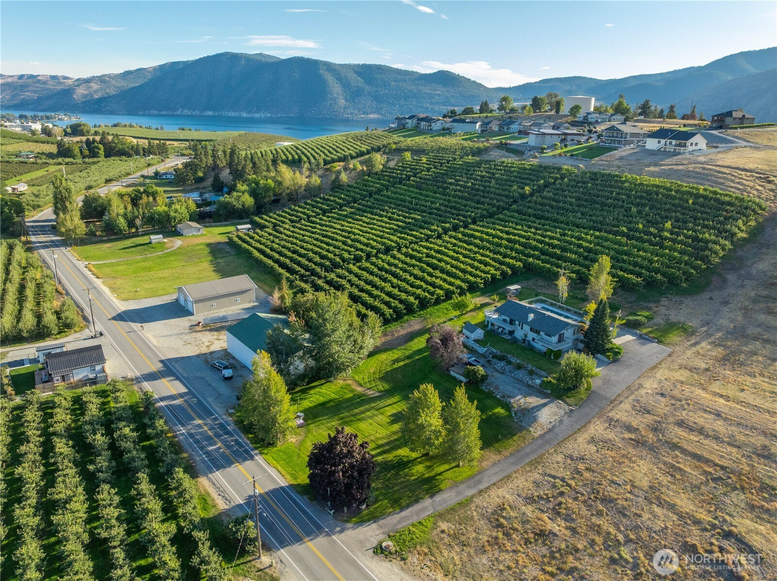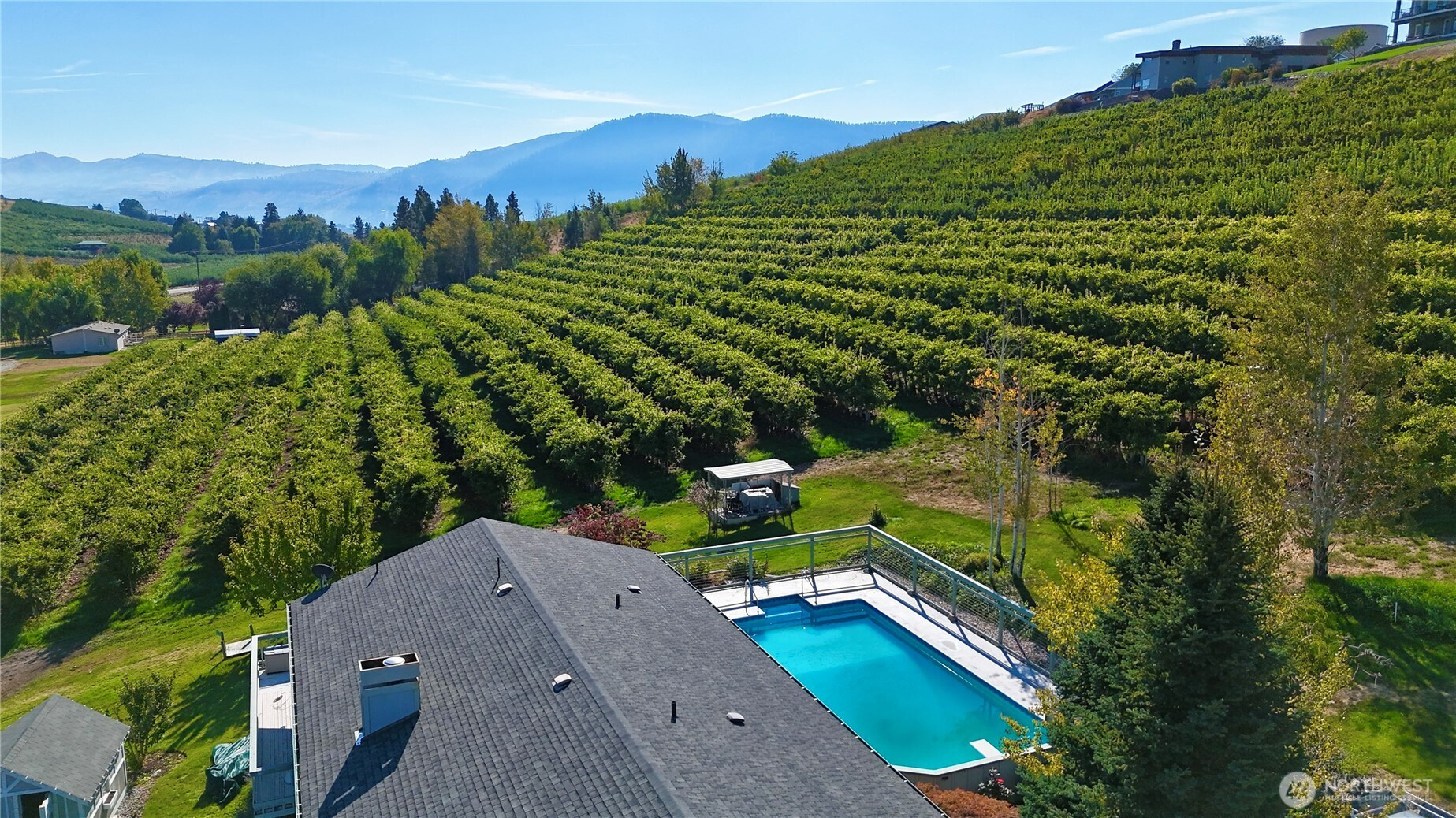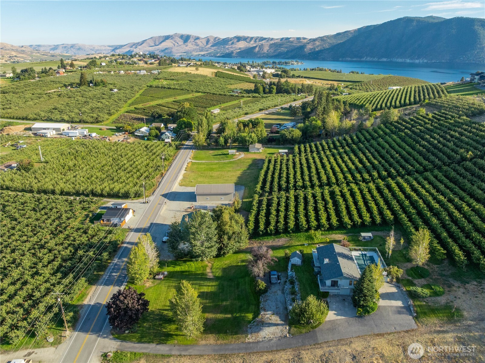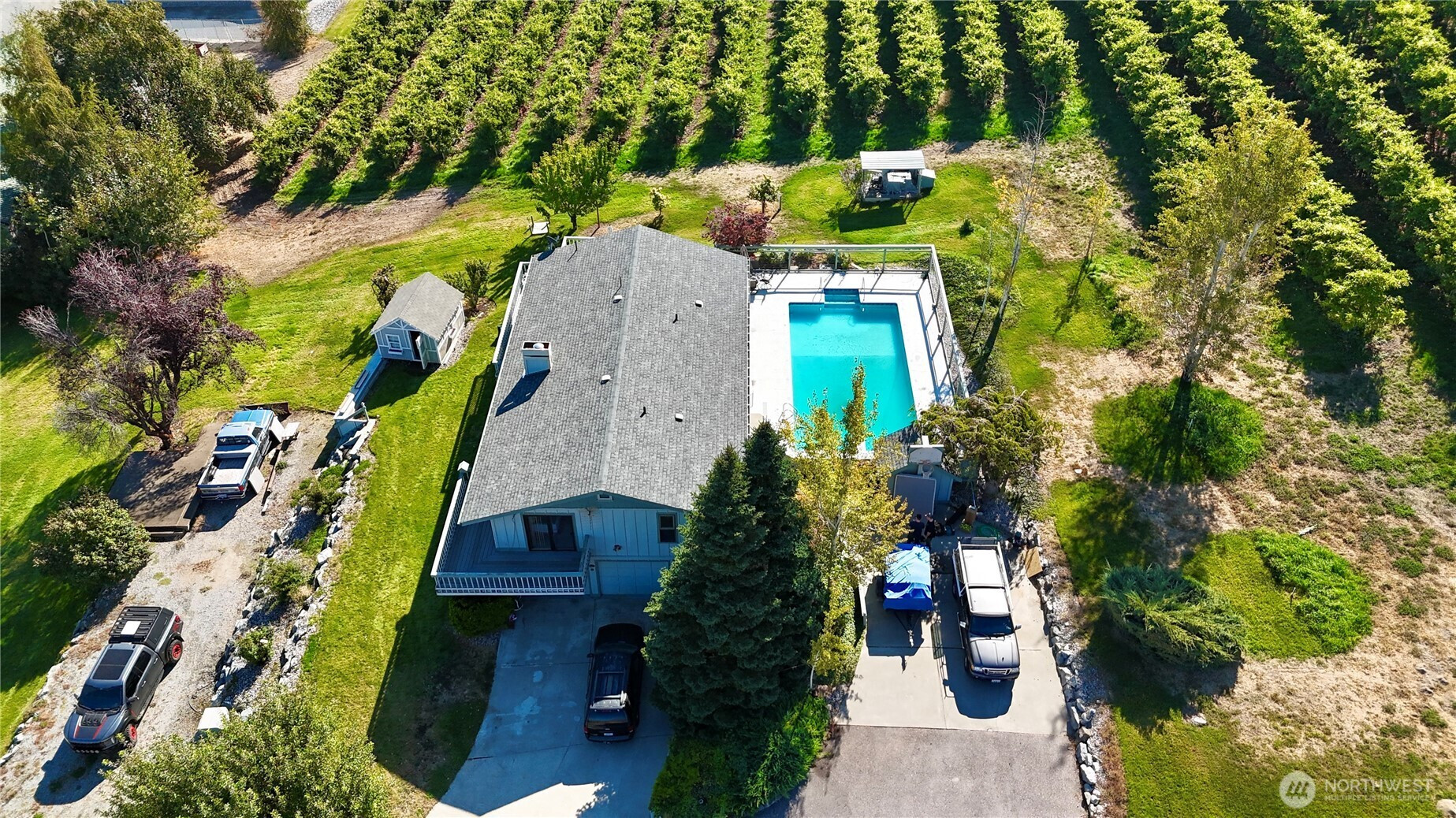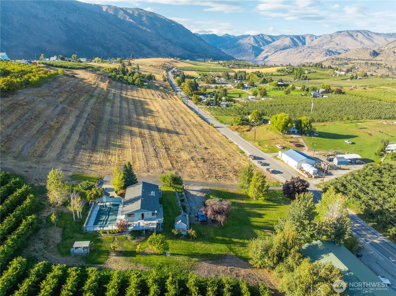 Nestled on nearly an acre surrounded by orchards and mature landscaping, this property offers sweeping valley views stretching north toward the beloved Blueberry Hills Restaurant. The beautifully terraced grounds feature an in-ground, fully fenced concrete pool w/ a vinyl liner—perfect for summer gatherings beneath the Chelan sun. The gently sloping parcel extends toward Manson Boulevard, where a spacious, level area below provides the ideal setting for a future detached shop/ ADU. Enjoy the tranquility of rural living just minutes from Manson’s village center, boutique wineries, and the crystal-clear waters of Lake Chelan. An exceptional opportunity to reimagine this estate to make it your own country retreat.