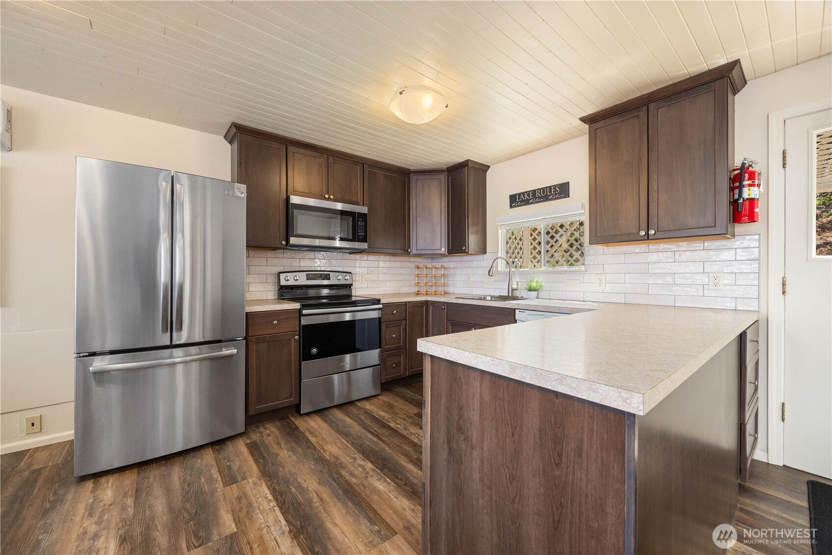 Lake Chelan waterfront cottage! This charming 2 bed / 1 bath home offers 70 feet of low-bank waterfront with bulkhead with a private dock featuring trex decking, and a designated swim area. Enjoy the level, grassy bulkhead perfect for outdoor games and relaxing lake days. The 816 sq ft cabin sits on a quiet, tree-lined lot at the end of a private drive. A spacious lake-view deck provides great entertaining space with covered storage underneath for all your lake gear and toys. Plenty of off-street parking for your RV, boat trailer, and guest vehicles. Whether you're looking for a weekend getaway or a summer escape, this property has it all: privacy, water access, room to play, and stunning Lake Chelan views. Dock can be expanded.