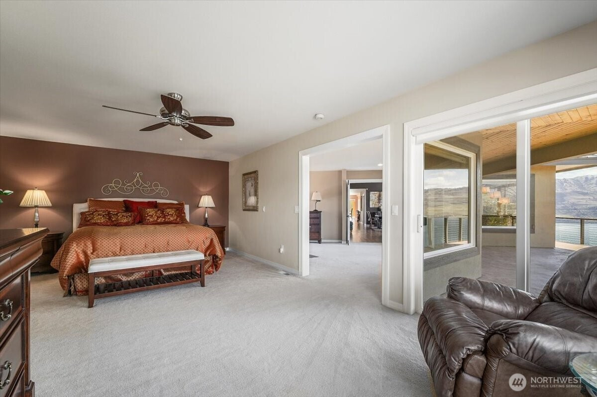 Panoramic lake views. Resort-style living. Ultimate privacy. Set on 2.22 acres in coveted Lake Chelan Hills, this turnkey estate blends gracious indoor living, 5 BR (3 ensuite) plus office, a luxurious remodeled chef’s kitchen (2020), multiple gather spaces, and stunning outdoor entertaining with pool and Jacuzzi. Be inspired by sweeping 180-degree vistas of Lake Chelan from every room in this ~5,500 sqft daylight rambler. Expansive windows fill the home with natural light. The main level has an ideal flow for gathering and entertaining. The patio level offers another family room, guest rooms and/or a home gym. Mornings begin with coffee on the wraparound deck as the lake sparkles below. If work calls, the dedicated lake-view office and fiberoptic internet keep you connected while feeling worlds away. The primary suite’s sitting room, also with gorgeous views, could be a second office or piano room. Outside, a paver patio surrounds the Jacuzzi and in-ground pool, creating a private retreat for sunny afternoons and sunset evenings overlooking the lake. Your property extends down the slope, well past the fence, for enduring vistas. Additional highlights: 2,000-bottle wine room, ample storage, 3-car garage, circular driveway, garden area, and flat, gated front lawn. Chelan Hills amenities feature waterfront parks, beaches, docks, mooring buoys for boat or jetski, paddleboard racks, pools, and tennis/pickleball. Echo Ridge ski and hiking trails just 6 mi. away.