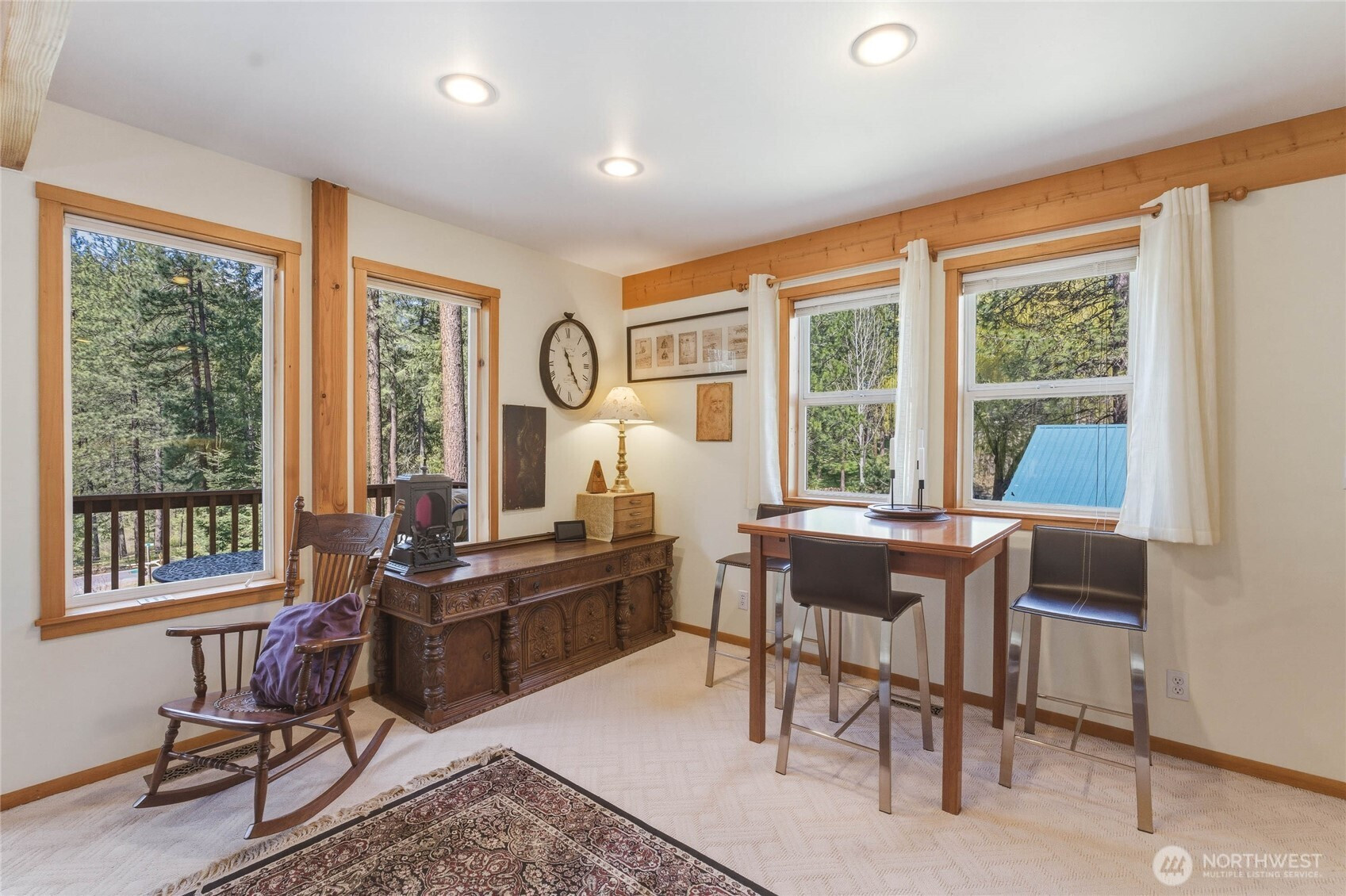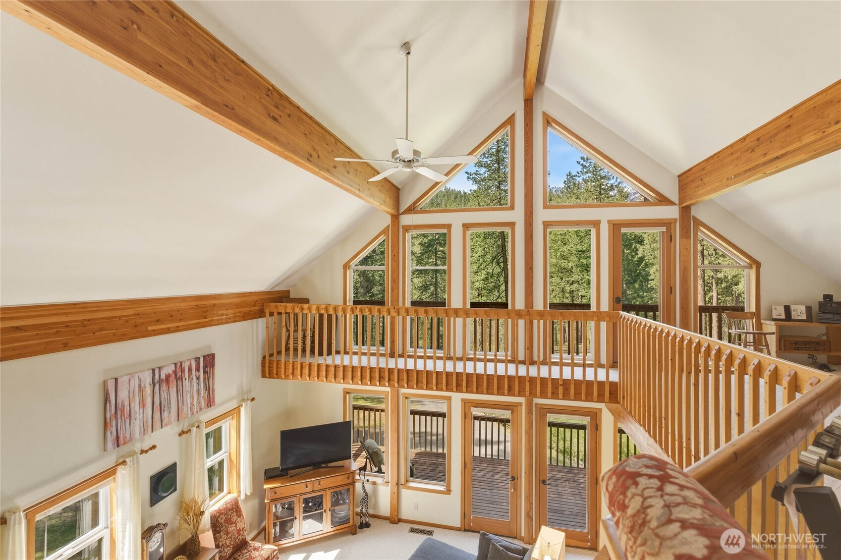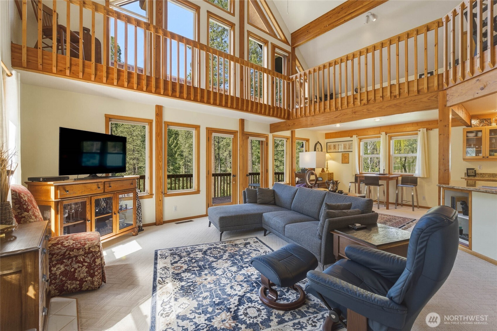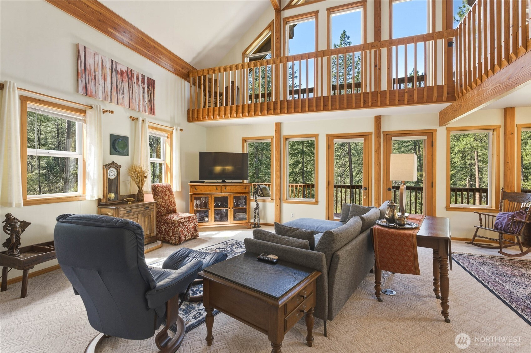 Perfectly positioned for immediate use as a premier vacation rental (buyer to verify) or a turn-key second home. Home is located on 1.47 forested acres with mature landscaping and a newly constructed retaining wall. Public land is approximately a half mile up the road, with lots of turkey and deer all around. The home is 15 minutes from Leavenworth and 25 minutes from Wenatchee. The cabin includes a 2023 heat pump, a wood-burning stove, a 40x24 detached RV shop with a 16-foot door, a private well, and two front facing balconies for each above grade level of the home. The cabin's loft-style layout features main-level living with real hardwood floors throughout the kitchen, custom wood cabinetry, a large guest bedroom with dual closets, a full guest bath, and a spacious walk-in laundry/mud room with a walkout to a private back deck. Off the master suite on the loft level, you can find a custom built window wall that allows for privacy when closed, or natural sunlight and moonlight. The below grade level includes a two-car garage equipped with built-in storage, a central vacuum, and a wood-burning stove, a fully insulated and heated bonus room and a root cellar/store room for extra storage. Located just a half-mile off Blewett Pass for an easy commute from the Seattle area or anyone traveling from I-90.