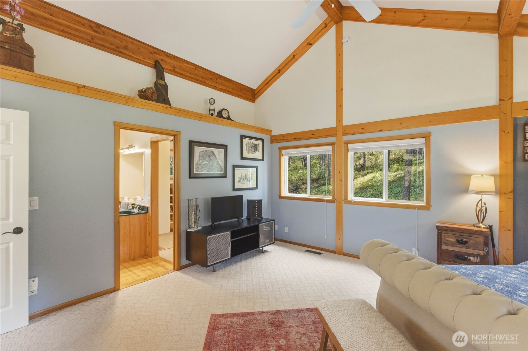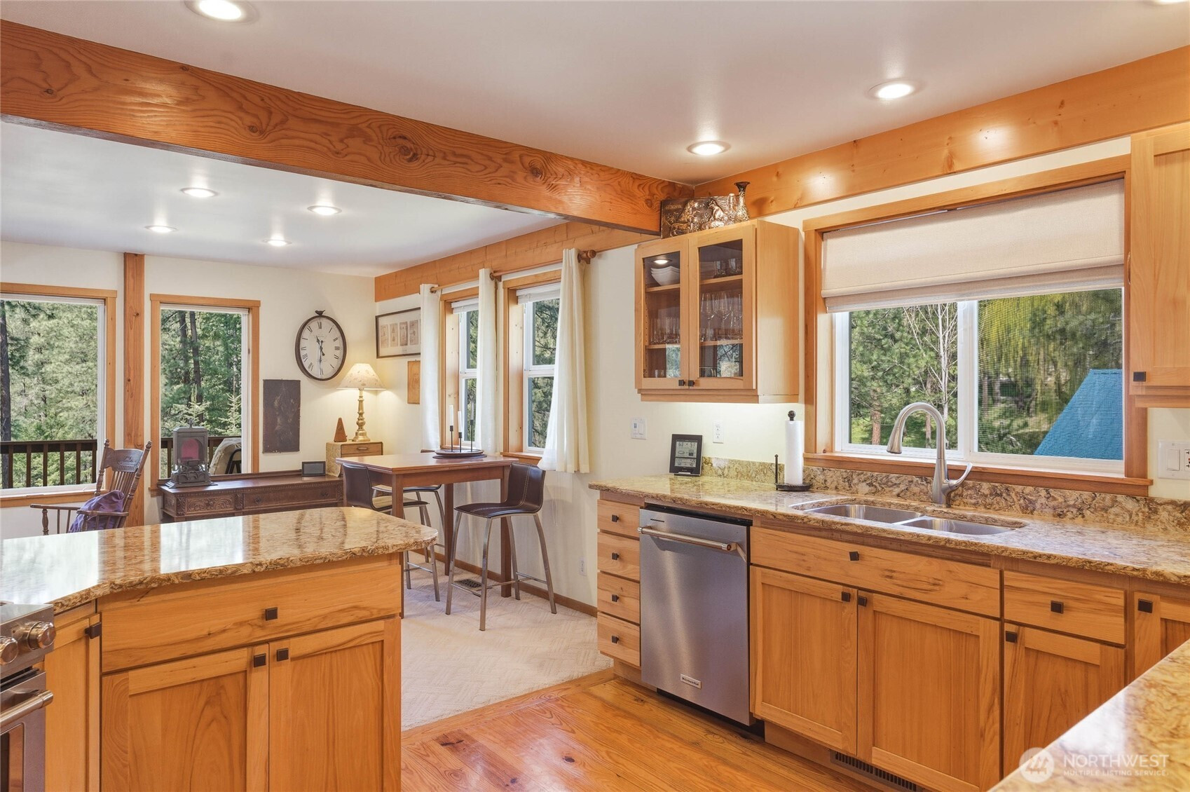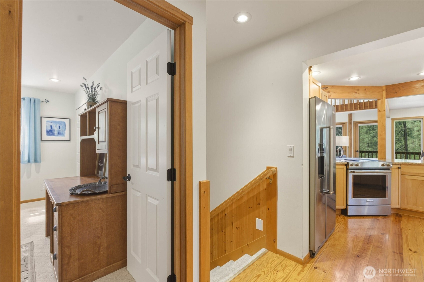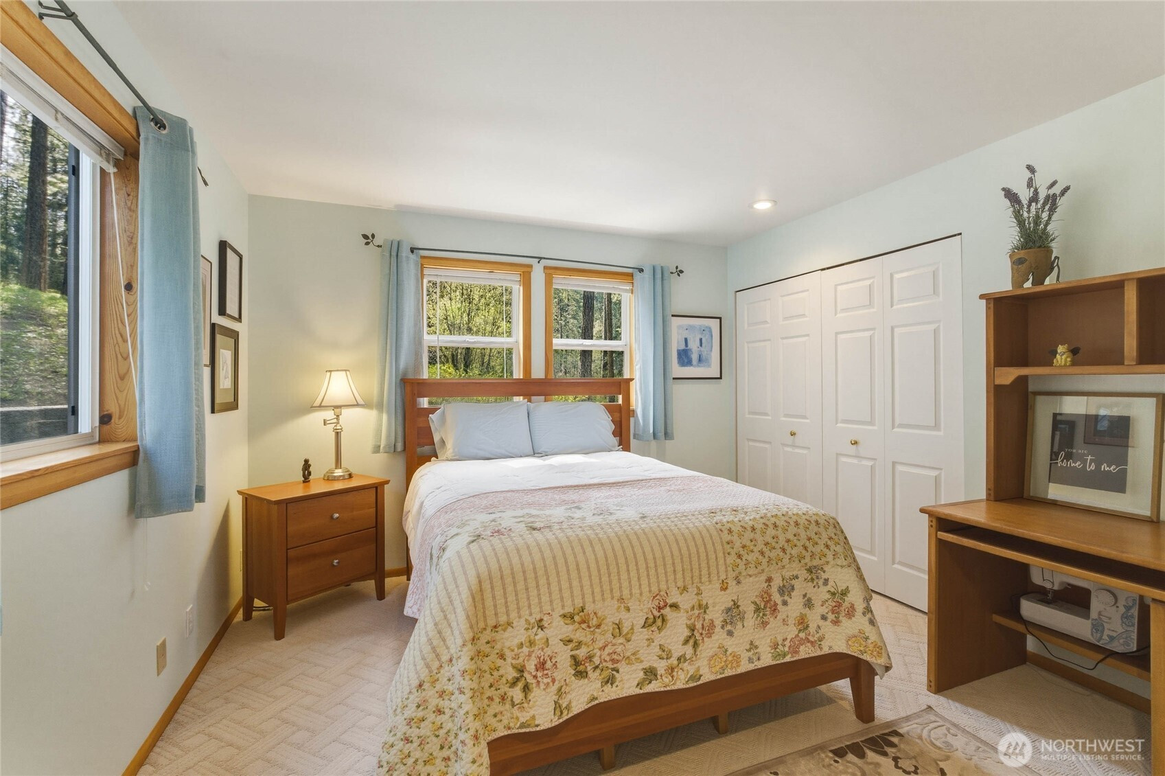 Perfectly positioned for immediate use as a premier vacation rental (buyer to verify) or a turn-key second home. Home is located on 1.47 forested acres with mature landscaping and a newly constructed retaining wall. Public land is approximately a half mile up the road, with lots of turkey and deer all around. The home is 15 minutes from Leavenworth and 25 minutes from Wenatchee. The cabin includes a 2023 heat pump, a wood-burning stove, a 40x24 detached RV shop with a 16-foot door, a private well, and two front facing balconies for each above grade level of the home. The cabin's loft-style layout features main-level living with real hardwood floors throughout the kitchen, custom wood cabinetry, a large guest bedroom with dual closets, a full guest bath, and a spacious walk-in laundry/mud room with a walkout to a private back deck. Off the master suite on the loft level, you can find a custom built window wall that allows for privacy when closed, or natural sunlight and moonlight. The below grade level includes a two-car garage equipped with built-in storage, a central vacuum, and a wood-burning stove, a fully insulated and heated bonus room and a root cellar/store room for extra storage. Located just a half-mile off Blewett Pass for an easy commute from the Seattle area or anyone traveling from I-90.