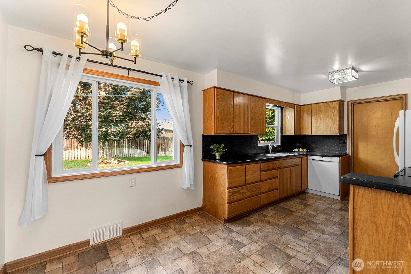 Step into this well priced, spacious & updated home in the heart of Wenatchee. New paint inside and out, new carpet and a fully fenced bakyard with irrigation and automatic sprinkler system. Separate entry to the lower level from the attached single garage for multi family living or rental opportunity. This home and yard is well cared for, and cute as can be!