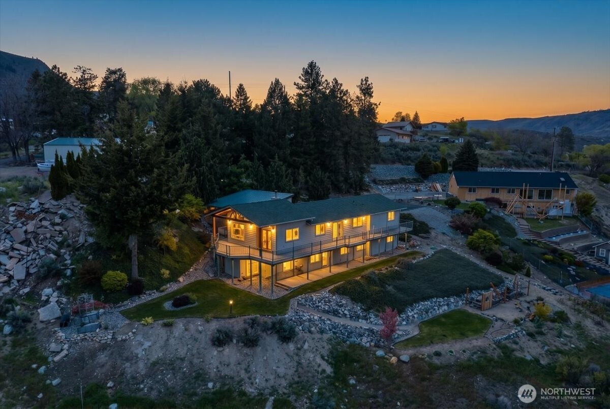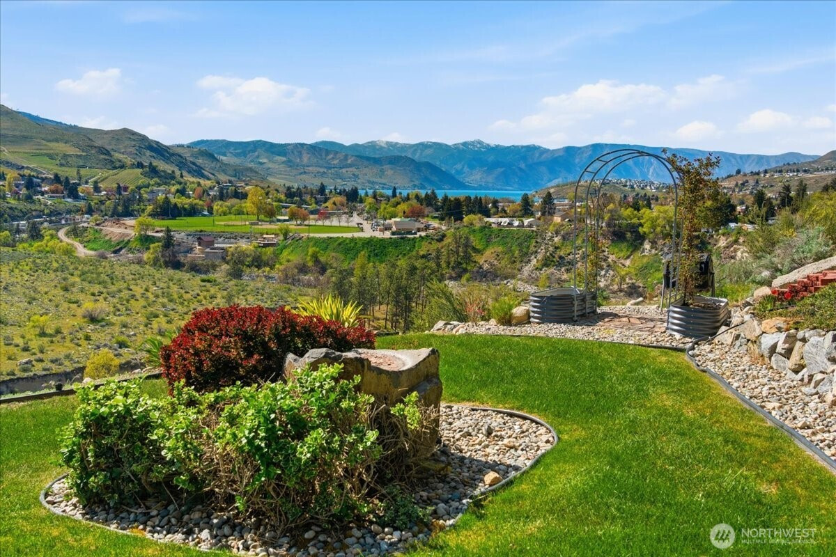 The ultimate river gorge oasis. Perched on the edge of Chelan County and the City of Chelan, this extraordinary 5-bedroom, 3-bathroom, 3,034 sq ft daylight rambler is a rare find unlike anything else in the Lake Chelan market. Overlooking the Chelan River Gorge and Butte with sweeping NW-facing views of the lower Lake Chelan basin and the Cascade Mountain backdrop, the setting is simply unmatched. Set on 1.26 private acres, you're still minutes from downtown Chelan. A breezeway opens to a carport providing easy in-and-out access to the home. The property features terraced lawn and patio spaces, designated garden areas, a long quiet driveway, pole barn shop, and 1-car garage — all bordering City of Chelan and Chelan County PUD public lands. An owner-built trail leads you directly to the Gorge and river access below. Utilities include City of Chelan water and sewer, Chelan River Irrigation District water, and a 30 ft rated irrigation system that doubles as fire protection. Expansive decks wrap the home and deliver breathtaking views in every direction. Inside, vaulted ceilings showcase timber and wood milled from Moore Point — a craftsmanship detail found nowhere else. The main floor is bathed in natural light across the great room, kitchen, living area, primary ensuite, and guest bedroom. Downstairs, find three additional bedrooms, a rec room with patio access, and a safe room with a secret secured sliding door. Properties like this simply do not come around twice.