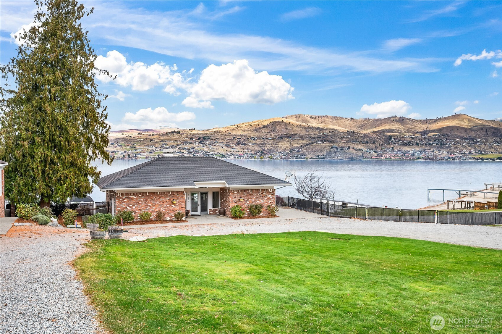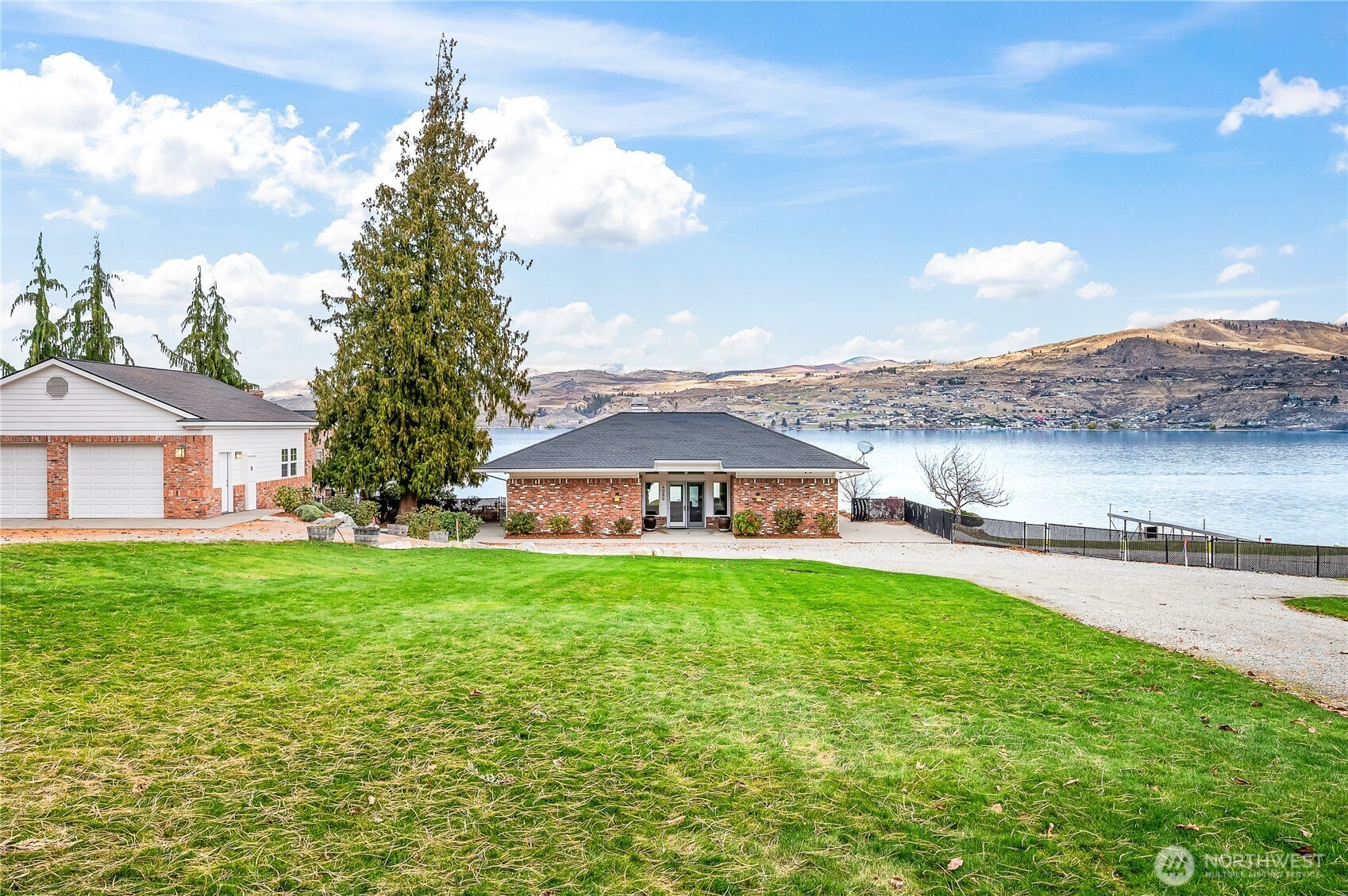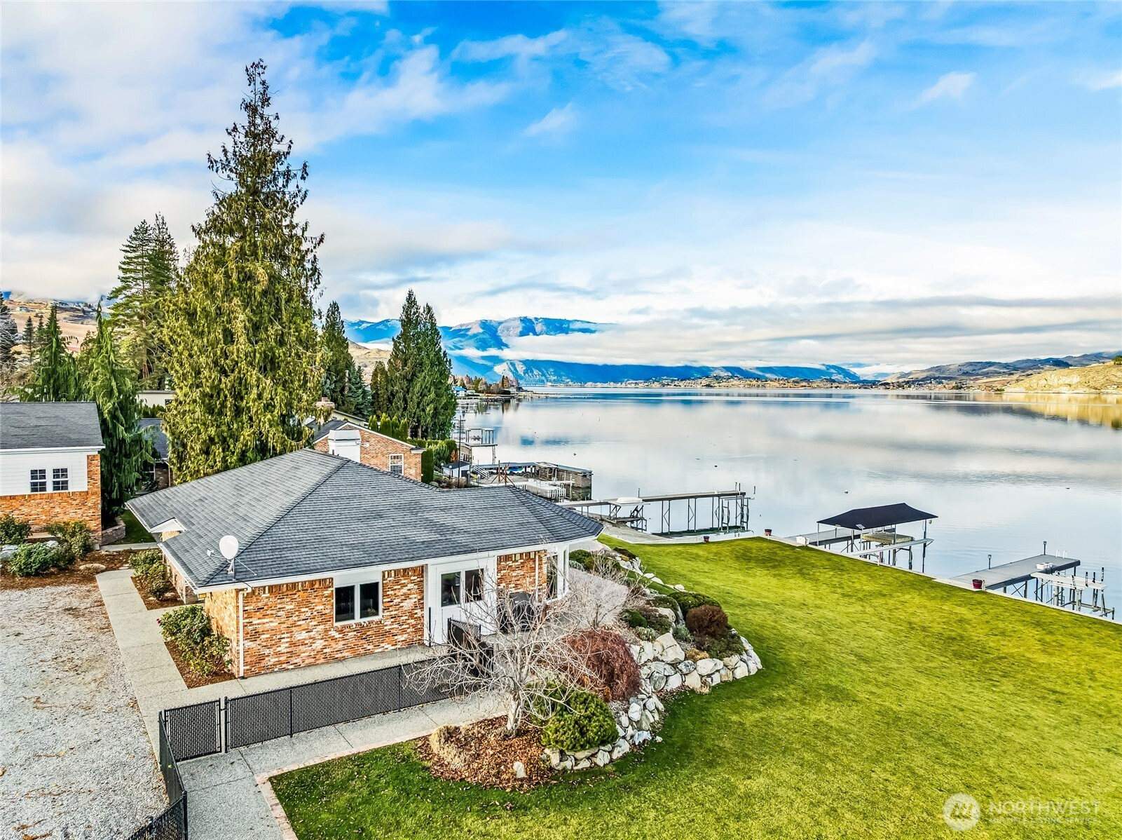 Rare opportunity to own two contiguous Lake Chelan waterfront parcels along the coveted Golden Mile, featuring two private docks, a new concrete bulkhead, and 86 feet of sandy beach. This low-maintenance brick home offers 2 bedrooms, 2 bathrooms, and an open-concept floor plan with a gourmet kitchen, perfect for entertaining or everyday living. Expansive outdoor spaces include a large patio, manicured lawns, and a gentle slope to the water, creating a serene lakeside retreat. With room to expand, the property provides both comfort and potential for customization. Enjoy the perfect balance of privacy, convenience, and luxury, just steps from the water. A rare lakefront offering with exceptional lifestyle and investment potential in one