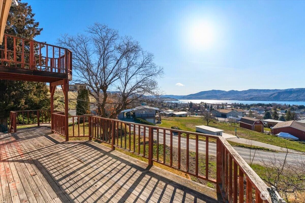 Hidden GEM in the heart of Manson with incredible, unobstructed views of Lake Chelan and Manson Bay. This charming home is perched above town just a quarter mile from downtown Manson’s wineries, restaurants, boat launch, and waterfront, this property offers the perfect blend of location, view, and upside potential. The expansive deck captures magnificent lake and mountain views — ideal for entertaining, relaxing, and soaking in Chelan sunsets. The main level offers a classic floor plan with kitchen, dining, and living areas flowing to the deck. You’ll also find a utility room with washer/dryer, primary bedroom with ensuite bath, an additional full bathroom, and a ¾ bath for added flexibility. Upstairs includes two loft-style bedrooms, while the lower level provides an additional living area and bedroom — creating excellent separation of space for guests or multi-generational living. With its elevated setting and generous lot, this property and its sweeping views create exciting potential for a swimming pool, hot tub/spa, or other vacation-style amenities to truly transform it into a premier Lake Chelan retreat. This home is ready for your vision. With thoughtful updates and remodeling, there is strong potential to build equity and create a stunning full-time residence, vacation getaway, or investment opportunity in one of Lake Chelan’s most desirable communities.