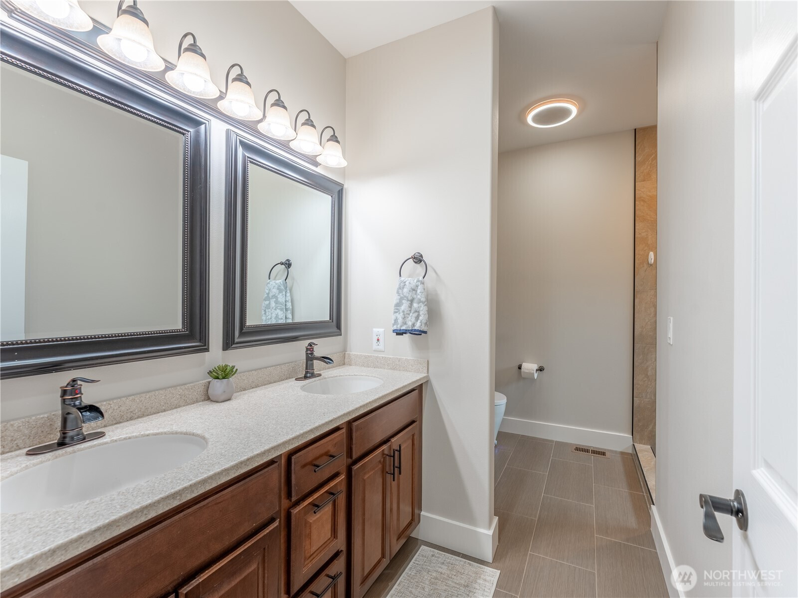 Built in 2018, this turn-key home offers the perfect blend of comfort, style, and privacy. 3 bdrms, 2.25 baths, and 2,024 sq. ft. of thoughtfully designed living space. Sitting on a .37-acre lot, tucked away at the end of a quiet cul-de-sac, you’ll find this freshly painted interior w/vaulted living room and cozy propane fireplace. LVP flooring in main living areas and halls and a spacious primary suite with large tiled shower and tile floors. The open layout is ideal for everyday living as well as entertaining. Step outside to enjoy the covered deck, fenced rear yard, garden areas! An oversized driveway, RV parking and close proximity to Three Lakes Golf Course make this home ideal!