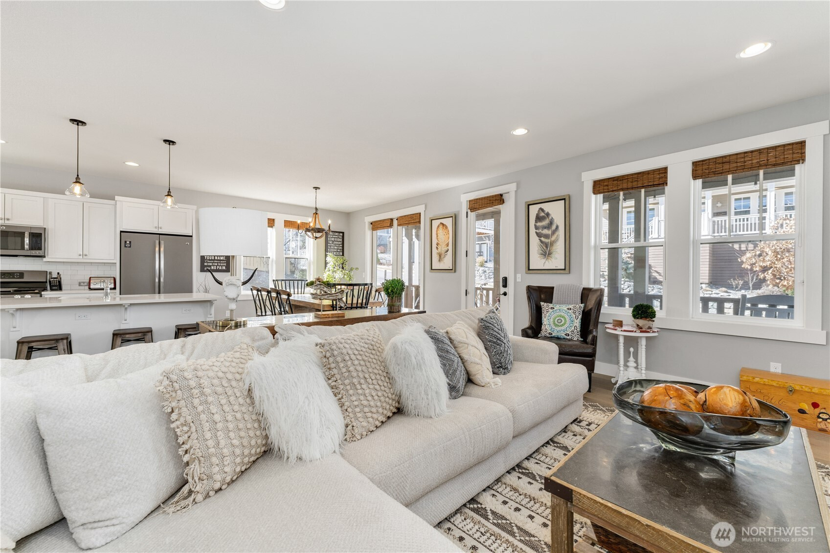 Gorgeous turn-key, fully furnished 4bed/4.5bath 2,624sf vacation home just steps from the year-round heated Vineyard District pool with easy access to all of the Lookout resort amenities. Designed for entertaining family and friends, “Yellowstone” features high-end furnishings and décor, a spacious great room with fireplace, built-ins, vaulted ceilings, dining room to seat 10, and a chef’s kitchen with quartz countertops, large island and sit-up bar. The thoughtful layout includes two primary bedroom suites (one on the main level, one on the upper level), a third upper level bedroom, media room, plus a 4 person bunk room with kitchenette and private bath; designed to comfortably sleep 12. Enjoy seamless indoor-outdoor living with French doors throughout, a classic covered front porch, and a sunny side terrace patio featuring an outdoor dining area, BBQ, fire pit, and lounge space. Ideally situated on a prime corner lot directly across from the pool, splash pad, and clubhouse for convenient, year-round enjoyment. Attached 2-car garage and plenty of parking. The Lookout offers community waterfront with sandy beach, a 70-slip private marina, parks, pools, sports courts, playgrounds and more! Offered furnished and turnkey with proven rental income and on-site management. Ideal as an investment, second home, or personal retreat. Exceptional layout, upscale finishes, and resort-style amenities make this a standout opportunity in Chelan’s premier vacation community.