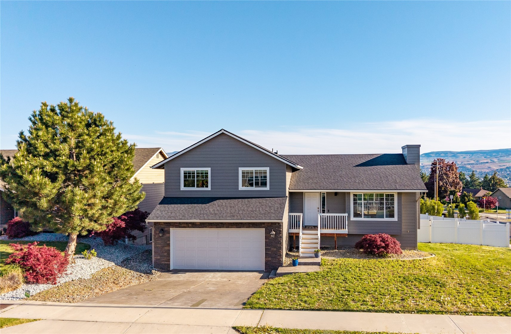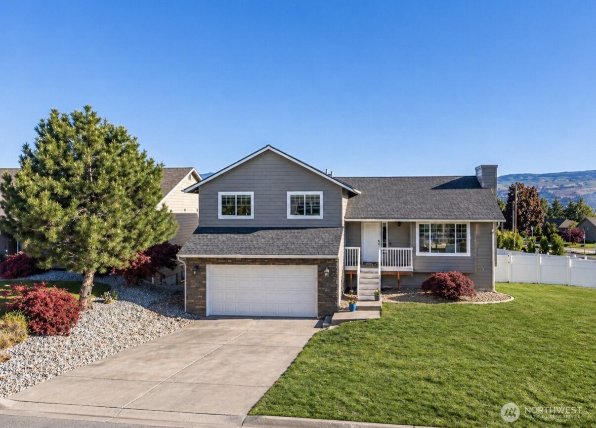 Stylishly updated tri-level on a prime corner lot! The light-filled living room showcases new LVP flooring, a cozy fireplace, fresh interior paint, updated cabinetry, quartz countertops, new appliances, and modern lighting. The dining area opens to a brand-new Trex view deck with stairs leading to a private, fully fenced backyard—perfect for entertaining. Upstairs features three bedrooms and a full bath, including a primary suite with walk-in closet and private bath. The lower level offers a spacious family room with a second fireplace and slider to the patio, plus a half bath and shared laundry. Exterior updates include fresh paint, new Trex front and back decks, and a brand-new roof. Move-in ready!
