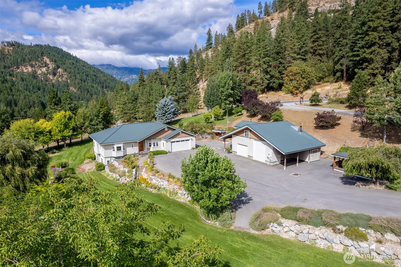 Enjoy peaceful living just minutes from Leavenworth on this spacious 2.23 acre property. The beautifully maintained home is filled with natural light & features an open floor plan, perfect for modern living and entertaining. A finished daylight basement adds extra space for guests, recreation or hobbies. Step outside to a large, beautifully landscaped yard ideal for games, outdoor gatherings, or simply relaxing in nature. Need more space? A 1400 sq ft shop provides ample storage, and the fully equipped apartment above offers endless potential for guests, rental income, or a home office. This property is the perfect blend of comfort, versatility & outdoor fun in a serene setting close to any recreational activity you may choose to do!