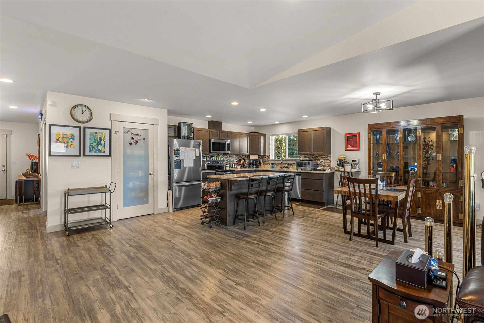 Welcome to refined single-level living in this impeccably updated Craftsman rambler, where thoughtful design meets effortless luxury. Offering 3 spacious bedrooms and 2.5 beautifully appointed baths, this maintenance-free residence has been enhanced with over $200,000 in premium upgrades, delivering both comfort and sophistication at every turn. Step inside to discover a seamless flow of elegant, zero-carpet interiors featuring high-end luxury flooring throughout. The open-concept living spaces are complemented by quality appliances and stylish finishes, creating an inviting atmosphere ideal for both everyday living and entertaining. Outdoors, the property transforms into a private retreat. Professionally designed landscaping showcases tranquil fountains, custom paver pathways, and a stunning pergola that anchors an expansive patio—perfect for hosting gatherings or relaxing in style. Mature privacy hedges, full fencing, and an advanced irrigation system with drip lines ensure beauty and ease of maintenance year-round. Enjoy peaceful mountain views from your own backyard while benefiting from ample parking and a quiet, ideally situated street. The epoxy-coated, heated garage adds an additional layer of convenience and luxury, perfect for all seasons. This is a rare opportunity to own a turnkey home that blends craftsmanship, modern upgrades, and serene outdoor living into one exceptional offering.