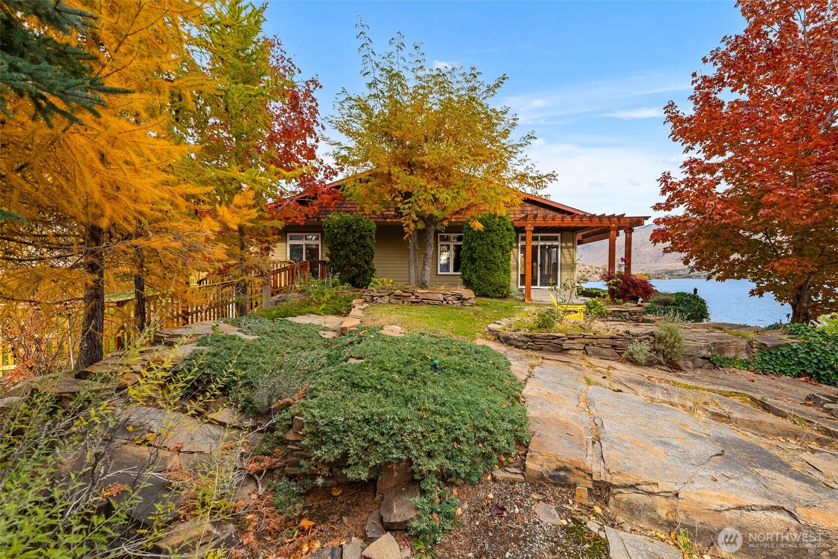Set along the breathtaking banks of the Columbia River, this one of a kind, exceptional waterfront home offers over 400 feet of frontage and access to a shared dock, creating a true riverfront lifestyle. Thoughtfully landscaped grounds feature winding paths, stunning gardens, lush plantings, and a tranquil water feature, all leading to the water’s edge. The single-level Northwestern-style home includes 3 bedrooms and 3.5 bathrooms, with high ceilings, large picture windows and river views from nearly every room. The show-stopping kitchen is designed for both beauty and function, featuring a large center island, gas cooktop, stainless steel appliances, and panoramic river views. Both living and family rooms provide ample space to relax, with a cozy gas fireplace anchoring the living room. The spacious primary suite is a serene retreat with oversized windows overlooking the river and a beautifully updated bathroom offering a tiled shower, double sinks, solid-surface countertops, and a walk-in closet. Outside you'll enjoy a large covered patio right along the river, lots of places to sit and enjoy the wildlife, a path to launch kayaks or paddle boards, a fenced grassy area, storage shed, two-car garage, 50 AMP Rv hookup, and abundant parking making this a rare and remarkable waterfront opportunity. Make your showing appointment today!