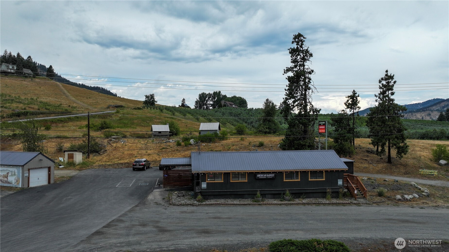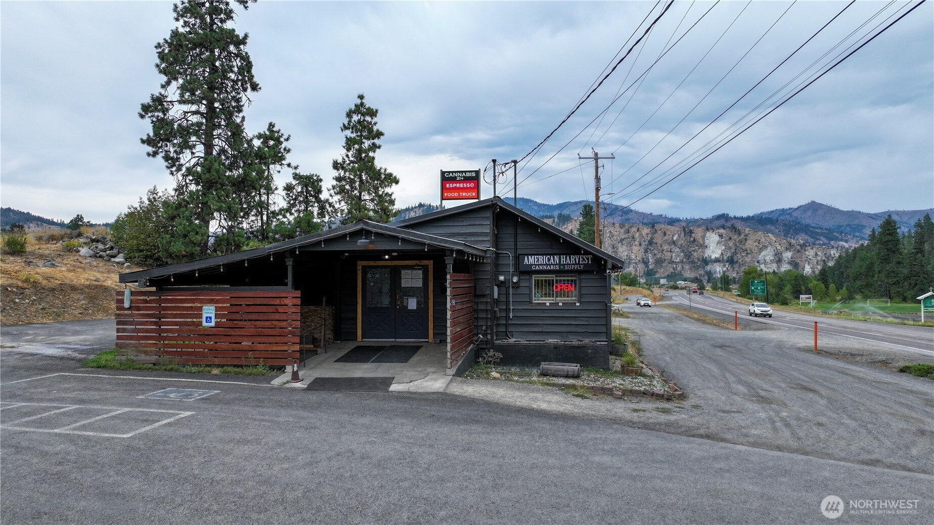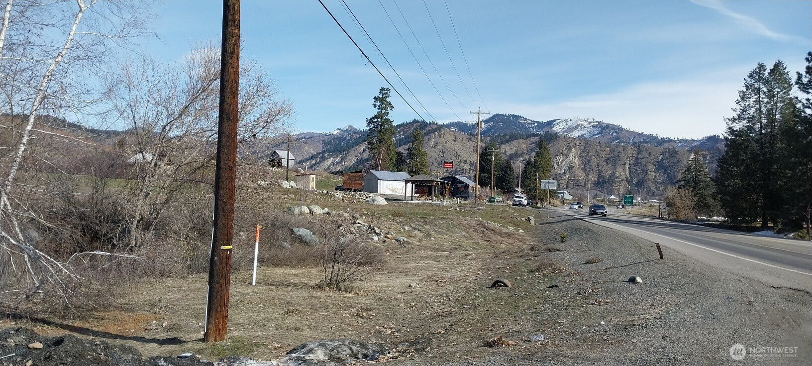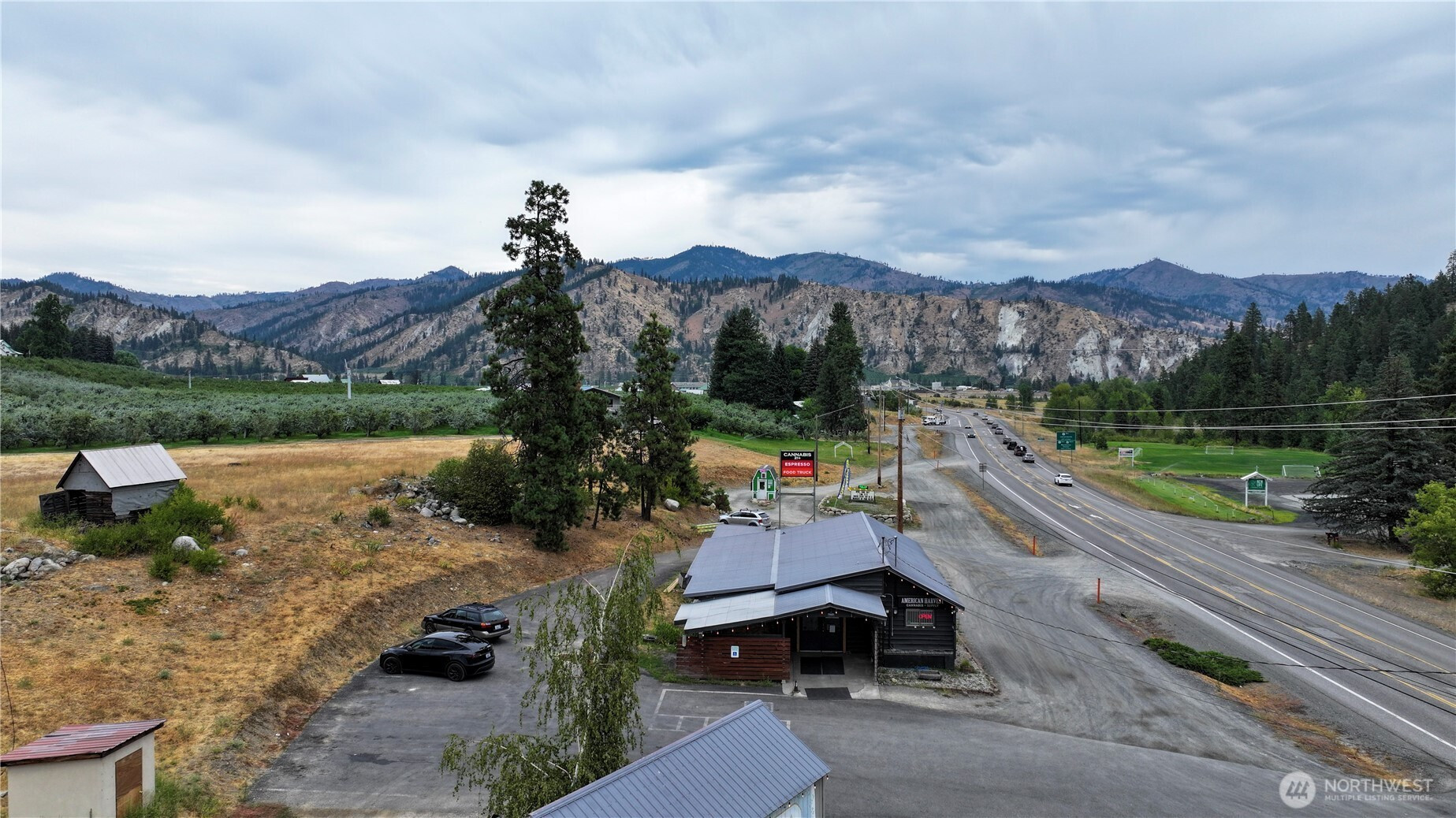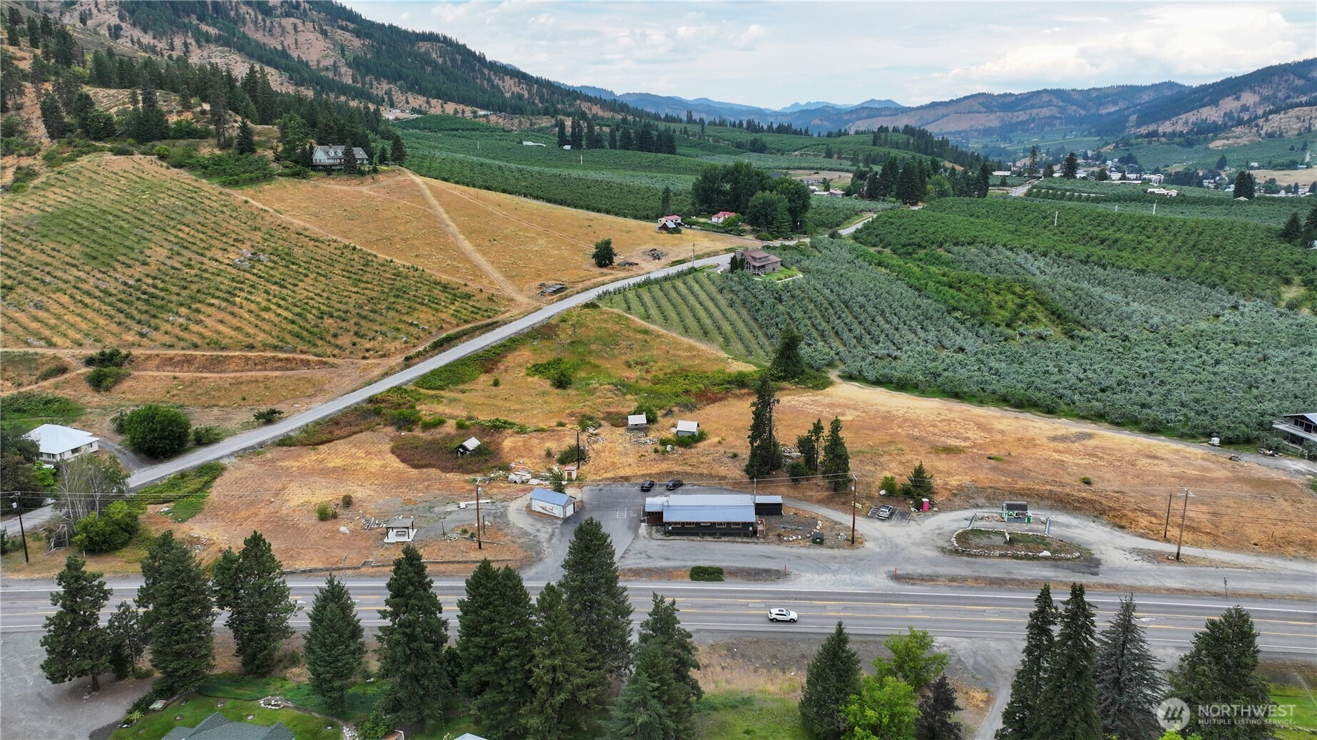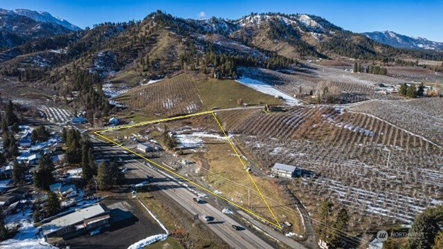 6.5 acre Highway Commercial property near Peshastin, Washington, just 1/2 mile from the intersection of US 2 and US 97, and 4 miles from Leavenworth. Several opportunities for development: RV site; hotel/motel; truck stop; mini-mart, etc. Commercial retail building currently leased for $4,500/mo through September 1 of 2034; Portable coffee stand space leased for $1,500/mo through April 2029. Irrigation water rights. Businesses not included. Highway Commercial zoning allows for no side yard setbacks and no minimum lot size. Offered at $999.999 with partial seller financing.