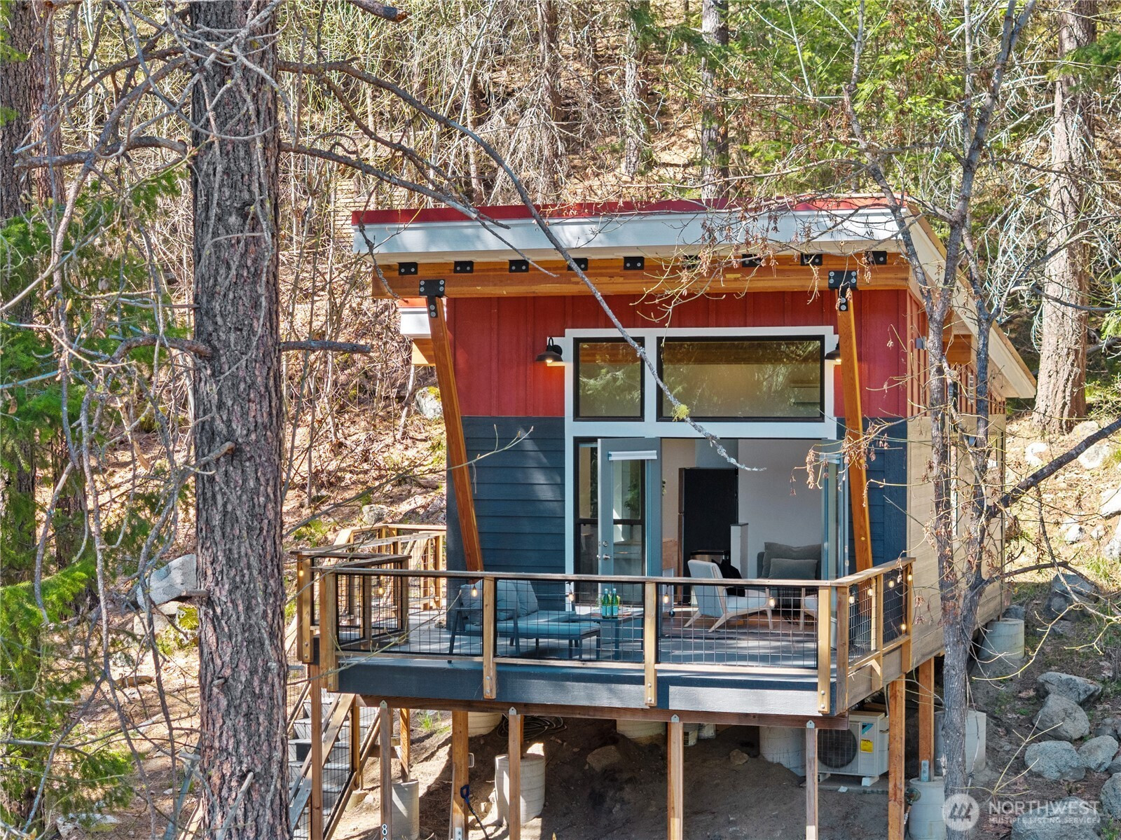 Discover a tranquil escape tucked away on 1.65 private acres, offering a rare blend of secluded nature and incredible convenience just five minutes from the heart of Leavenworth. This 444-square-foot sanctuary is designed to maximize its footprint, featuring an open-concept layout that invites an abundance of natural light throughout the day. The living area transitions seamlessly to an expansive deck, creating an ideal space for quiet mornings or relaxing evenings surrounded by a lush canopy of trees. With one bedroom and a 0.75 bathroom, this home serves as an efficient retreat for those seeking a minimalist lifestyle or a dedicated getaway in the woods. The surrounding landscape provides a genuine sense of privacy, creating a peaceful environment where the sights and sounds of nature take center stage. Whether you are looking for a weekend adventure base or a quiet place to call home, this property offers a unique opportunity to own a slice of the Pacific Northwest. Enjoy the best of both worlds with world-class recreation nearby and a private wooded haven to return to at the end of the day.