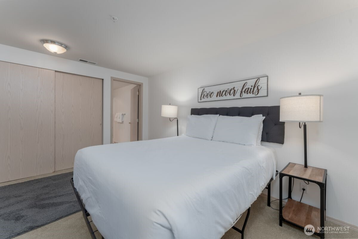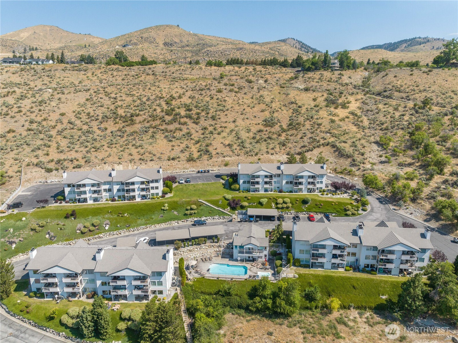 This front view condo is in a perfect location with privacy and beautiful views of the Don Morse Park/City of Chelan Park & Mountains. Walk across the street to a beautiful park and waterfront beach. 2 minutes from downtown Chelan for an easy walk to the park, shopping, eateries and wineries. This condo offers GROUND FLOOR access with a cement back patio, grass and landscaping for evening bar-B Q's and enjoying the view and only 7 steps down to the front entry. Main floor living includes 2 nice spacious bedrooms and an open kitchen to the big living room with a fireplace and dining area. Large windows and slider let in the gorgeous view and plenty of light! New Paint. A spacious washer/dryer walk in closet and secured storage closets on the front and back patio. A perfect investment, zoning allows short term vacation rentals and already set up and earning income. Amenities includes a large private pool, hot tub and game room on the same level a building away! Close to hiking, world renown surf park and water park. Boat rentals a walk away at the park and putt putt golf. Enjoy gorgeous Lake Chelan and have your own little oasis in Lake Chelan!