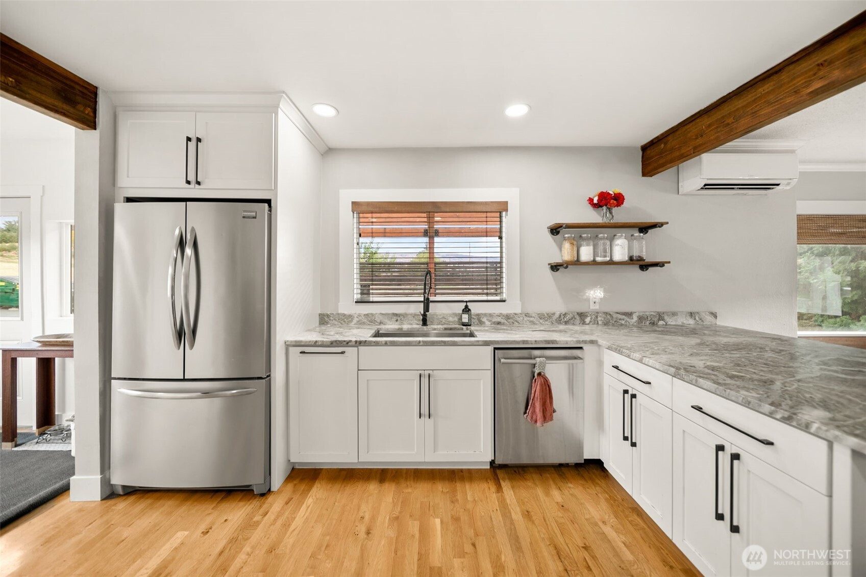 This beautifully maintained 2 story Craftsman offers the perfect blend of character & modern comfort. 4 bedrooms upstairs and a spacious primary suite with en suite bath on the lower level, this home is designed for flexibility & function. The newly finished lower level includes an egress window and offers potential for additional living space. Cooking in the updated, modern kitchen is a dream. Step outside to a brand-new deck with hot tub hookups—ideal for entertaining/relaxing. The large, 0.29-acre lot is a gardener’s dream with raised beds, fruit trees & a chicken coop. A large 2-bay garage includes a shop area and loft storage, plus there’s plenty of off-street parking. Recent upgrades include a new septic system sized for 5 bedrooms.