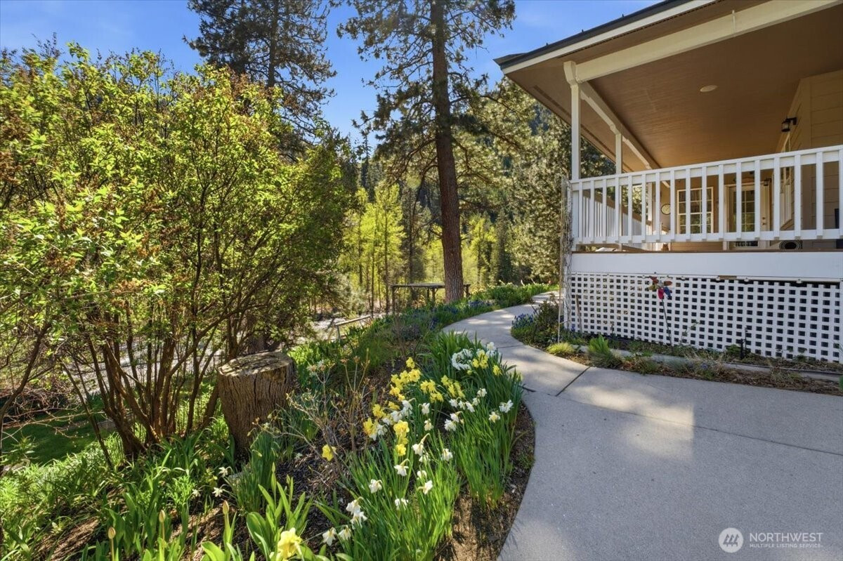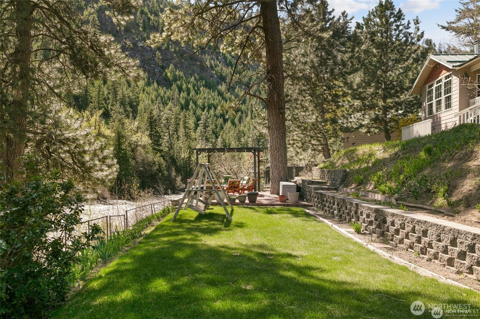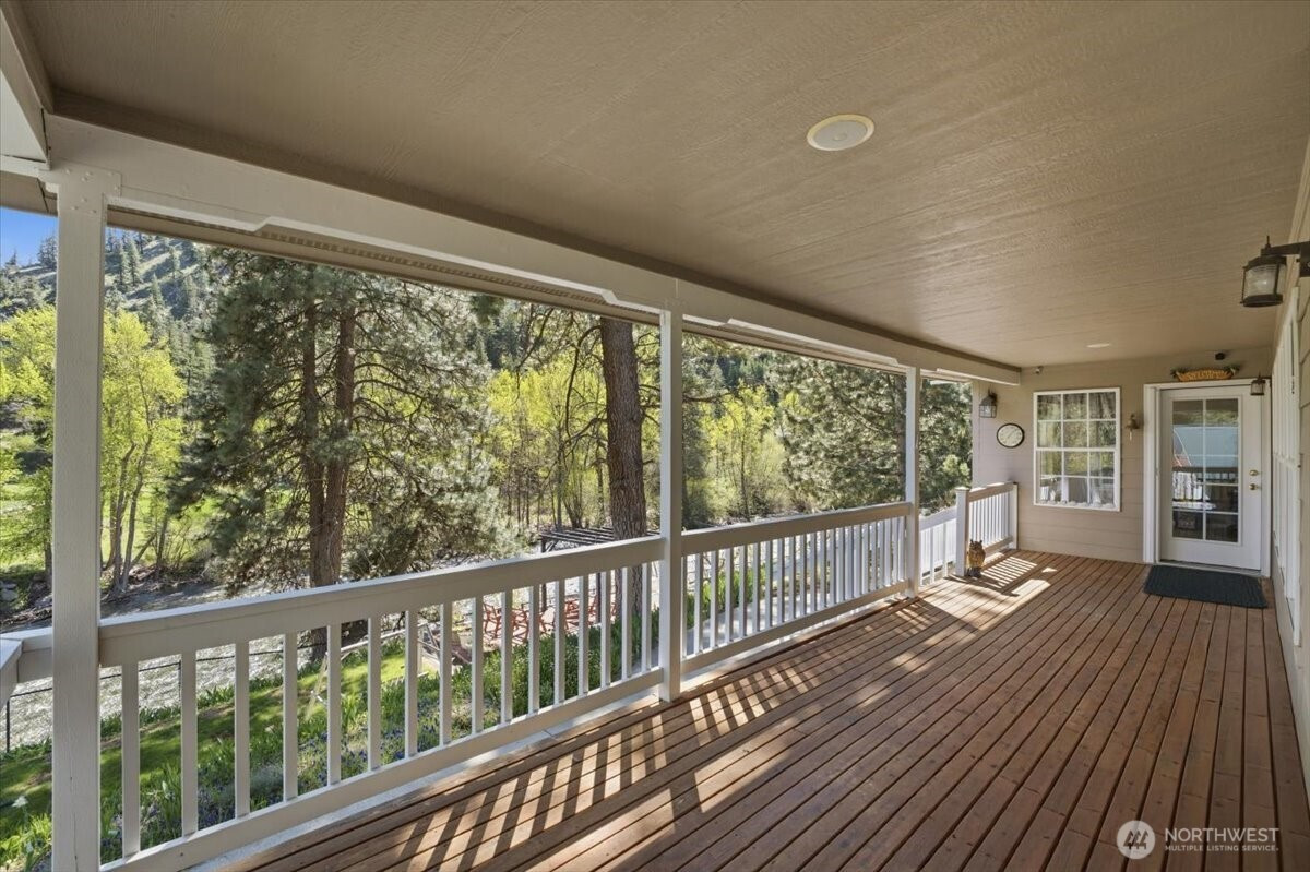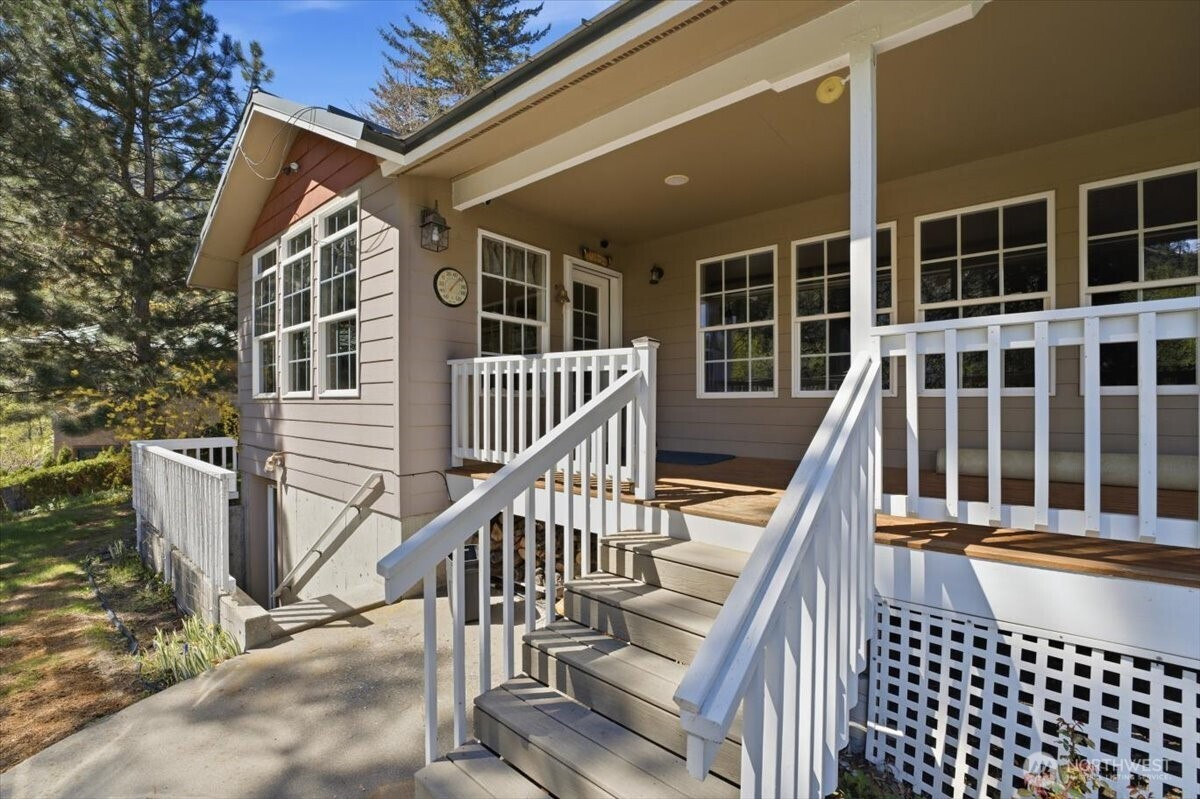 Stunning Entiat Riverfront home with approximately 144 feet of waterfront frontage, sweeping river and mountain views, and a large detached garage. Originally built in 1903 as a historic schoolhouse, this unique property was thoughtfully and extensively rebuilt in 2000. During reconstruction, three original exterior walls were retained to allow the project to be permitted as a remodel, while the interior was completely gutted and rebuilt—creating a substantially larger, modernized home that blends historic character with contemporary construction and layout. The beautifully designed kitchen features abundant counter space, extensive cabinetry, pantry, large eating bar, & skylight, that flow into the dining area with wood stove and river views. The main floor offers a spacious primary suite, second bedroom, full bathroom, living room, and laundry for easy one-level living. The basement includes a large family room, third bedroom, half bath, and generous cold storage. Outside enjoy a wrap-around covered deck, fully fenced yard, in-ground sprinklers, Hardie-board siding, and metal roof. Located approximately 9.5 miles up Entiat River Road with year-round county-maintained access and high-speed internet.