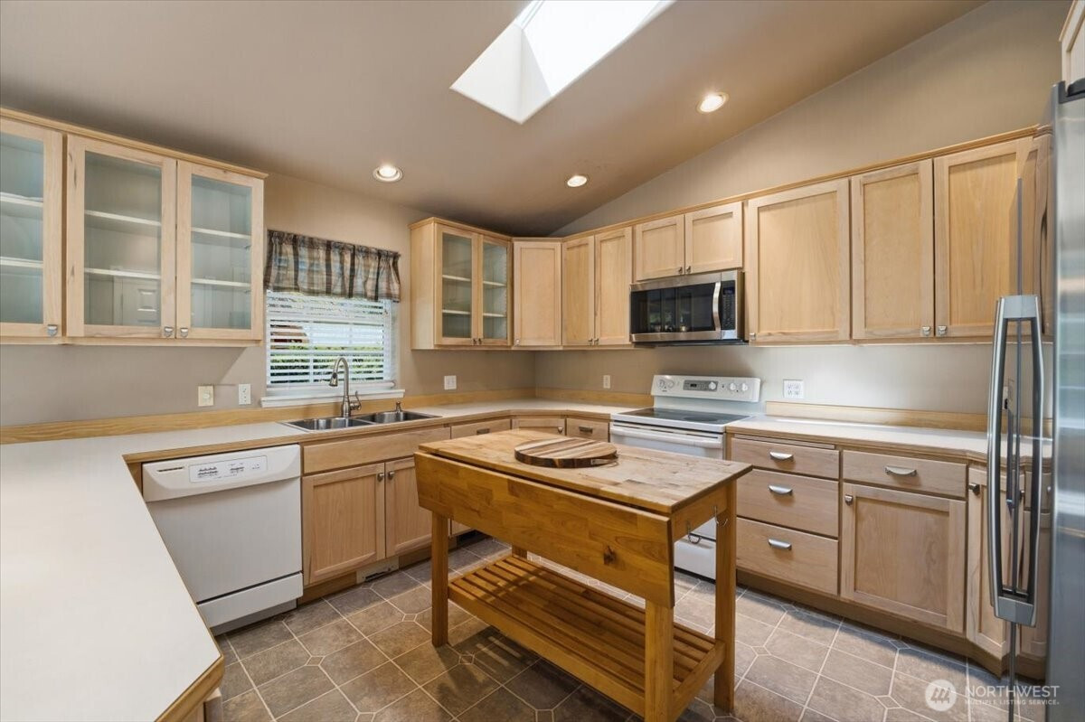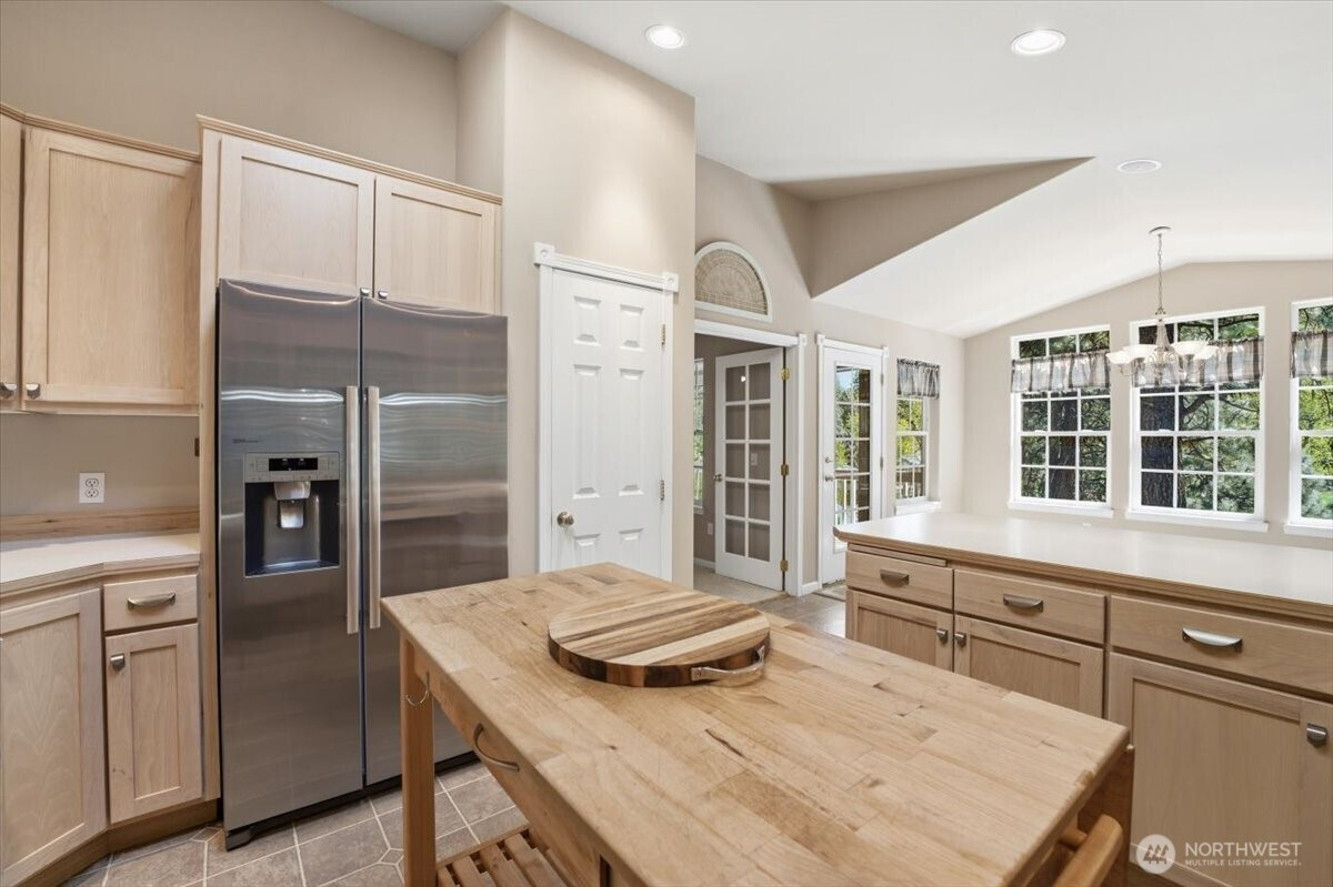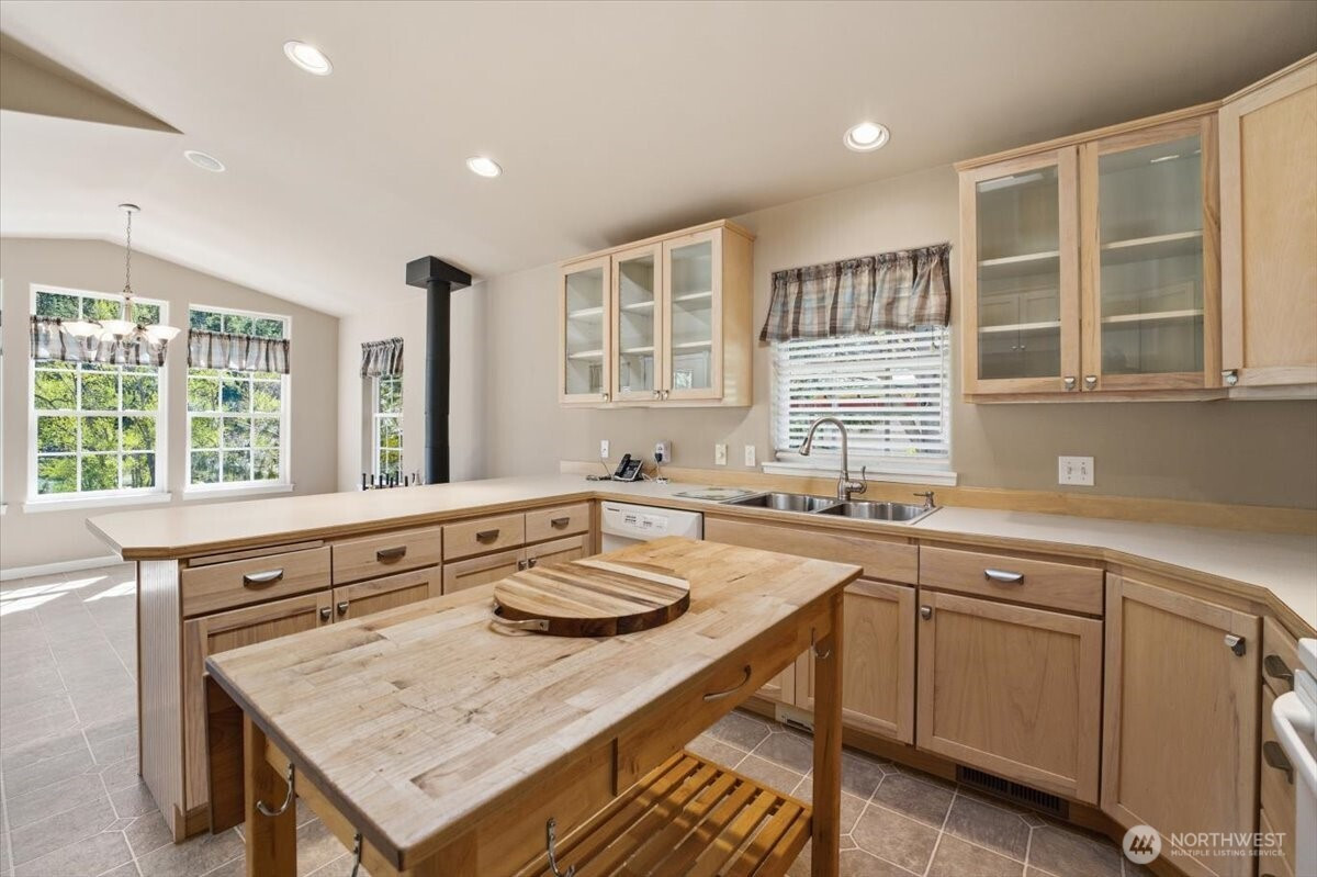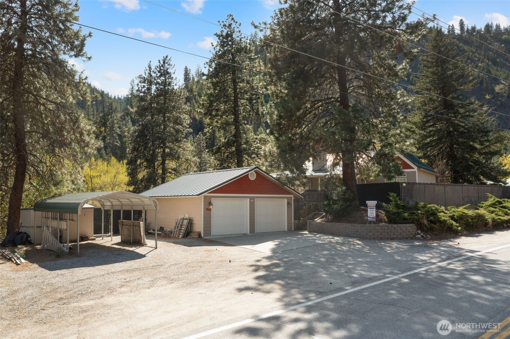 Stunning Entiat Riverfront home with approximately 144 feet of waterfront frontage, sweeping river and mountain views, and a large detached garage. Originally built in 1903 as a historic schoolhouse, this unique property was thoughtfully and extensively rebuilt in 2000. During reconstruction, three original exterior walls were retained to allow the project to be permitted as a remodel, while the interior was completely gutted and rebuilt—creating a substantially larger, modernized home that blends historic character with contemporary construction and layout. The beautifully designed kitchen features abundant counter space, extensive cabinetry, pantry, large eating bar, & skylight, that flow into the dining area with wood stove and river views. The main floor offers a spacious primary suite, second bedroom, full bathroom, living room, and laundry for easy one-level living. The basement includes a large family room, third bedroom, half bath, and generous cold storage. Outside enjoy a wrap-around covered deck, fully fenced yard, in-ground sprinklers, Hardie-board siding, and metal roof. Located approximately 9.5 miles up Entiat River Road with year-round county-maintained access and high-speed internet.