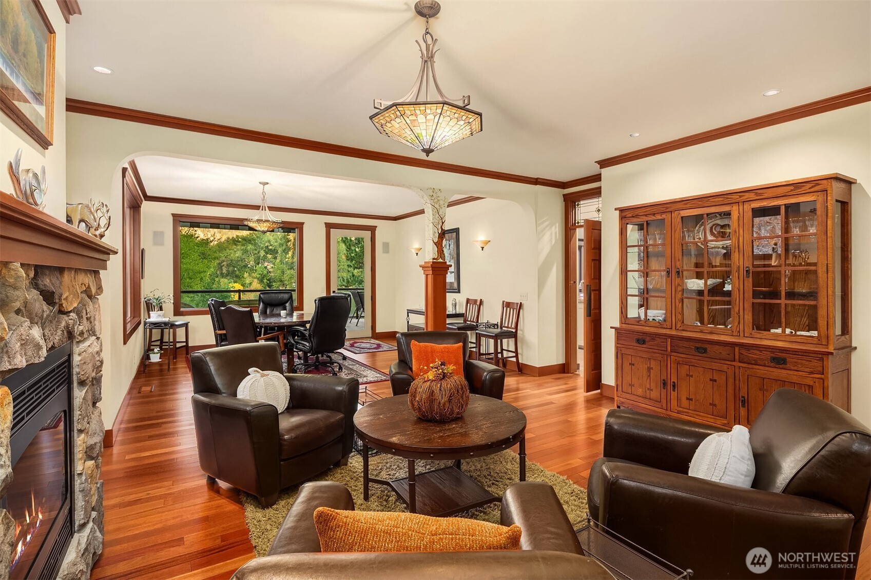 Experience the rare blend of luxury and tranquility at River Haus in the Pines, set along a premier stretch of the Wenatchee River with a sandy beach and exceptional swimming hole. A private setting where water, forest, and refined craftsmanship converge. The main level welcomes with rich hardwood floors, a spacious living room anchored by a gas fireplace, and seamless access to an expansive riverfront deck—perfect for taking in the sights and sounds of the water. The gourmet kitchen is designed for both entertaining and everyday living, featuring a generous island with prep sink, butler’s pantry, and an adjacent second living space with propane fireplace. A dedicated office or studio offers flexibility, all with direct deck access. Upstairs, four ensuite bedrooms create a true retreat experience—each with private decks, river or territorial views, and full baths. Thoughtful additions include an upper-level laundry and coffee bar, with three suites enhanced by their own gas fireplaces. The lower level is designed for gathering and relaxation, offering a theater room, additional bedroom and bath, ample storage, and direct access to a covered patio and the natural landscape beyond. Outdoors, terraced grounds lead to the river’s edge, complemented by a hot tub, Traeger grill, electric awnings, and a paved driveway to a spacious two-car garage. Every detail is curated for effortless indoor-outdoor living.