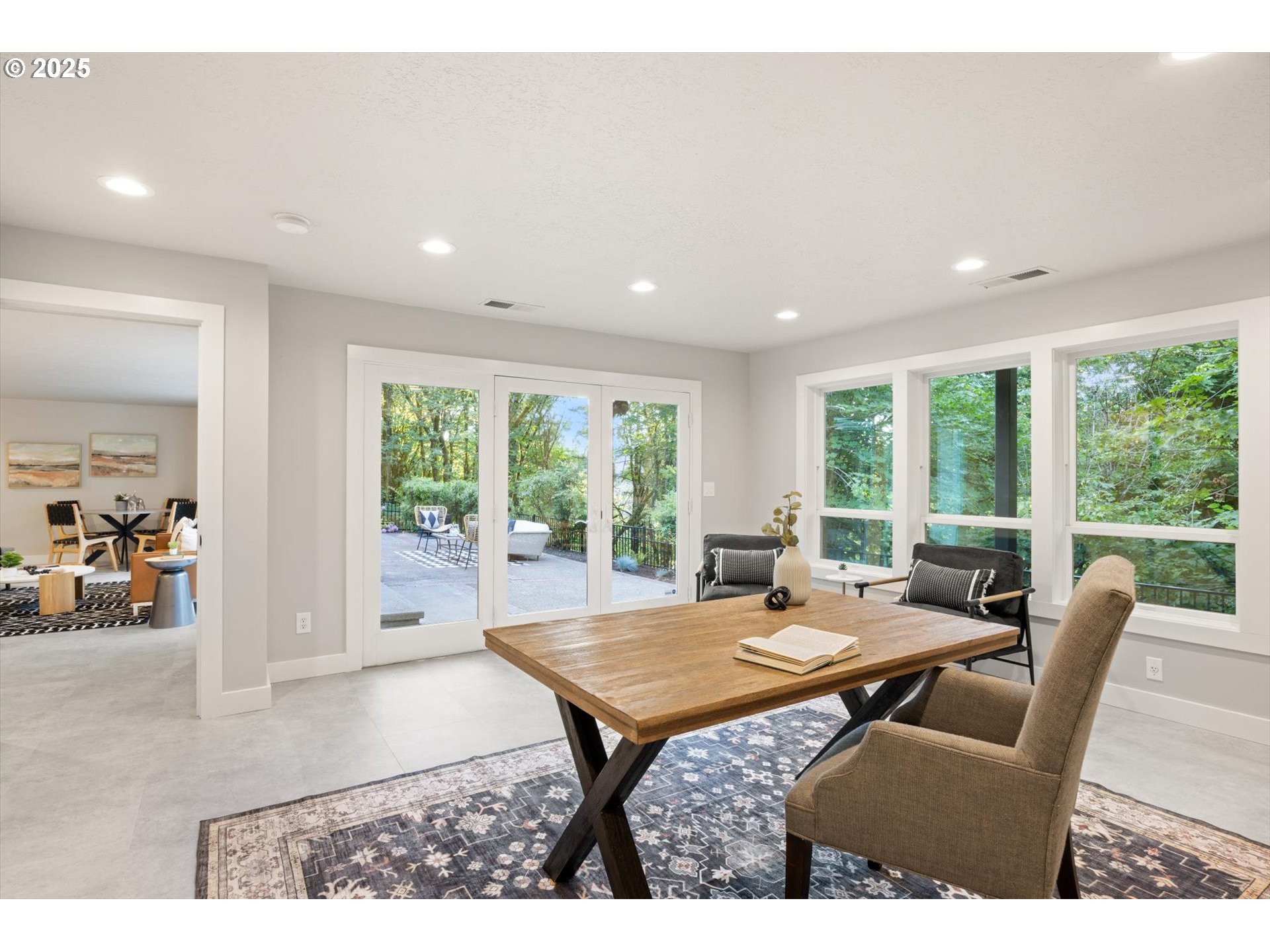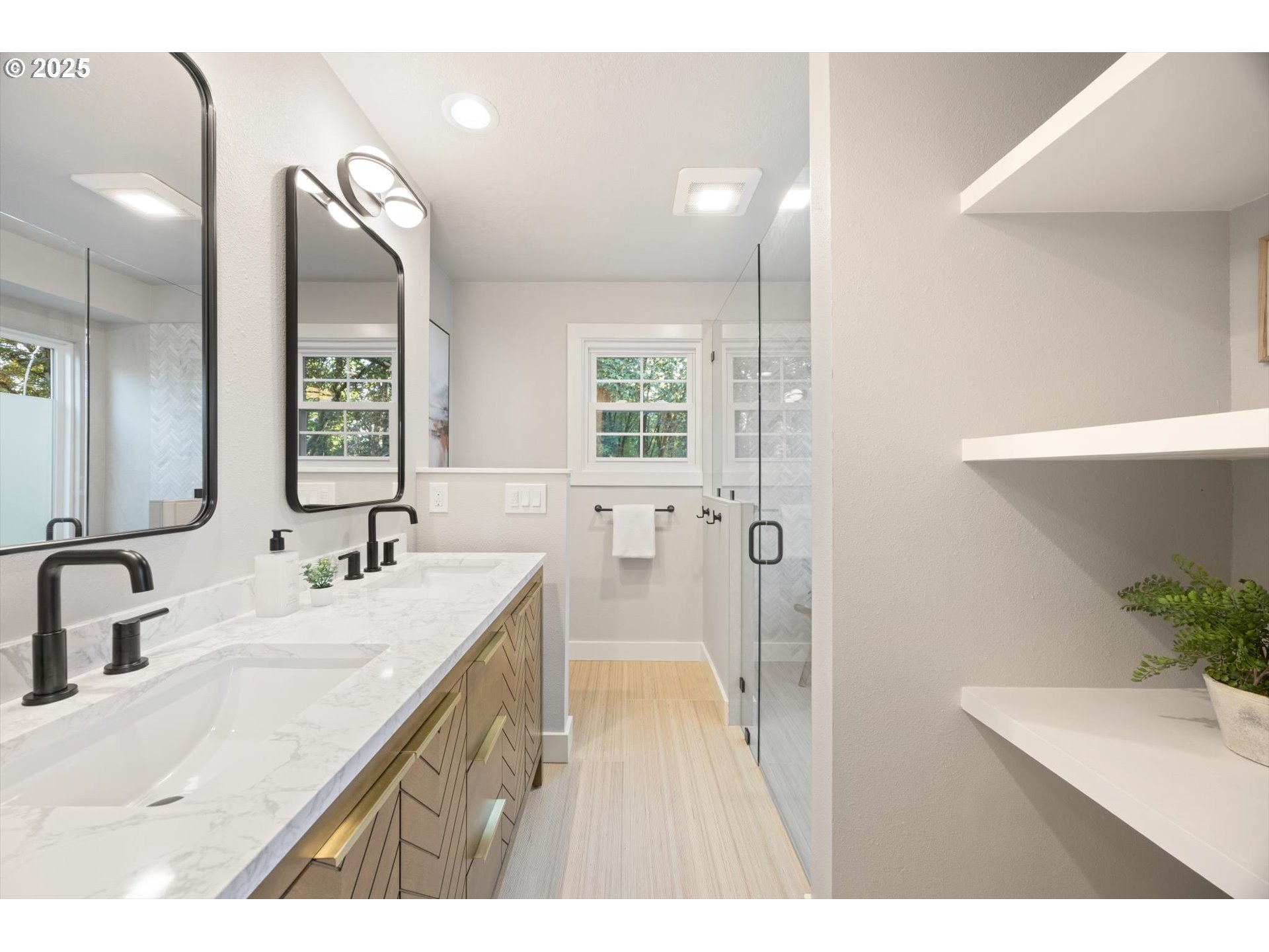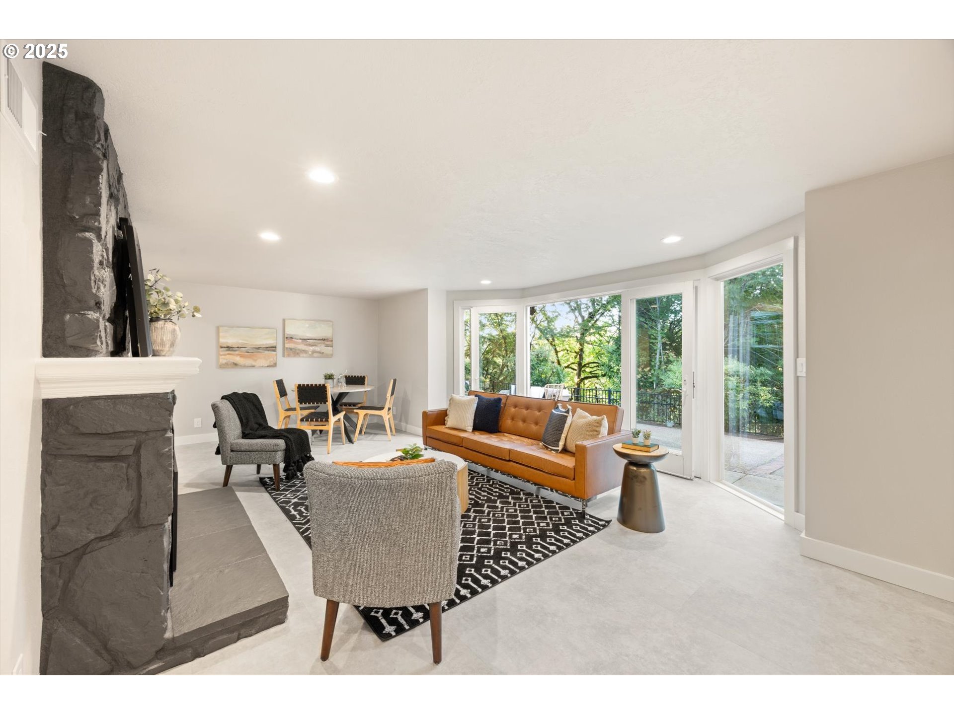 (503) 893-8874Tucked away on a private, tree-filled .32-acre lot, this beautifully updated Lake Oswego home offers exceptional flexibility, timeless finishes, and a serene natural setting. The oversized kitchen is designed to impress with a large center island, quartz countertops, stainless steel appliances, built-in microwave drawer, and a bay window over the sink that floods the space with natural light. Enjoy warm white oak flooring throughout much of the main level and a bright, open living room with gas fireplace and peaceful forest views.A vaulted flex room with private balcony and closet offers endless possibilities—dining, home office, guest suite, or creative space. The main-level primary suite features a walk-in closet, bay window, and spa-like en suite with double sinks, quartz counters, open shelving, and a stunning tiled walk-in shower with herringbone detail.The lower level includes additional bedrooms, a full bath, laundry room with exterior entrance, a spacious family room, and a second large flex suite—ideal for multi-generational living or guests. Plenty of storage, a huge gated patio, and a circle driveway complete the package. Located in one of Lake Oswego’s most desirable neighborhoods, with Southshore Glen Easement access and top-rated schools nearby.