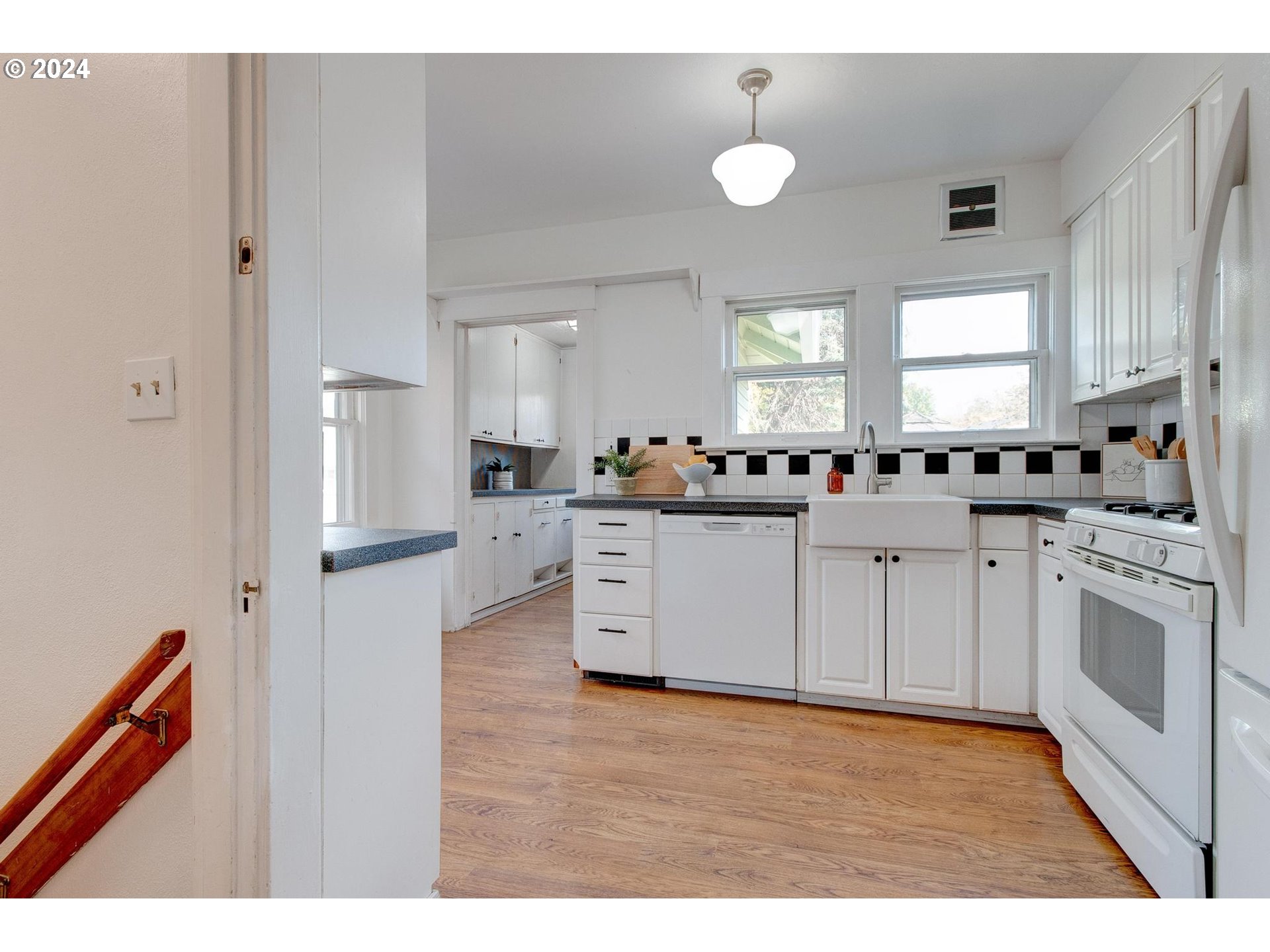 (503) 893-8874Darling quintessential bungalow with original charm and character located in Milwaukie. 3 bedroom, 1 bath with flex space for WFH, playroom, music or art room upstairs. Large detached 2 car garage set back with space for entertaining in the backyard. New paint interior paint (2024), newer exterior paint, new front fence, newer roof, convenient location-- just a stones throw away from Milwaukie Bay Park, grocery, dining and fun! Settle in before the holidays!