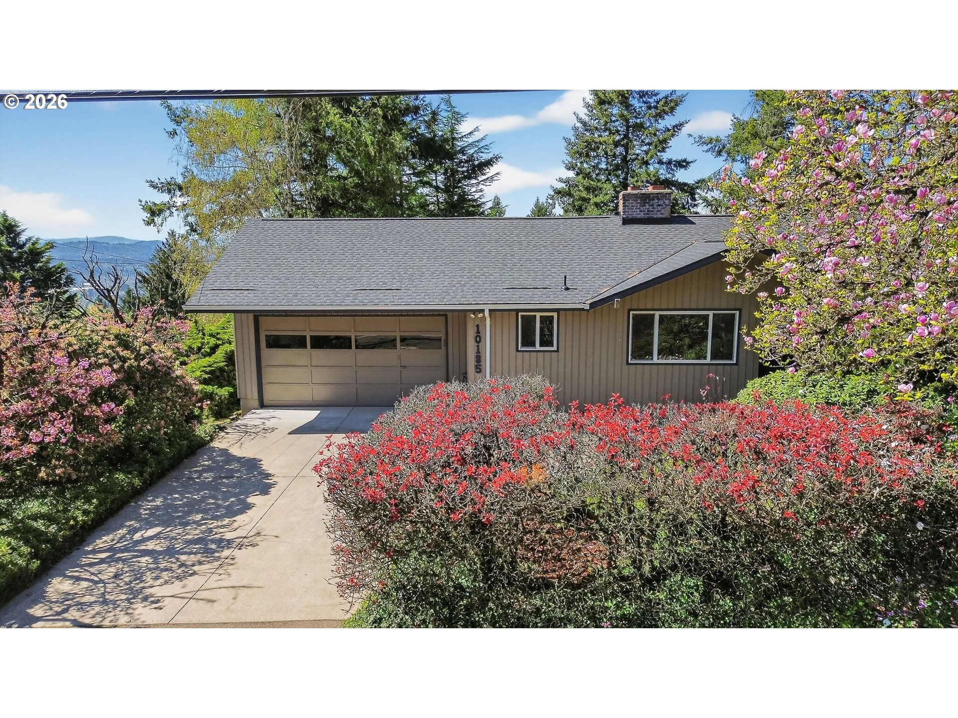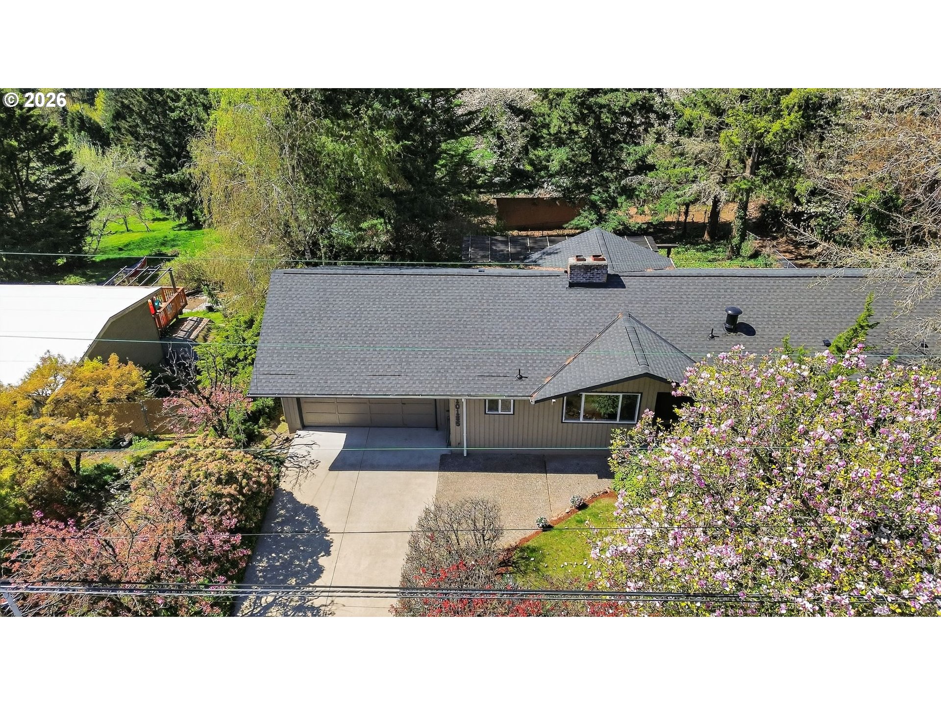 Charming 1963 Ranch home in Happy Valley’s desirable Southview neighborhood! Freshly updated with a new roof (Oct 2025) and newly stained, upgraded back deck (Oct 2025).The spacious living room features a wall of picture windows flooding the space with natural light and offering beautiful valley, city, and territorial views, plus a striking Halquist stone fireplace. Main-floor living includes three bedrooms, two baths, vintage flooring, built-in desks, a formal dining room, and a bright kitchen with generous workspace and a large eating area. Laundry is conveniently on the main level.Downstairs you’ll love the large daylight basement with a family room centered on a cozy Cherokee brick fireplace, a bonus office/work room with adjacent full bath, an extra bedroom, workshop, and plenty of storage.Situated on a huge 200 × 400 lot with room to roam and a private backyard oasis. The sale also includes the matching 200 × 400 lot west of the shed—clear and thin it for potential panoramic city and valley views! Solid construction, spectacular floor plan and endless possibilities, don't miss this gem.