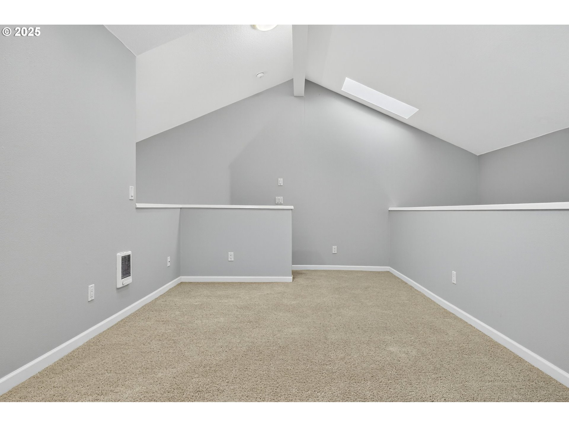 Welcome to this well-maintained condominium community in Clackamas, offering comfort, convenience, and Pacific Northwest living with direct access to nature. This beautifully updated 1-bedroom, 1-bath home features 962 sq ft of light-filled living space plus a spacious loft, ideal for flexible living or a work-from-home set up. The open layout showcases vaulted ceilings, a cozy fireplace, and stylish modern finishes throughout. The sleek kitchen includes stainless-steel appliances refrigerator, dishwasher, and microwave—along with in-unit laundry conveniently located in the primary bathroom. Upstairs, the loft includes a closet, an additional storage room with laundry hookups, and an adjoining storage space for even more functionality.Enjoy outdoor living on your private deck with a peaceful view, low-maintenance vinyl lap siding, and HOA-covered exterior care in a quiet, well-kept community. Community amenities include a sparkling swimming pool, spa, fitness center, community room with kitchen, and recreational facilities.PNW living meets everyday convenience with direct access to the Mount Talbert Nature Park trailhead on SE Talbert St., offering miles of nearby hiking trails. Located just minutes from I-205, Kaiser Medical Center, Clackamas Town Center, shopping, dining, entertainment, and the TriMet MAX Green Line.The HOA includes water, sewer, garbage, exterior maintenance, and access to the clubhouse, pool, and recreational amenities.