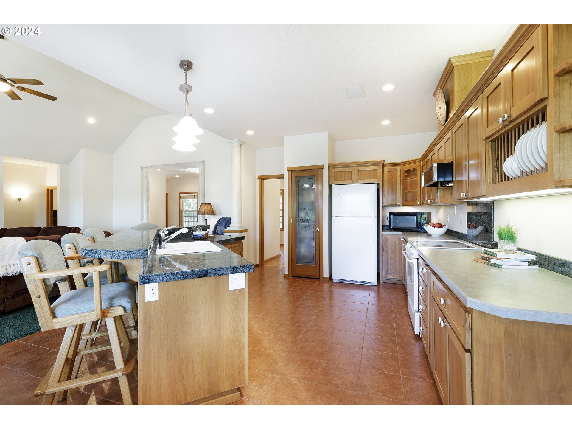 Gorgeous year-round territorial views of the Willamette River and surrounding valley on this lot size of just over one acre. A wall of vaulted windows and glass and metal railings on the 39x15 deck assure you get to enjoy the river views from outside or inside at all times. The main level has an amazing open floor plan with the kitchen, island eating bar, living room, and casual dining all open to vaulted ceilings. The generous 18x16 primary suite has tray ceilings, and ensuite bathroom with walk-in closet, double vanity sinks, tile shower, and clawfoot tub. The formal dining room, two bedrooms, full bath and laundry room complete the main level. The two upper rooms are perfect for bedrooms, or craft room, family room, or any space that fits your needs. The original owners included plumbing in the wall should the future owner want to add a third bathroom upstairs (buyer to verify). The home is set up with an electrical transfer switch for a secondary source of power using the generator in the garage. Seller will include the generator with a net full price offer. This will keep the kitchen, refrigerator, and the well pump running in the event of a power outage and the woodburning stove in the living room will keep the home warm and cozy. Plenty of parking with the attached oversized two car garage, or the freshly seal coated parking pad in front of the house. Mature established landscaping provides a beautiful look and privacy to this low maintenance lot. Other notable features include: $20K in security doors, attic with an easy access catwalk, Presidential roof, and a huge 10 foot high unfinished all plywood construction crawlspace which could lend possibilities for finishing out a third level.