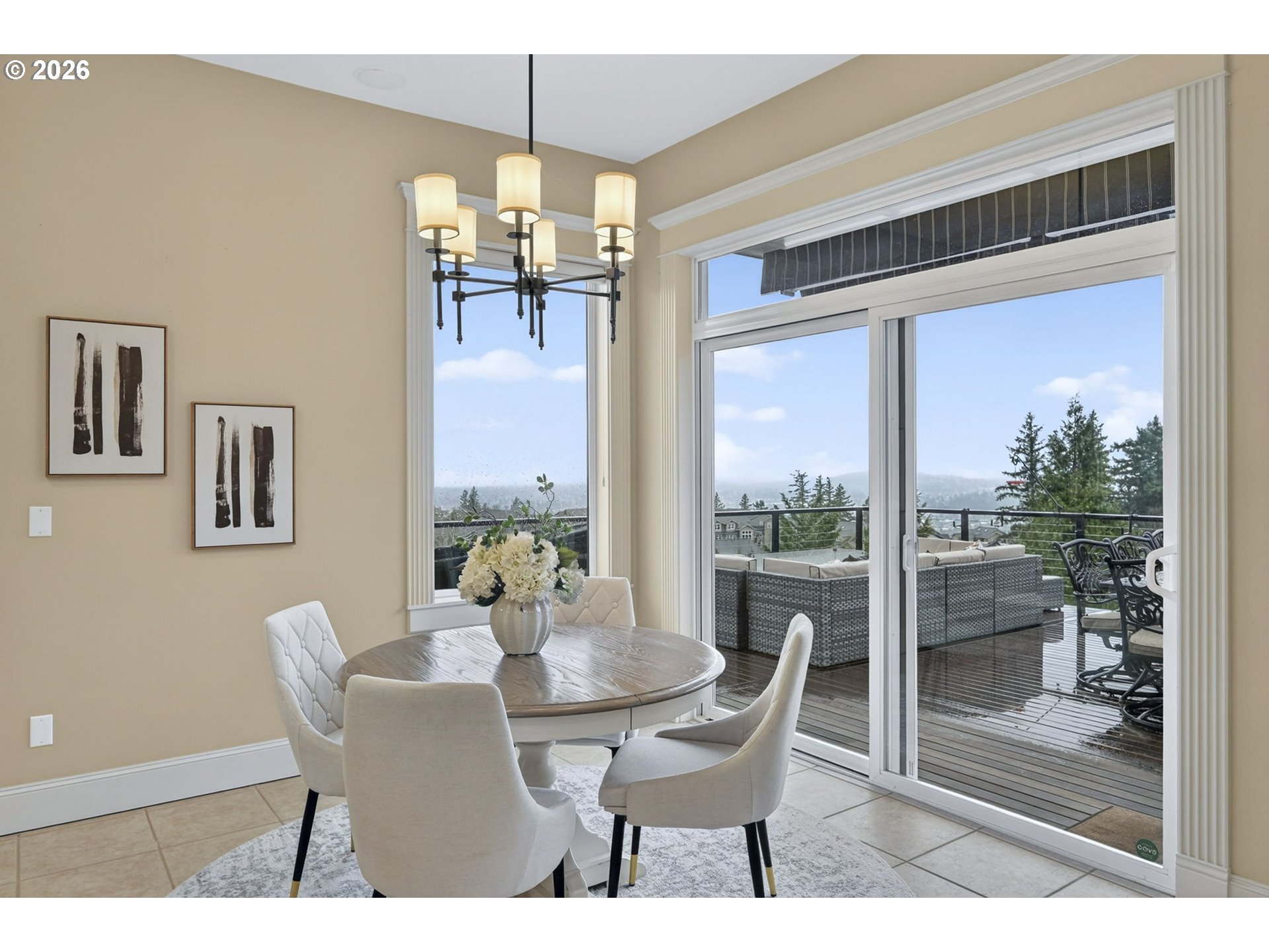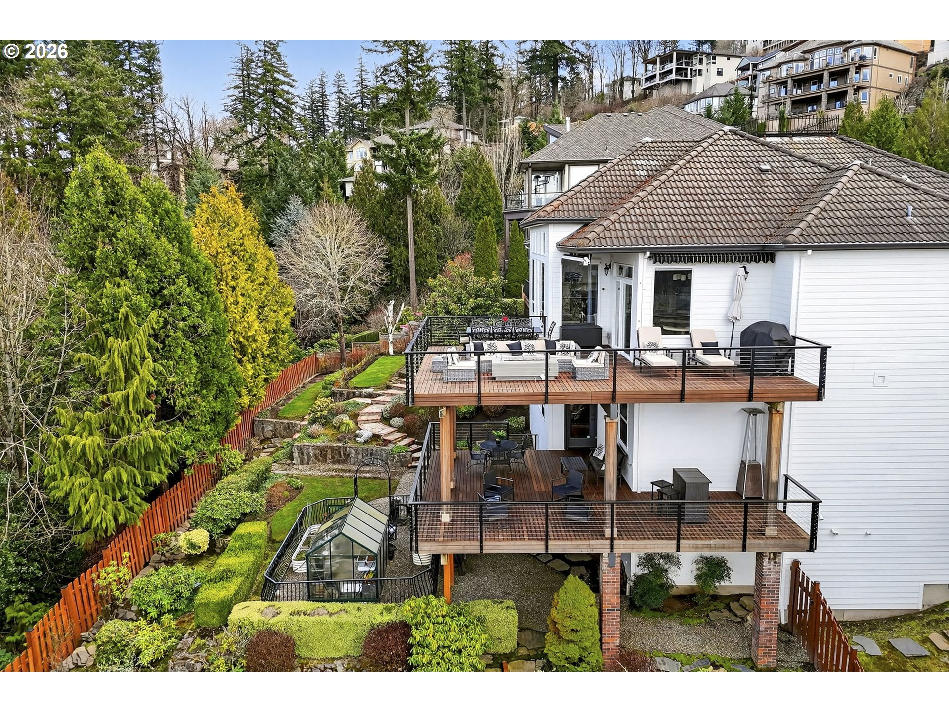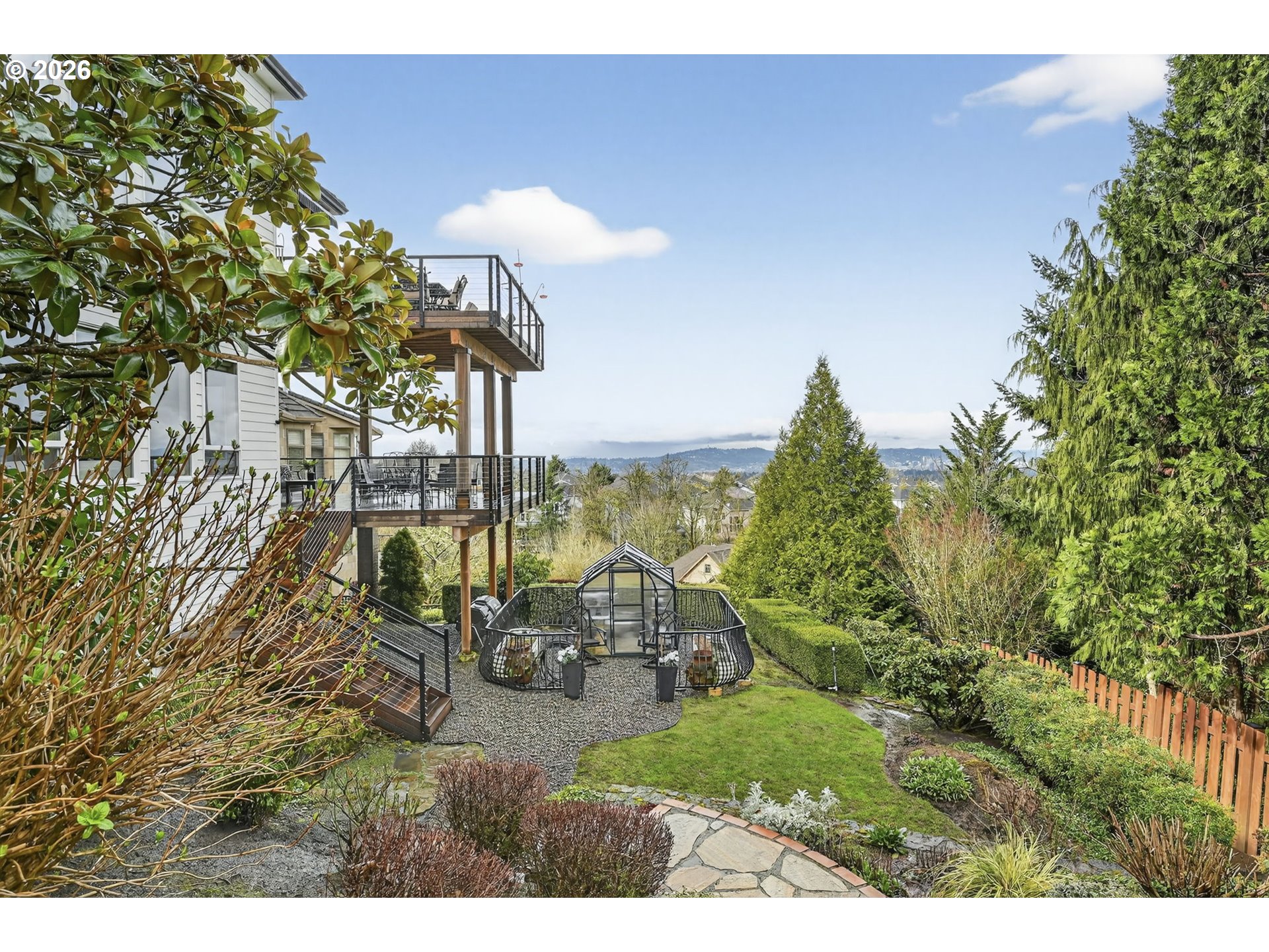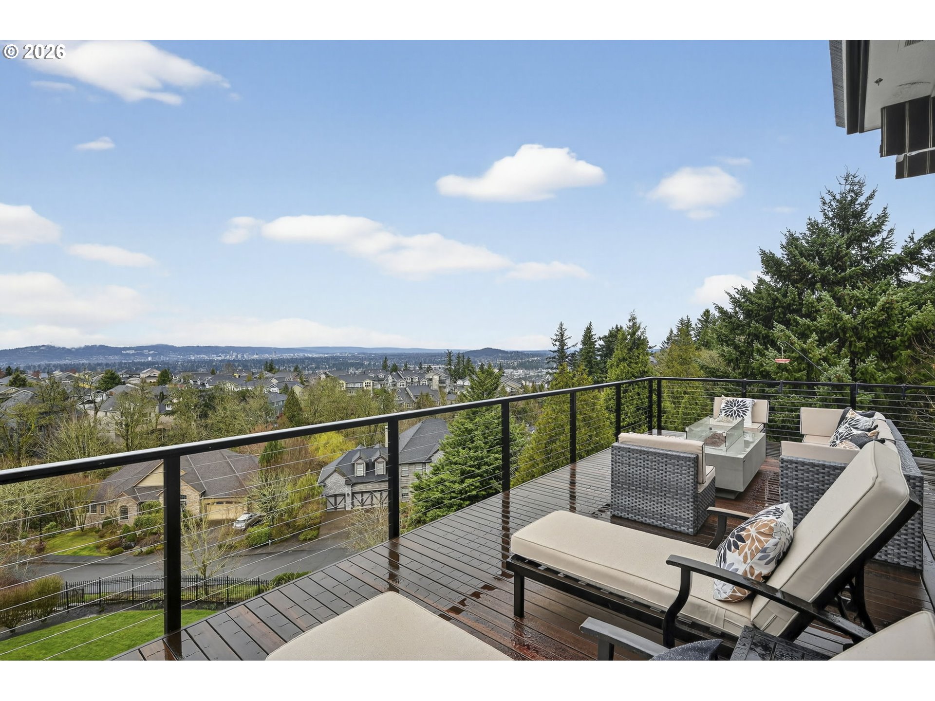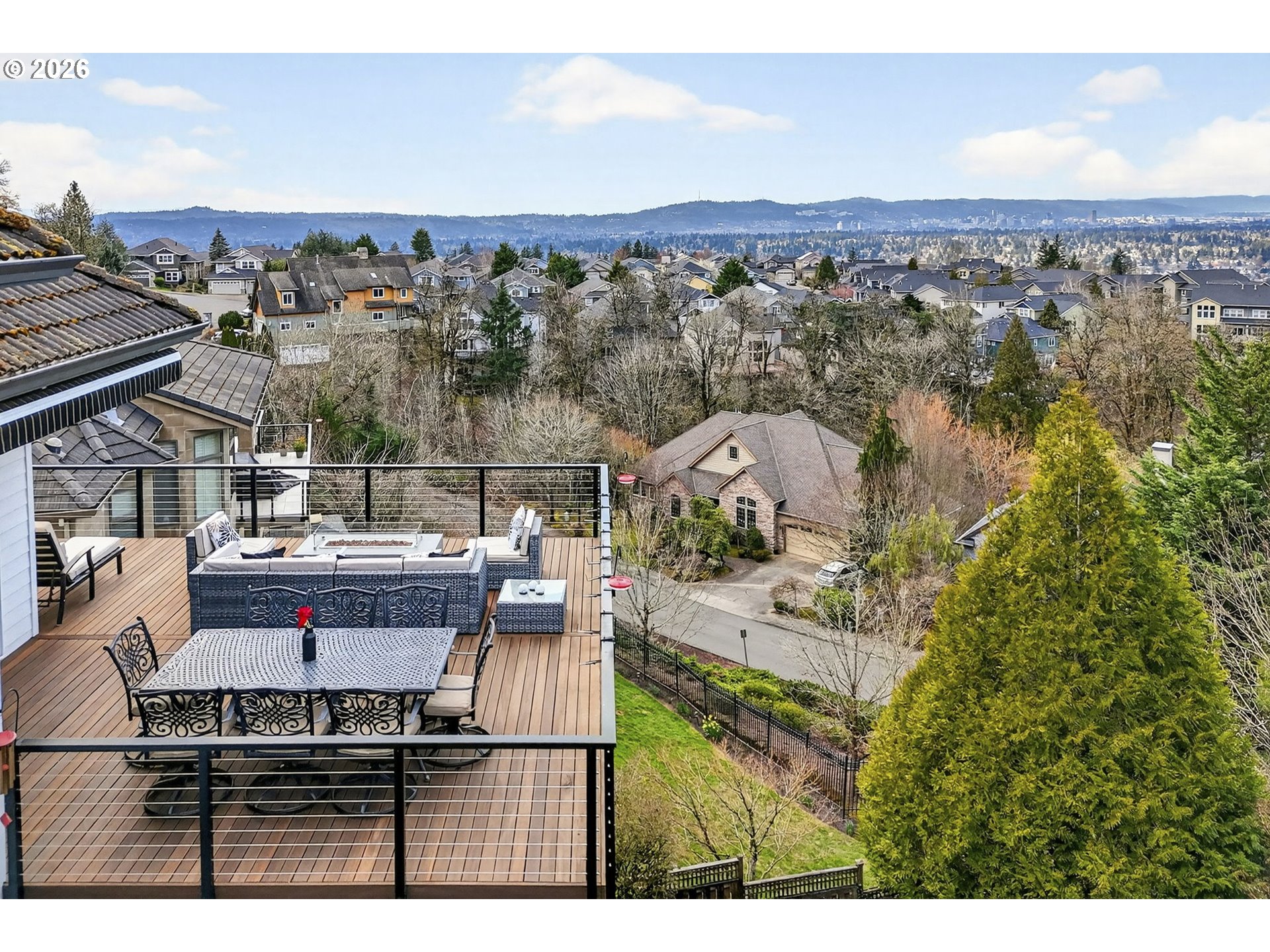 Luxury custom built home with beautiful city views & main level living.Stunning custom-built 4-bedroom home with a luxurious primary suite on the main level, designed to capture sweeping views from Mt. Tabor to Portland’s SW Waterfront—and on clear days extending to the Coastal Mountain Range. Meticulously maintained with tasteful updates over the years.The gourmet kitchen features GE Monogram Series appliances, granite countertops, instant hot water, and generous prep space- perfect for entertaining or everyday living.The beautiful primary suite offers a true retreat with floor-to-ceiling marble finishes, fireplace, double closets, and spa-inspired bath with an impressive 8’ x 6’ walk-in shower and jetted tub with views.Designed for both productivity and relaxation, the home also includes a private office with built-ins, workout room, and sauna.Take the elevator or the stairs down to the lower level featuring a spacious family room with custom built-ins and wet bar. Lower living room opens to a large mahogany deck overlooking the city and your private backyard. This lower level also includes three additional bedrooms all with en suites, a second laundry, and a temperature-controlled 660-bottle wine cellar.Outdoor living shines with over 1,000 sq ft of mahogany decking with natural gas fireplace, ideal for enjoying breathtaking sunsets. 3 car garage with epoxy floors- big enough for all your storage, cars or hobbies.An exceptional property-combining luxury, comfort, and thoughtful design. This home is meticulously maintained & ready for you.