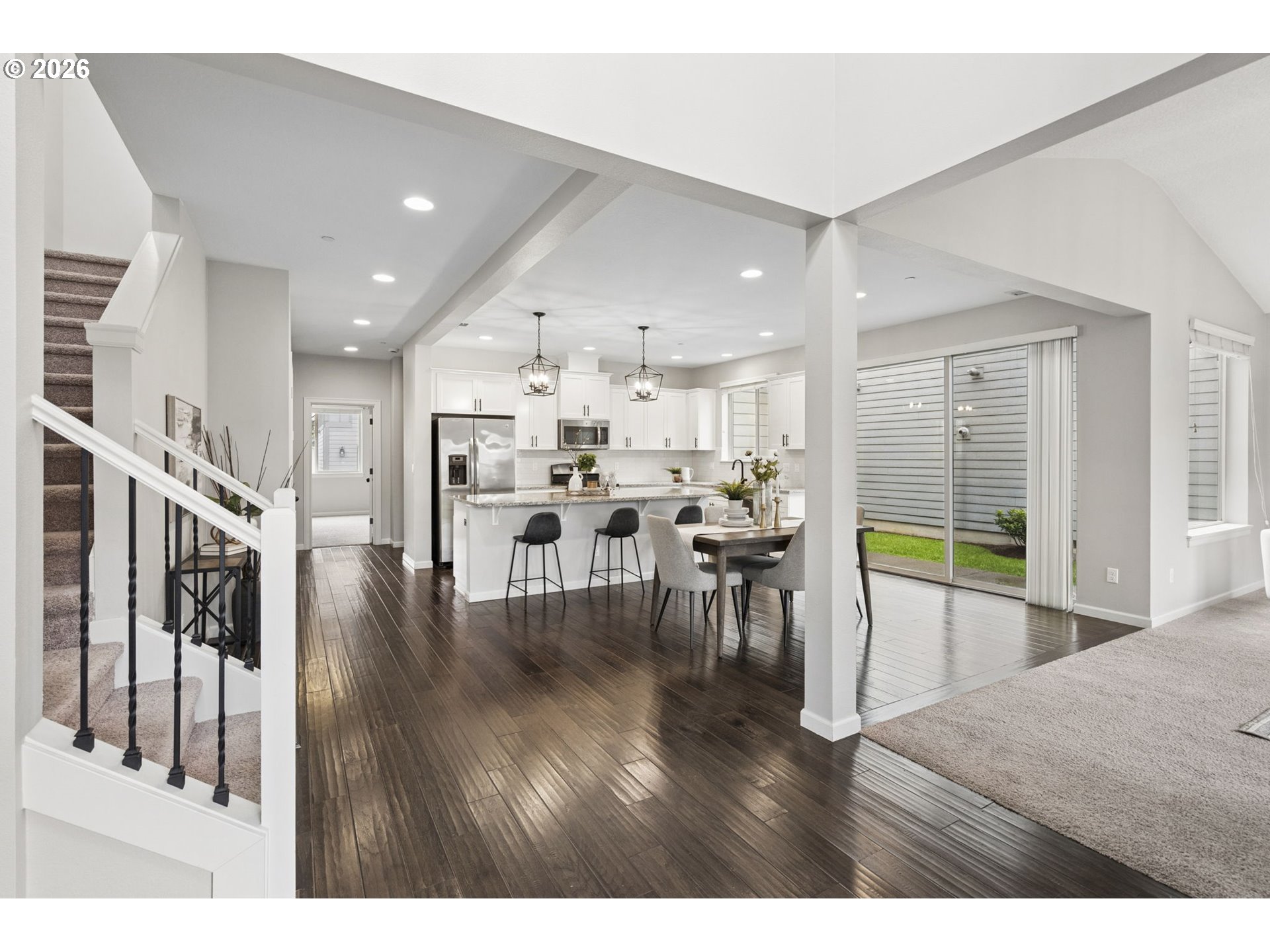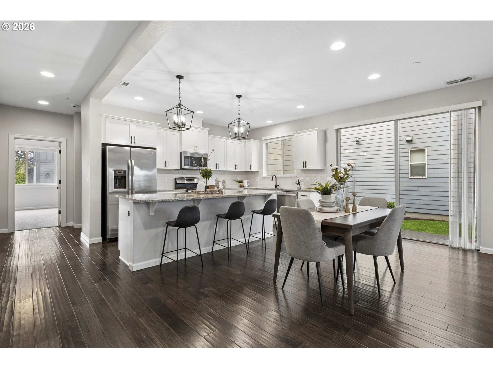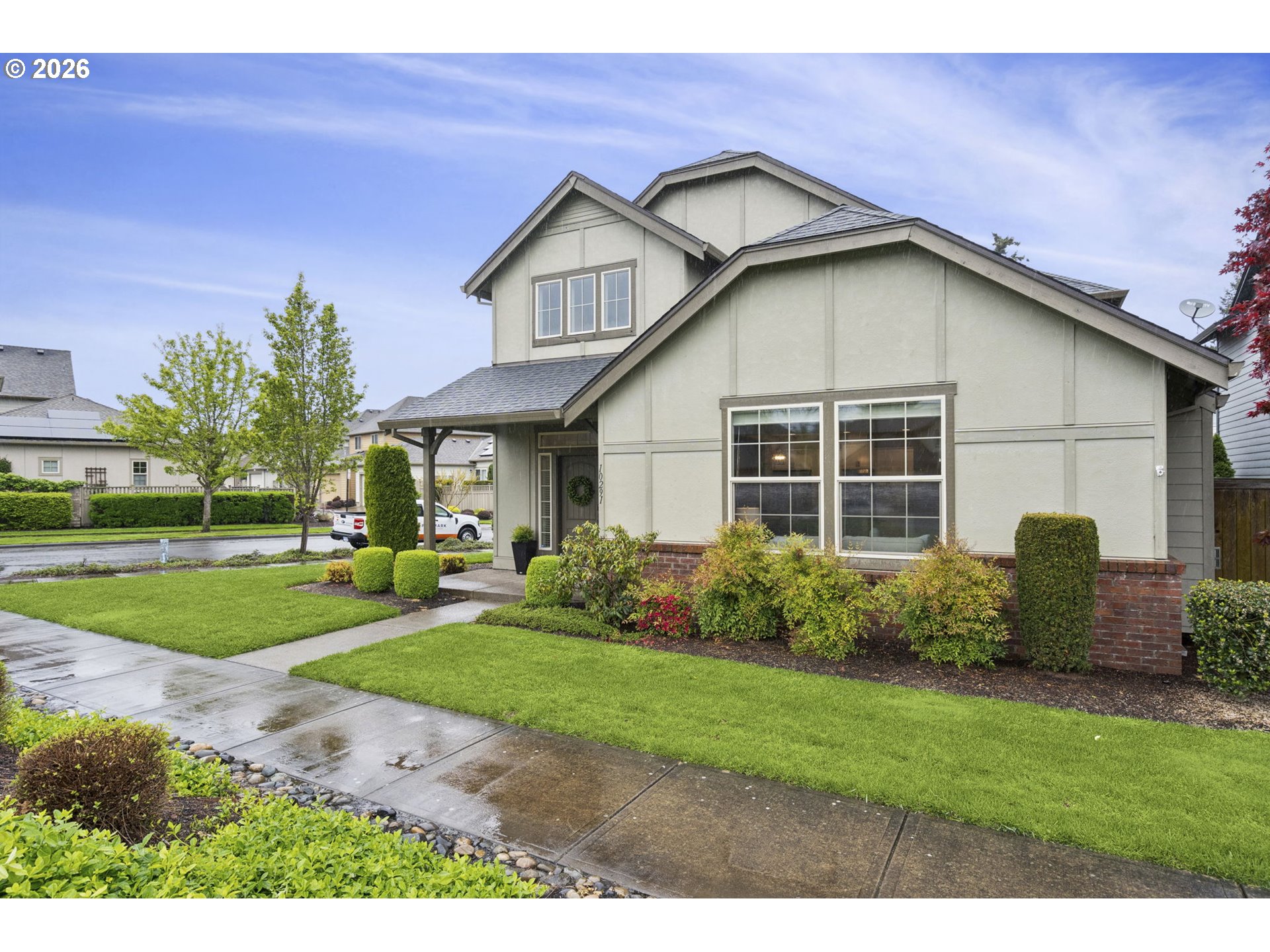 Situated on a prime corner lot in highly sought-after Villebois, this beautifully refreshed home blends timeless style with everyday functionality. Offering 4 bedrooms and 3 full baths—including a main-level bedroom and full bath—the layout is designed for flexibility and ease.The light-filled, open-concept kitchen shines with a large island, spacious walk-in pantry, Breakfast bar, and seamless connection to the spacious living room anchored by a cozy gas fireplace—ideal for both entertaining and daily living. Upstairs, the primary suite offers a generous en-suite bathroom and large walk-in closet, complemented by two additional bedrooms on the upper level.Step outside to a private, fenced courtyard featuring a patio and mature landscaping—your own peaceful outdoor retreat. A rare find in Villebois, the home also includes a 2-car driveway for added convenience.Walk right out your front door to an expansive, beautifully maintained greenspace complete with a playground and plenty of room to relax, gather, and enjoy the outdoors.Thoughtful updates include professionally painted interiors and kitchen cabinetry (2021), updated modern light fixtures on the main level. (2021).Tankless water heater and low HOA.Enjoy all that the Villebois community has to offer, with scenic paths, parks, and vibrant neighborhood charm and events just moments away.A standout home in one of Wilsonville’s most beloved neighborhoods. OPEN HOUSE- Saturday 4/18 2-4pm.