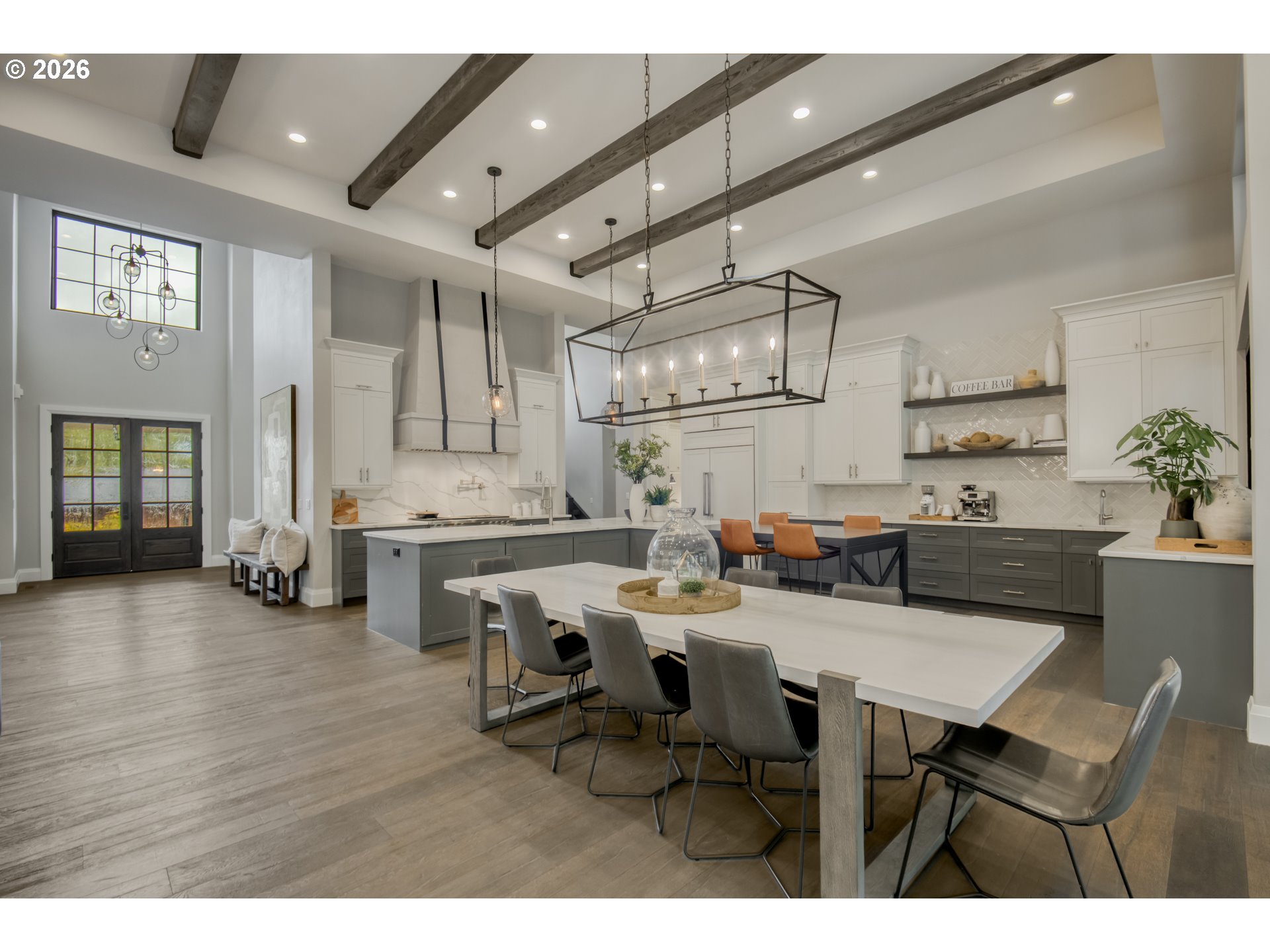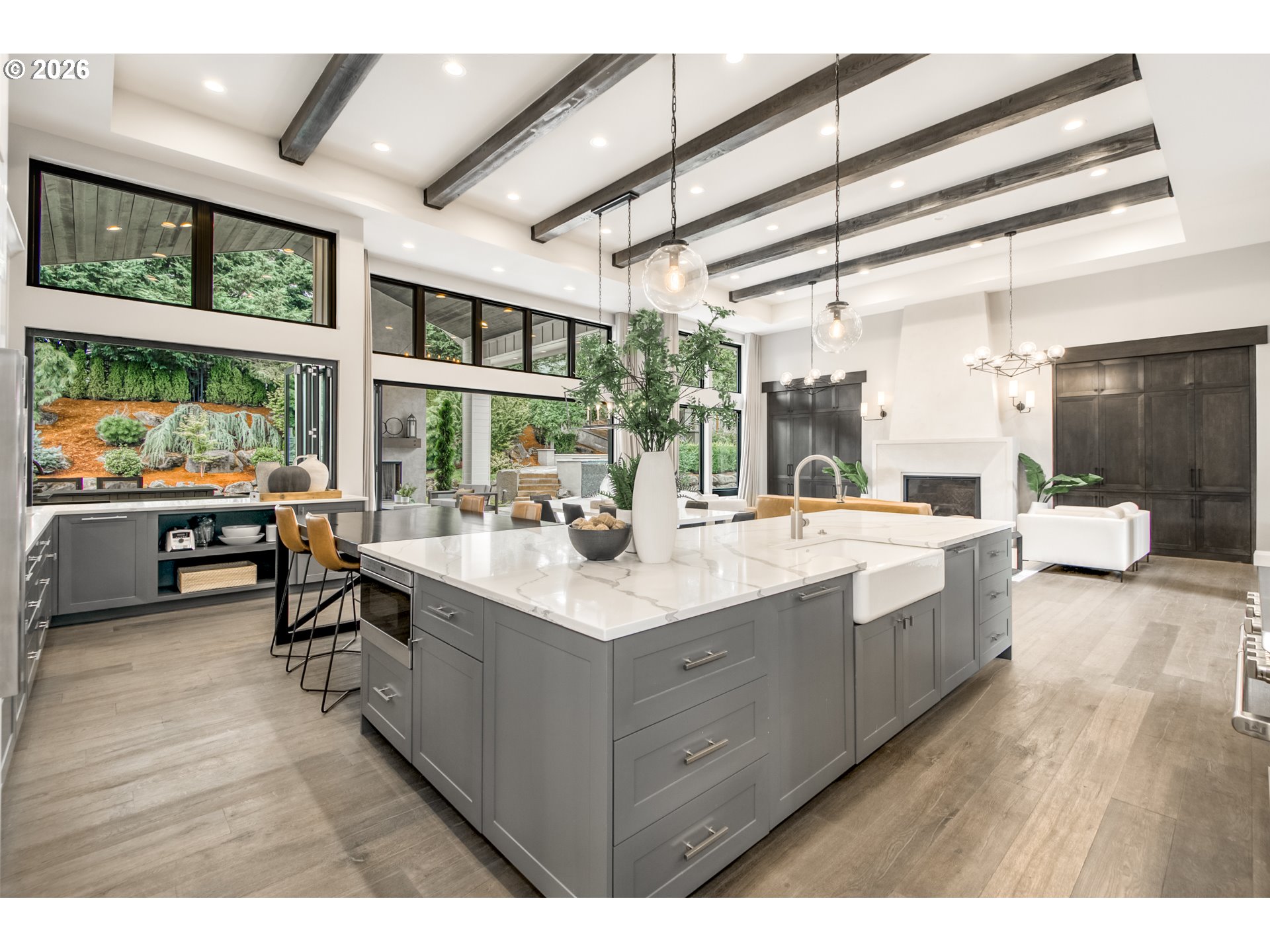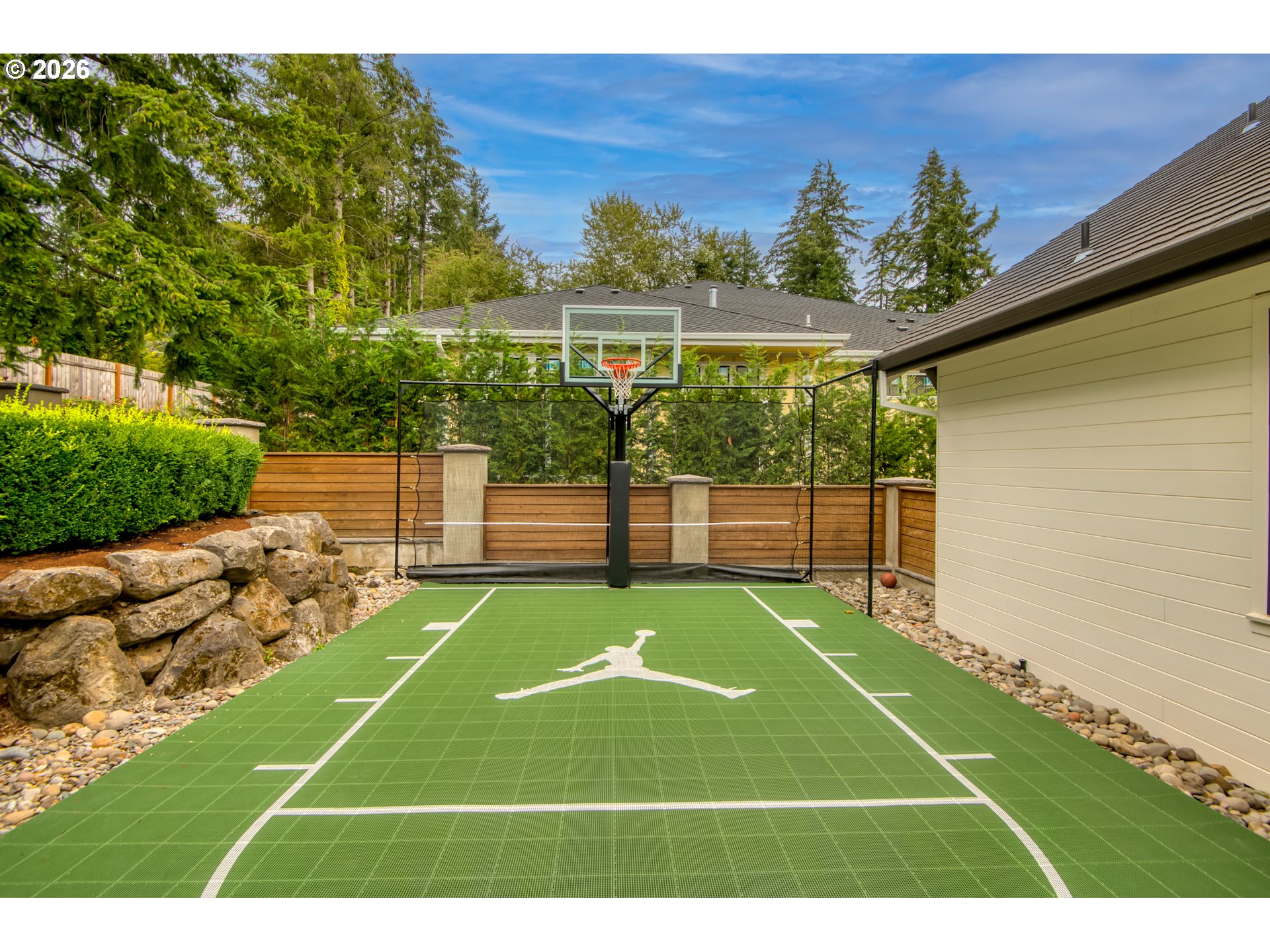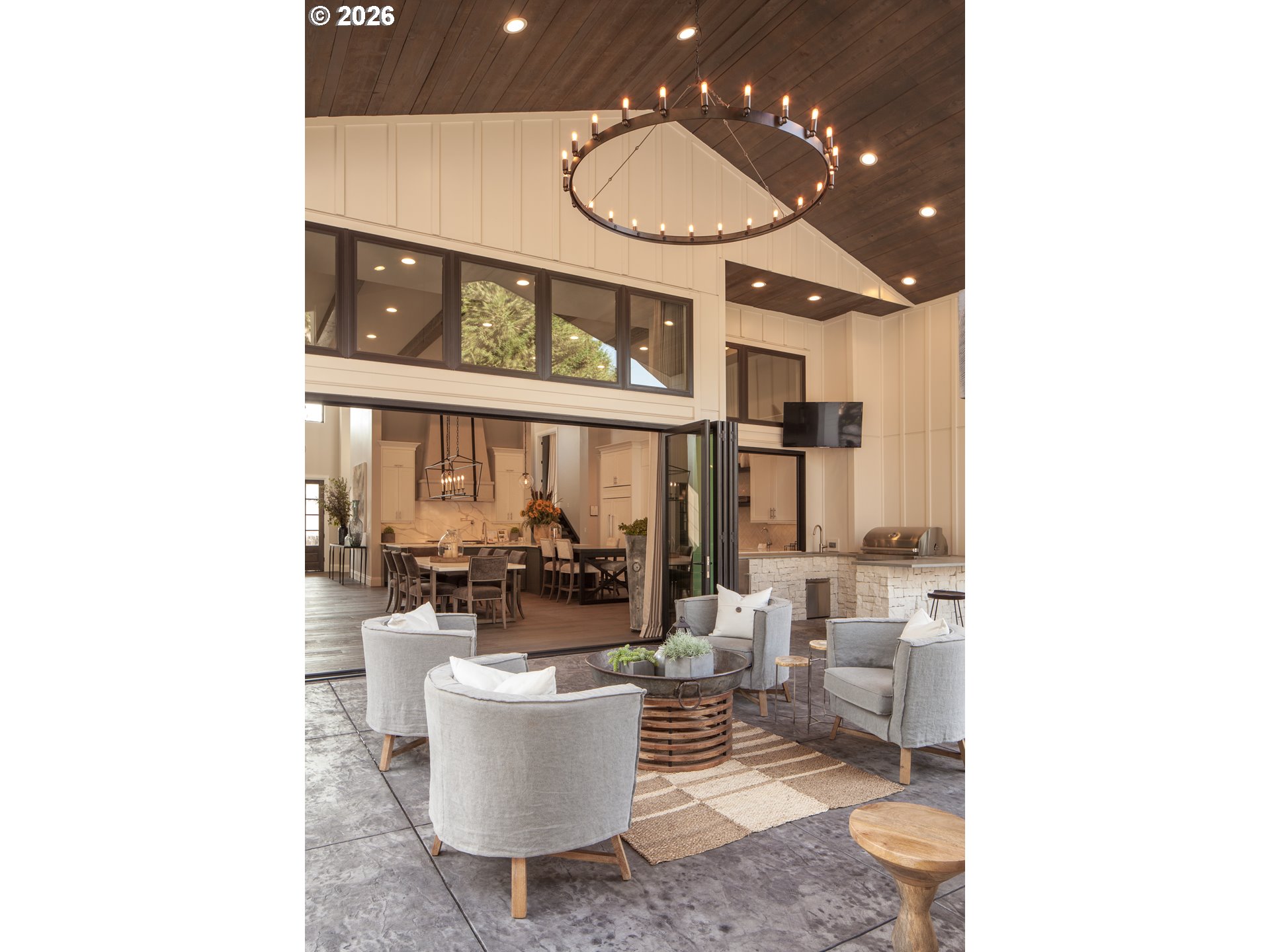 One-level living at its finest. Welcome to The Elysian — an award-winning custom home in the gated 2017 Street of Dreams neighborhood. The open-concept layout is anchored by a striking hood fireplace and seamless indoor-outdoor living through lanai bi-fold doors. The chef’s kitchen is equipped with premium Wolf and Sub-Zero appliances. The luxurious primary suite includes a spacious walk-in closet with a center island and a spa-like roll-in shower. Quartz countertops and heated tile floors extend throughout the home. The oversized bonus room houses a dedicated home theater with a 144" Stewart screen and immersive 11.2 Dolby Atmos sound. The outdoor living is equally impressive, featuring a custom in-ground spa, outdoor kitchen, covered dining area, basketball sport court, and a charming European-style greenhouse. Additional amenities include a temperature-controlled wine room, private gym, dog wash, and fenced dog run. Ideally located within walking distance to top-rated schools, scenic walking trails, and the beautiful Happy Valley Park, this home offers the perfect balance of luxury living and everyday convenience.