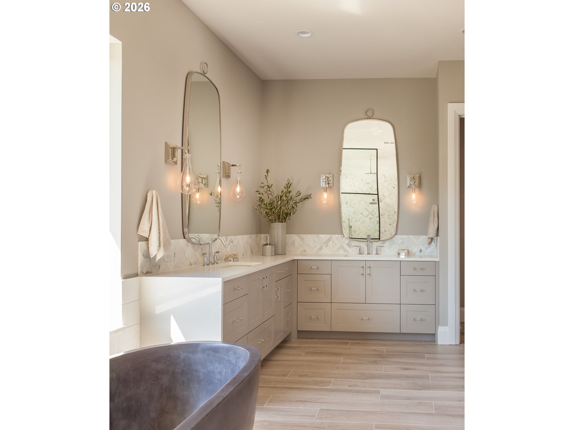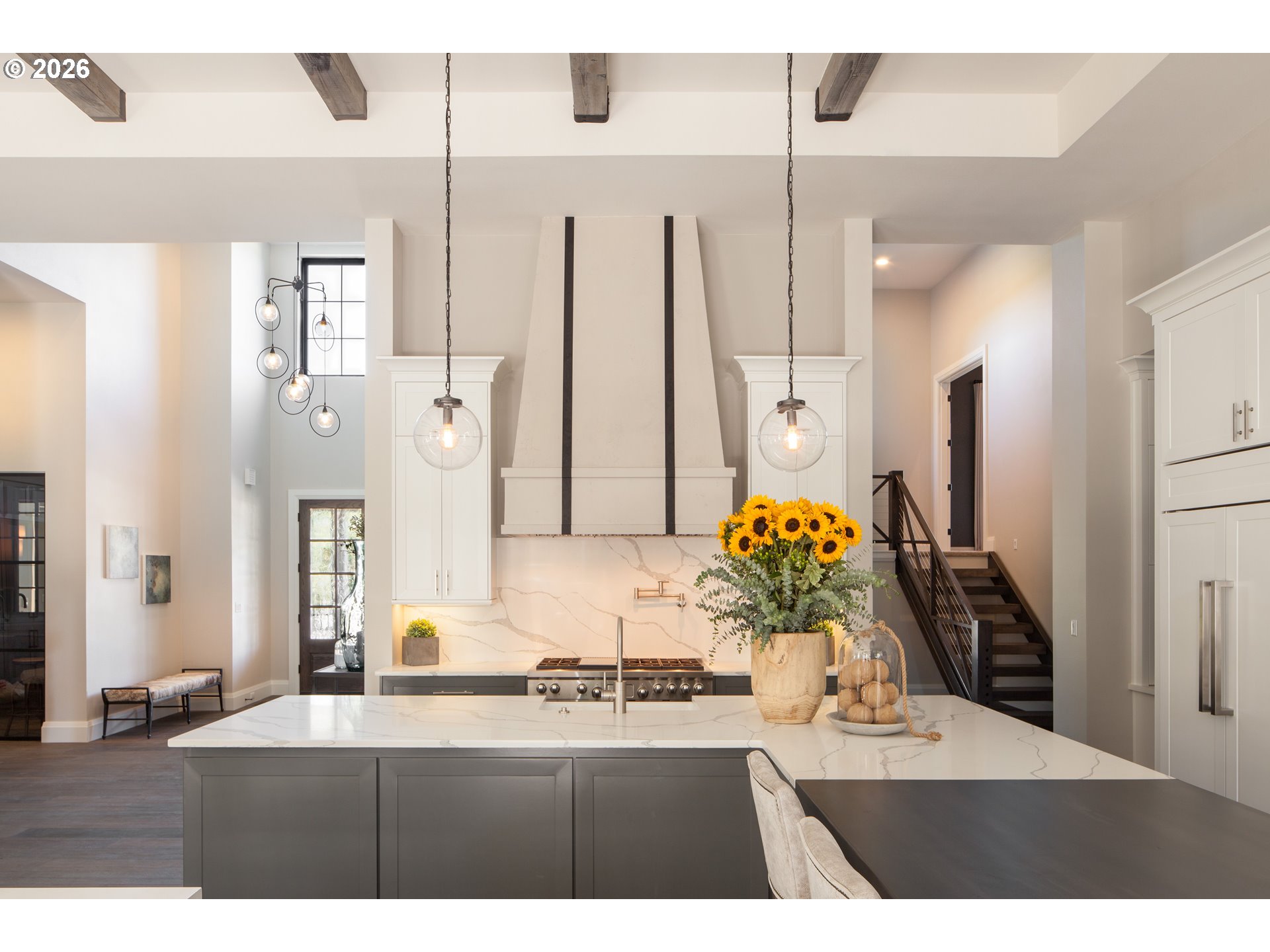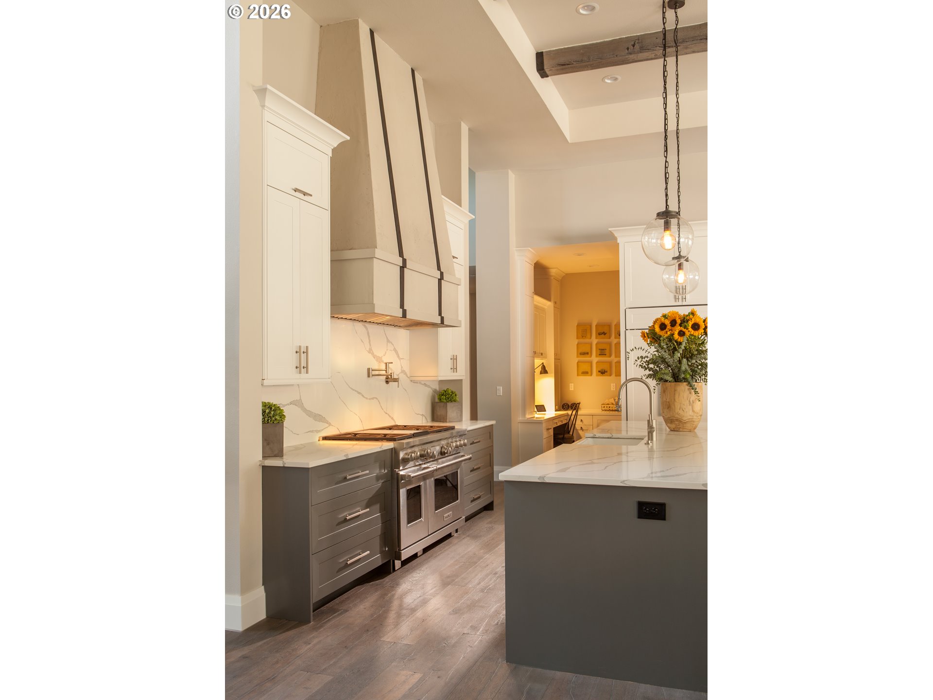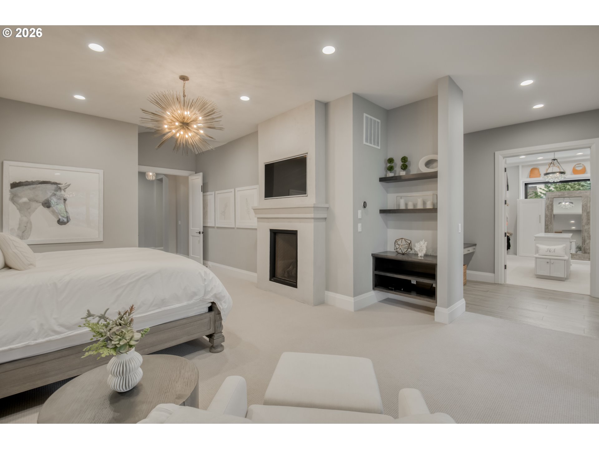 One-level living at its finest. Welcome to The Elysian — an award-winning custom home in the gated 2017 Street of Dreams neighborhood. The open-concept layout is anchored by a striking hood fireplace and seamless indoor-outdoor living through lanai bi-fold doors. The chef’s kitchen is equipped with premium Wolf and Sub-Zero appliances. The luxurious primary suite includes a spacious walk-in closet with a center island and a spa-like roll-in shower. Quartz countertops and heated tile floors extend throughout the home. The oversized bonus room houses a dedicated home theater with a 144" Stewart screen and immersive 11.2 Dolby Atmos sound. The outdoor living is equally impressive, featuring a custom in-ground spa, outdoor kitchen, covered dining area, basketball sport court, and a charming European-style greenhouse. Additional amenities include a temperature-controlled wine room, private gym, dog wash, and fenced dog run. Ideally located within walking distance to top-rated schools, scenic walking trails, and the beautiful Happy Valley Park, this home offers the perfect balance of luxury living and everyday convenience.