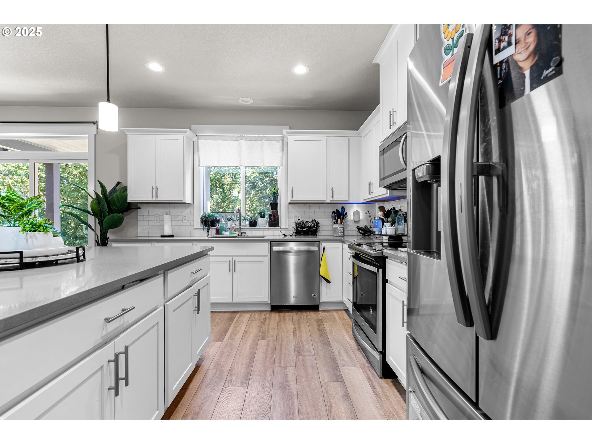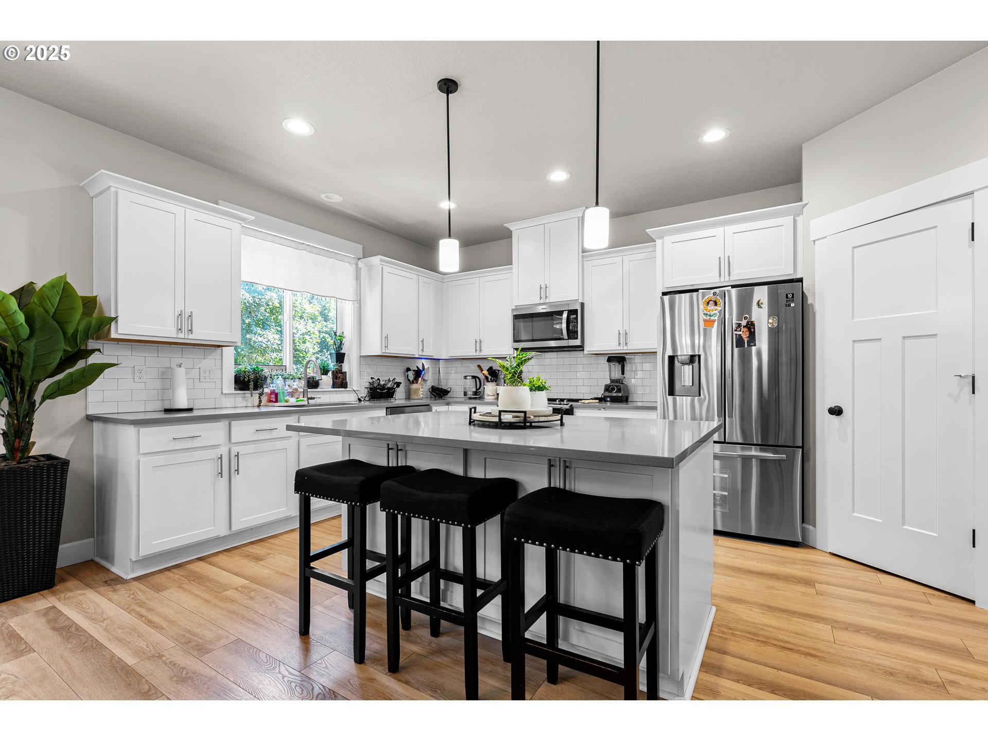 Welcome to this stunning, like-new home located in the charming town of Estacada, Oregon. With over 2,000 square feet of thoughtfully designed living space, this 4-bedroom, 2.5-bath home offers the perfect blend of modern comfort and small-town charm. Step inside to a bright, open floor plan featuring a stylish modern flooring throughout the main level. The spacious living area centers around a cozy propane fireplace, ideal for cool Oregon evenings. The large kitchen is a chef’s dream—complete with a generous island, pantry, sleek countertops, and ample cabinetry. A convenient half bath on the main level adds functionality for guests. Upstairs, you’ll find a spacious primary suite featuring vaulted ceilings, dual vanities (his & hers sinks), a walk-in closet, and plenty of natural light. Also on the upper level is a dedicated laundry room, three additional generously sized bedrooms, and a full second bath. Enjoy outdoor living year-round with a covered patio overlooking the oversized lot. The fully fenced backyard offers privacy, room to garden, entertain, or just let pets and kids play freely. Located in Estacada, you'll love the peaceful, scenic setting while still enjoying convenient access to shopping, dining, and outdoor recreation. Nestled at the gateway to the Mount Hood National Forest, Estacada is known for its strong community spirit, arts scene, and endless opportunities for hiking, kayaking, and exploring the Clackamas River. Don’t miss your chance to own this modern gem in one of Oregon’s most inviting small towns!