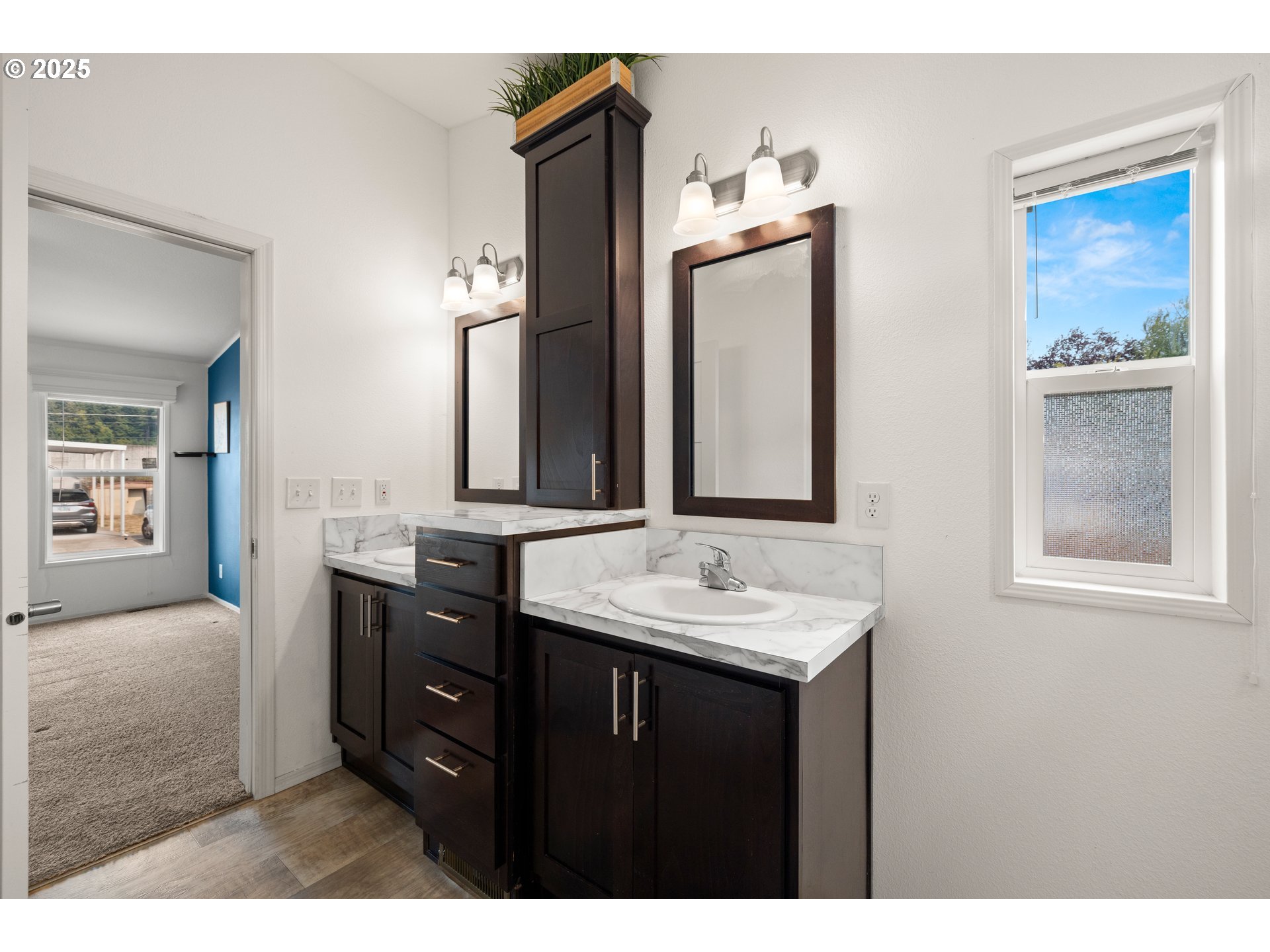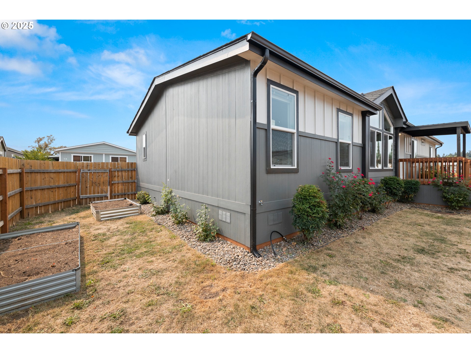 Step into this stunning home featuring a spacious kitchen with gleaming hardwood cabinets, stylish backsplash, and all appliances included. The adjacent dining room offers a perfect space for gatherings, conveniently located just off the kitchen. Another living space off of dining room. Enjoy the comfort of a split floorplan with a cozy family room ideal for relaxing or entertaining. The Primary Bedroom boasts generous space, a walk-in closet, and an en-suite bathroom with dual vanities and a soaking tub—your private retreat at the end of the day. The primary bathroom features dual sinks and a full-sized walk-in shower, perfect for a touch of luxury. Guest bedrooms are conveniently located on the opposite end of the home, close to guest bathrooms for added privacy and comfort. The utility room comes equipped with a washer and dryer, making laundry day a breeze. Outside, enjoy your fully fenced yard with garden boxes ready for planting, plus a carport that fits 2–3 vehicles. Stay comfortable year-round with a heat pump and air conditioning system. This home is in wonderful condition—truly move-in ready. Space rent: $929/month Park offers: Clubhouse, swimming pool, basketball court, horseshoes. Close to shopping restaurants, schools, hospitals and more.