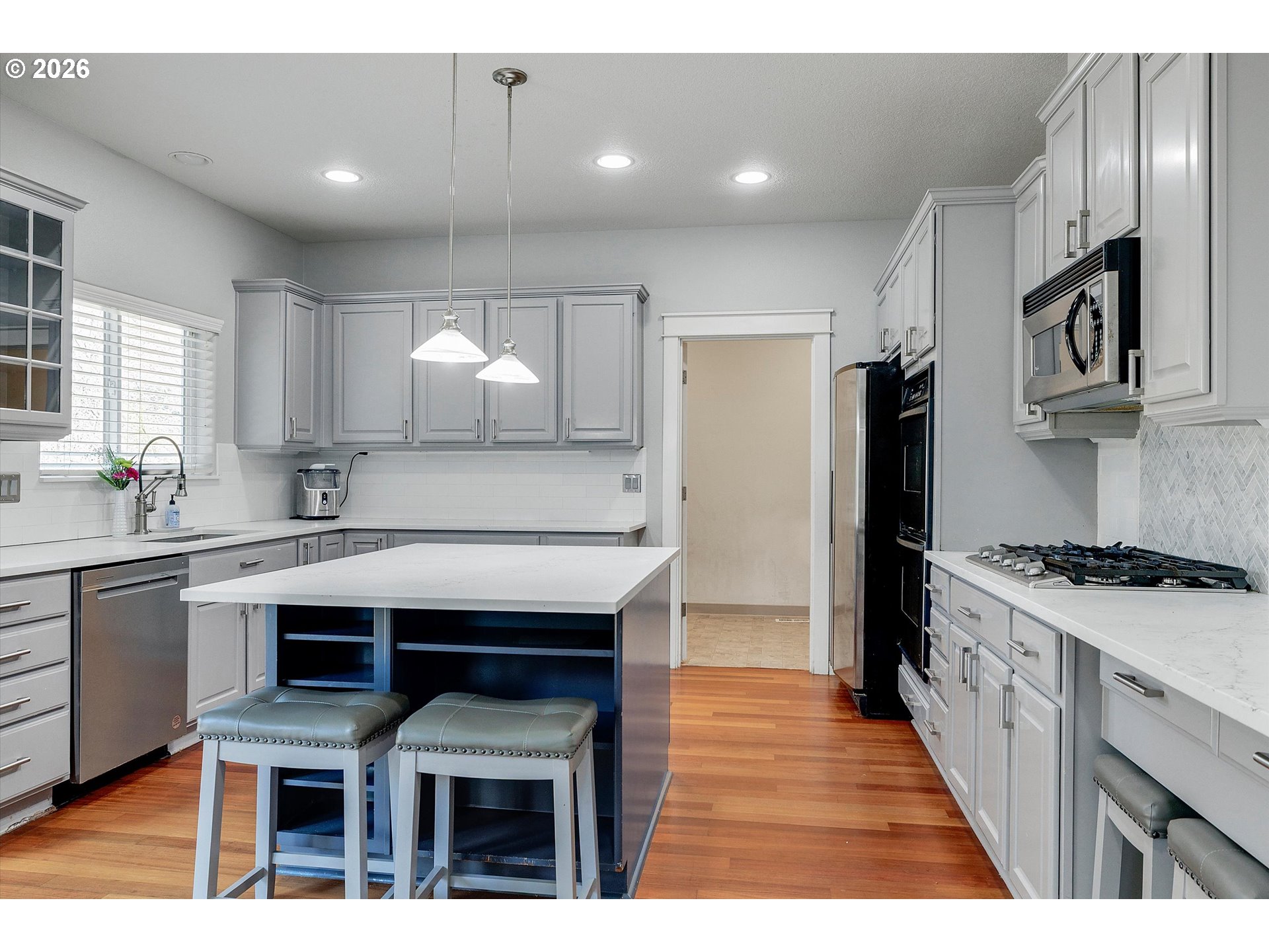 Welcome home to this beautifully updated and exceptionally spacious 4-bedroom, 2.5-bath residence with dedicated office and bonus room, perfectly located in the heart of Happy Valley. Just minutes from Happy Valley Park and top-rated schools, this home offers the ideal blend of comfort, flexibility, and convenience. Designed with both everyday living and entertaining in mind, the thoughtful layout provides room to grow and adapt to your needs. All four bedrooms are generously sized and feature walk-in closets, while the expansive bonus room and private office create endless possibilities for work, play, or relaxation. The main level showcases a beautifully updated kitchen and a warm, inviting double-sided fireplace that anchors the living spaces with charm and ambiance. A spacious mudroom and walk-in pantry add everyday practicality, and the oversized 3-car garage offers abundant storage. Upstairs, the primary suite is a true retreat—smartly positioned across from the secondary bedrooms for added privacy. Enjoy your own fireplace and a tastefully updated primary bath designed for comfort and style. Step outside to a backyard built for enjoyment and imagination. The deck and patio provide wonderful spaces for gathering, while the grassy area and additional space invite you to create your own private oasis. This is one of eight homes in the neighborhood with no HOA! With its generous proportions, modern updates, and unbeatable location, this home truly has it all. The next chapter of your life begins here!