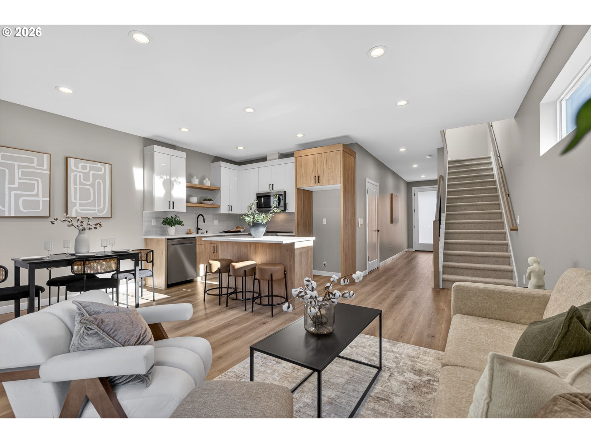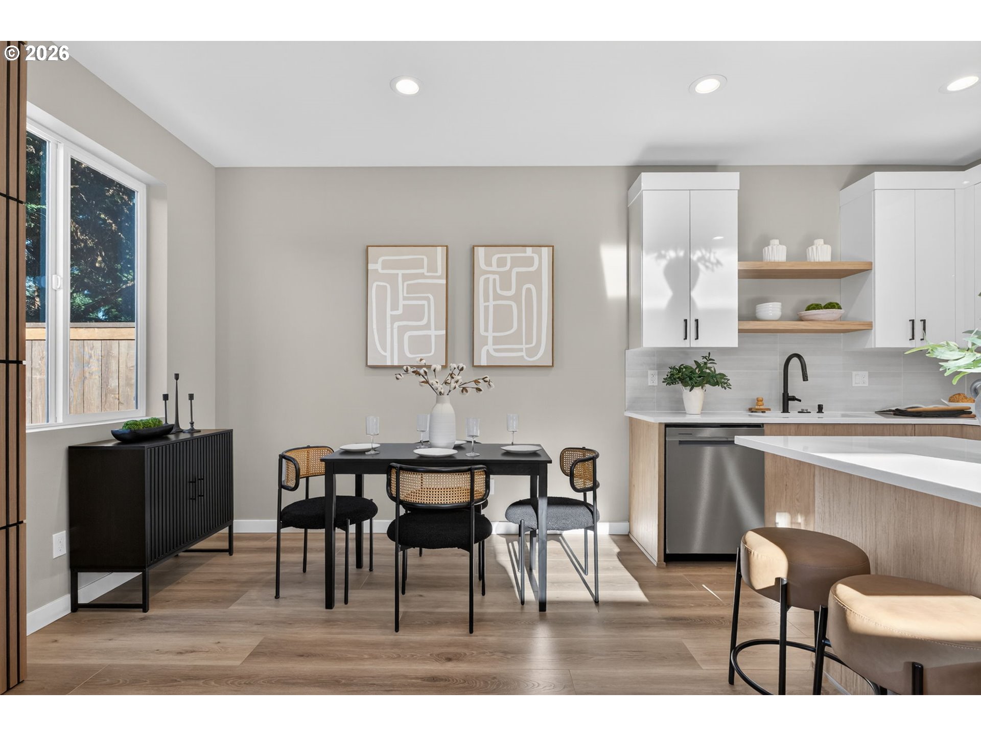 No HOA! End unit! Just completed top notch new construction townhome in desirable neighborhood! 3 bedrooms and 2.5 bathrooms. 9ft ceilings downstairs and upstairs. Stylish high-end finishes and premium quality! High efficiency ductless mini-split system with heating & cooling and heat pump water heater. Open and modern floorplan with open living area including an electric fireplace. Quartz countertops, water resistant laminate floors, high end appliances, and beautiful tile work. Low maintenance yard with patio. 30 amp ev charger outlet in garage. No shared walls, each unit is structurally independent, and has its own 2x6 wall separated by 1 inch air gap. [Home Energy Score = 10. HES Report at https://rpt.greenbuildingregistry.com/hes/OR10243374]