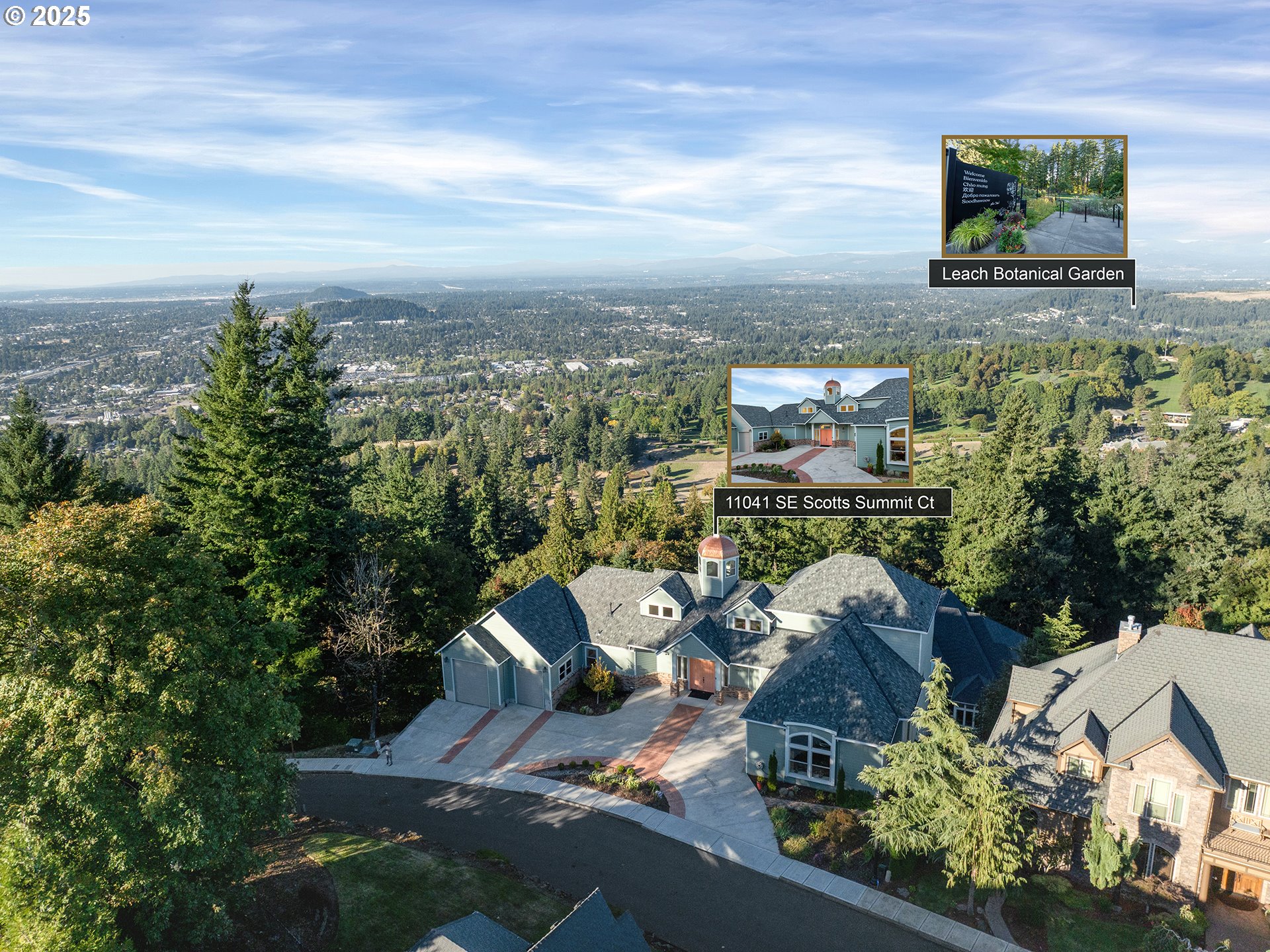 (503) 893-8874Perched to capture sweeping panoramic views, this 6,500 sq ft masterpiece offers timeless design, expansive living and unique architectural detail. Featuring 5 bedrooms and 4 full bathrooms, the home blends elegance with functionality, perfect for both everyday living and grand entertaining. Built with ICF (Insulated Concrete Form) construction, this residence provides exceptional energy efficiency, durability and year-round comfort, an upgrade rarely found in homes of this scale. Step inside to soaring 10-12 foot ceilings, walls of windows that flood the home with natural light and a distinctive cupola that adds character and charm. Generous living spaces flow seamlessly, including a large office with sweeping views, a formal living room, multiple gathering areas and a chef’s kitchen designed for both beauty and practicality. The spacious primary suite provides a private retreat with breathtaking outlooks, while additional bedrooms offer comfort for family and guests. On the lower level, you’ll find a theater room, second full kitchen, bedroom, living room and an auxiliary studio space with a separate entrance and two bathrooms. A basement workshop area creates the ideal space for hobbies, projects or storage. Outdoor living is equally inviting, with expansive decks and terraces that showcase stunning summit vistas, perfect for enjoying golden sunsets or hosting memorable gatherings.