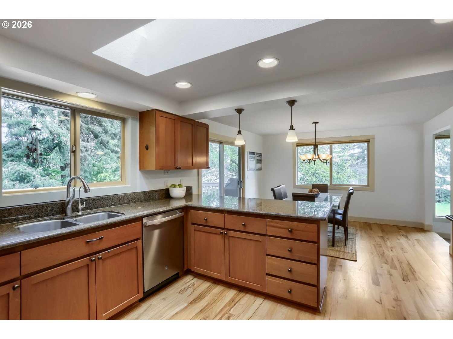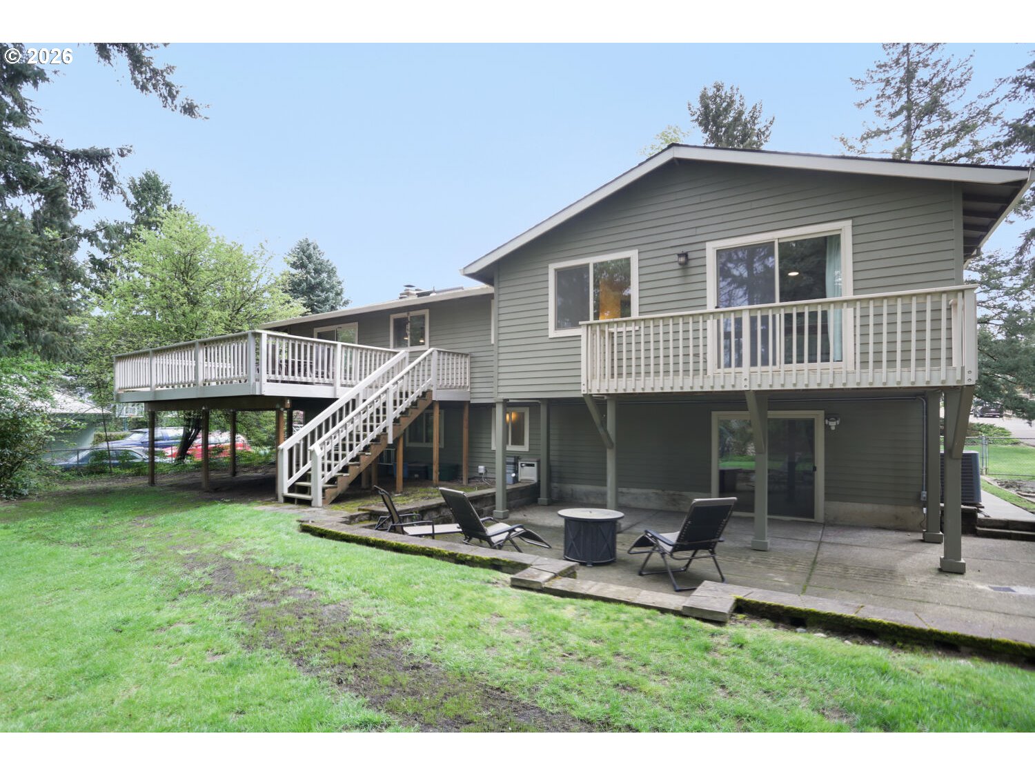 Large windows open to the serenity of this private .43 acre lot where the fawns wander through and bird songs welcome the new day. The home has been beautifully updated and maintained, and major systems were replaced in the last 5 years: electrical panel, furnace, AC, water heater, water filtration in kitchen, deck, fridge, dishwasher, new 4" Cured in place "sewer" pipe liner with a 45-year warranty, and a 22kw Whole Home Generac generator plumbed in for peace of mind. Two living spaces offer family flexibility and privacy. Lower level: large game room with bar, family room with wood burning fireplace, dedicated laundry room, bedroom and full bath. Upper level: Primary with walk- in closet, ensuite bathroom with soaking tub and a view to this peaceful back yard, 2 additional bedrooms and full bath, family room with wodd burning fireplace, kitchen, and dining area. RV or boat parking, plus ample space for more vehicles. The neighborhood offers multiple parks, swimming pools (membership required), a nearby public boat launch on the Willamette River is located close to major expressways, downtown PDX, and shopping. If you are looking for serenity and convenience, this is it!