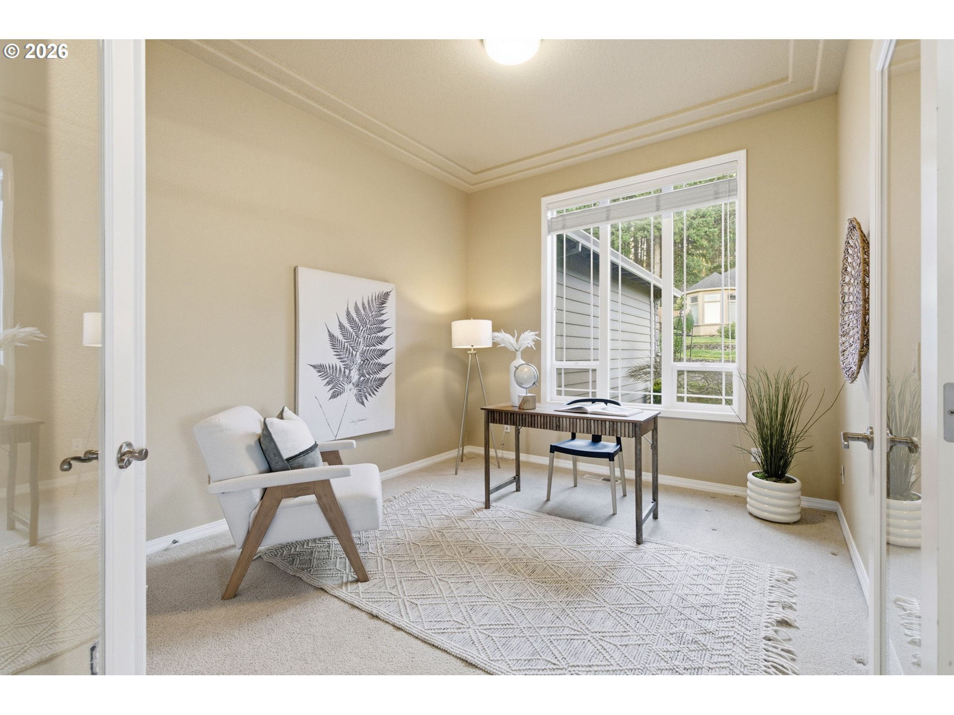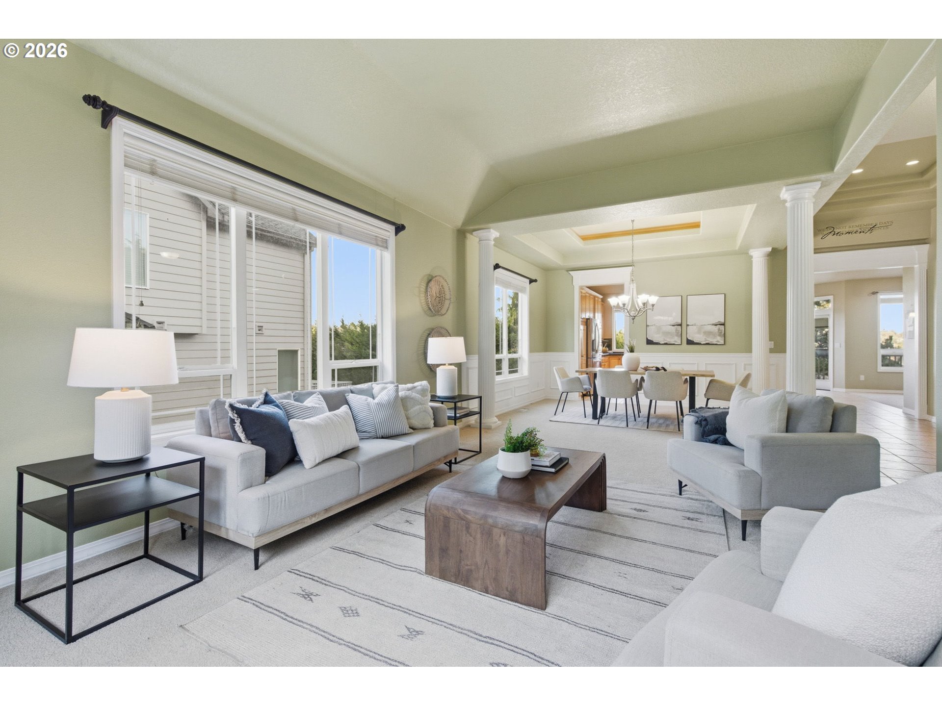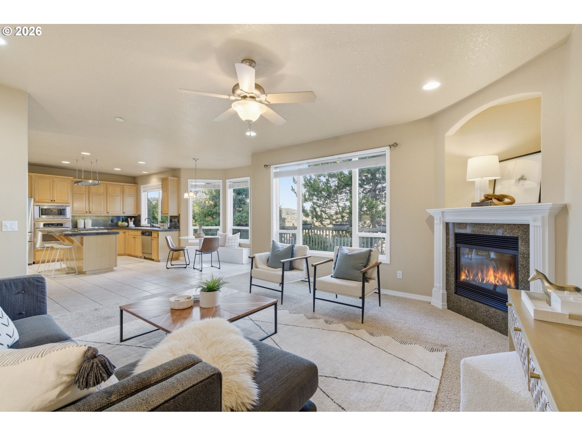 Striking NW Contemporary home in Happy Valley with scenic views, open-concept design, and desirable one-level living. This move-in-ready property features soaring ceilings, abundant natural light, and a thoughtfully designed floor plan ideal for both everyday living and entertaining. The spacious living room flows seamlessly into a vaulted formal dining area, while the chef’s kitchen offers an island, stainless steel appliances, ample storage, and opens to a breakfast nook and large family room with a gas fireplace. Enjoy effortless indoor-outdoor living with access to an expansive deck—perfect for dining, relaxing, or taking in the views.The private primary suite includes French doors, deck access, an ensuite bath, and serene views. Two additional bedrooms, a guest bath, a dedicated den/home office, and a full laundry room provide flexible living options for remote work, guests, or multigenerational living.Recent system updates include a newer furnace and water heater (approximately 1.5 years old). Additional highlights include an in-home vacuum system, a sprinkler system, and a full-height, exterior-access storage/crawlspace with power and lighting—ideal for extra storage, workshop space, or hobby use. Conveniently located just minutes from New Seasons, Peet’s Coffee, cafes, and restaurants for easy everyday living.