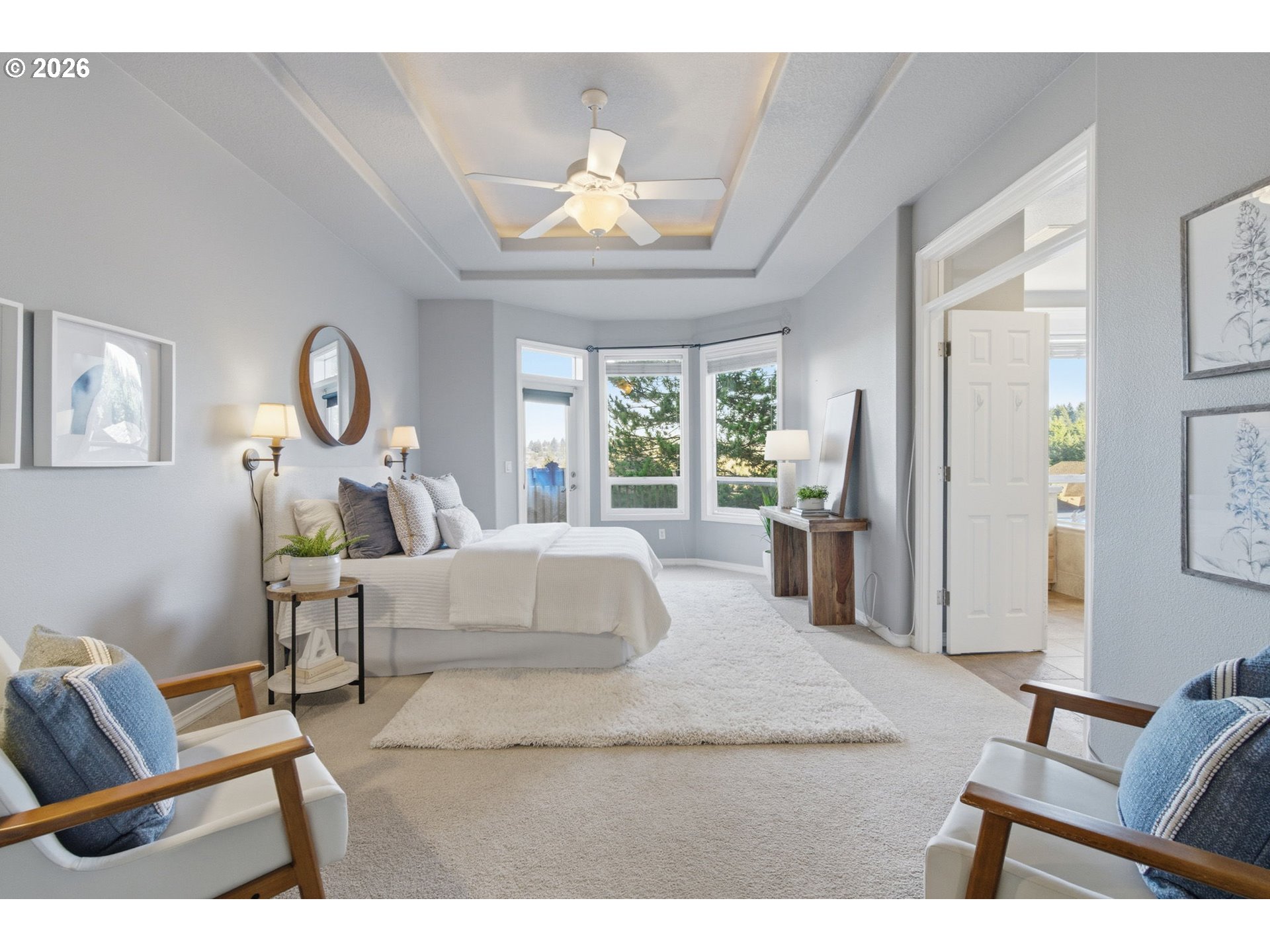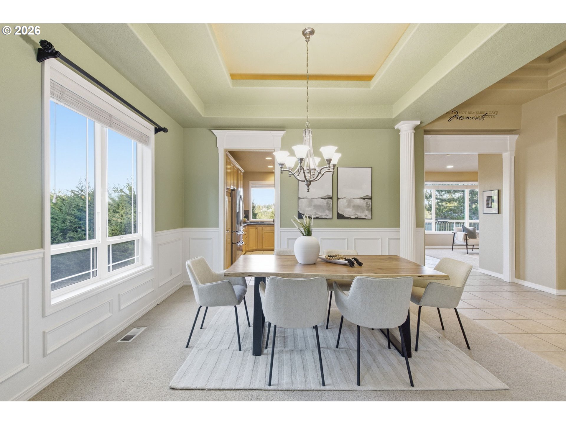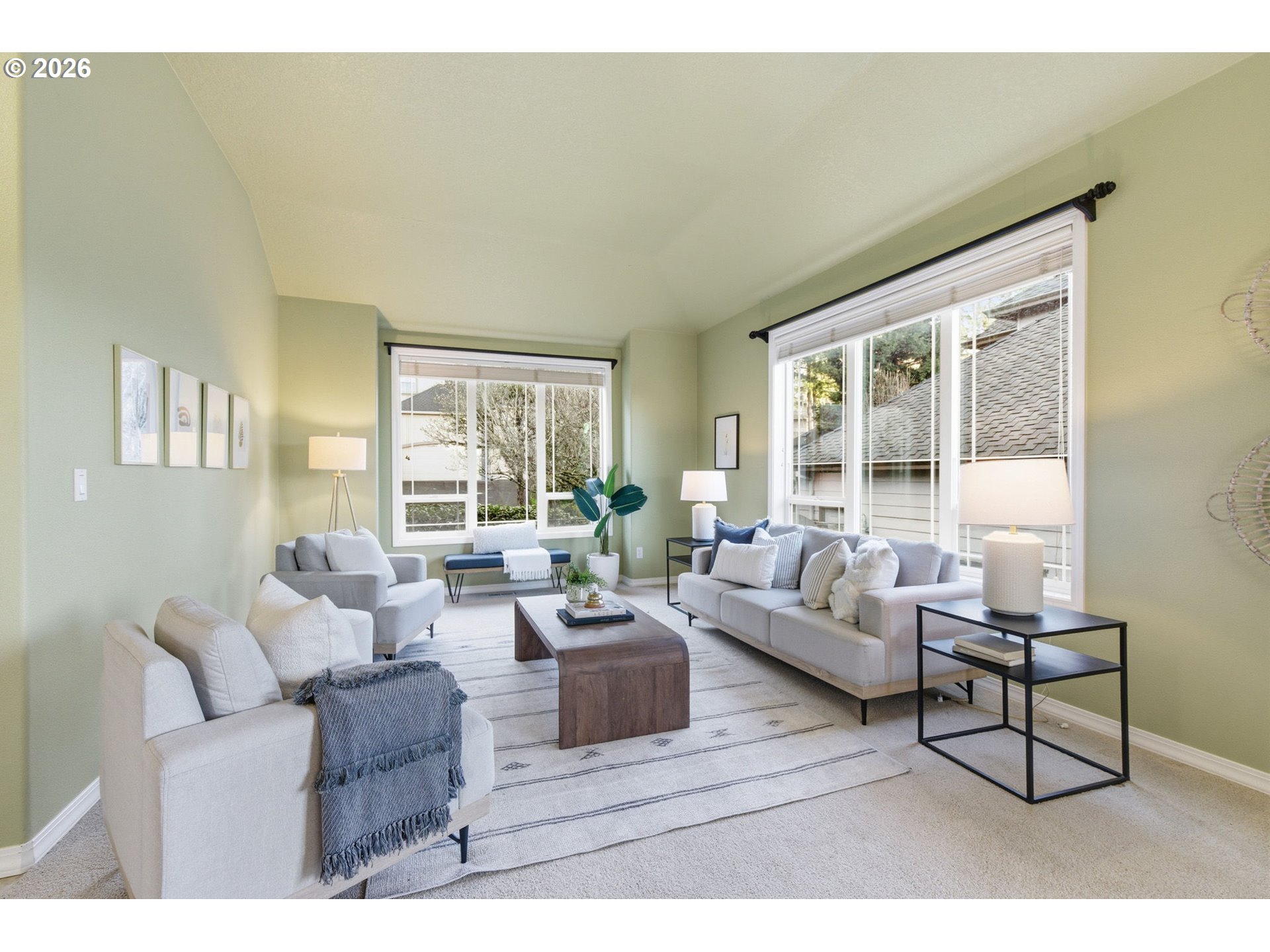 Striking NW Contemporary home in Happy Valley with scenic views, open-concept design, and desirable one-level living. This move-in-ready property features soaring ceilings, abundant natural light, and a thoughtfully designed floor plan ideal for both everyday living and entertaining. The spacious living room flows seamlessly into a vaulted formal dining area, while the chef’s kitchen offers an island, stainless steel appliances, ample storage, and opens to a breakfast nook and large family room with a gas fireplace. Enjoy effortless indoor-outdoor living with access to an expansive deck—perfect for dining, relaxing, or taking in the views.The private primary suite includes French doors, deck access, an ensuite bath, and serene views. Two additional bedrooms, a guest bath, a dedicated den/home office, and a full laundry room provide flexible living options for remote work, guests, or multigenerational living.Recent system updates include a newer furnace and water heater (approximately 1.5 years old). Additional highlights include an in-home vacuum system, a sprinkler system, and a full-height, exterior-access storage/crawlspace with power and lighting—ideal for extra storage, workshop space, or hobby use. Conveniently located just minutes from New Seasons, Peet’s Coffee, cafes, and restaurants for easy everyday living.