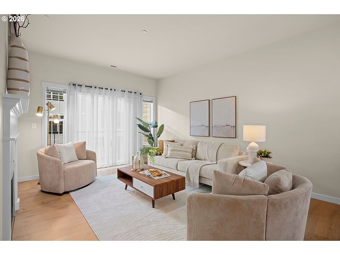 Right in the heart of the Villebois community, this pristine townhome has everything you’ve been waiting for, as well as breathtaking Mt Hood views from both the primary suite and the kitchen.Enjoy open concept living on the main level with a bright, modern kitchen featuring granite counters, stainless steel appliances, and gas range. The dining room and living room flow comfortably, and feature tasteful LVP flooring and a gas fireplace. Sliding doors lead out to an elevated deck, perfect for savoring your morning coffee.You’ll find a perfect office / flex space (or guest room) on the lower level, with its own attached half bathroom.Upstairs, there’s two bedrooms, each with their own private en-suite bathroom. And, on a clear day, you have a spectacular, unobstructed view of Mt Hood from the primary suite window!The sought-after Villebois community provides endless opportunities for recreation, exercise, and community engagement. Be sure to take a look around! This home is situated right across from both Montague Park and the Sparrow Creek Community Center. To name a few, the community offers a swimming pool, athletic courts (basketball, pickleball, volleyball, tennis, and tetherball), a skate park, large and small dog parks, several children’s parks, an outdoor amphitheater, weight room/gym, meeting room, and a party room. The HOA takes care of exterior maintenance, common area maintenance, and landscaping.