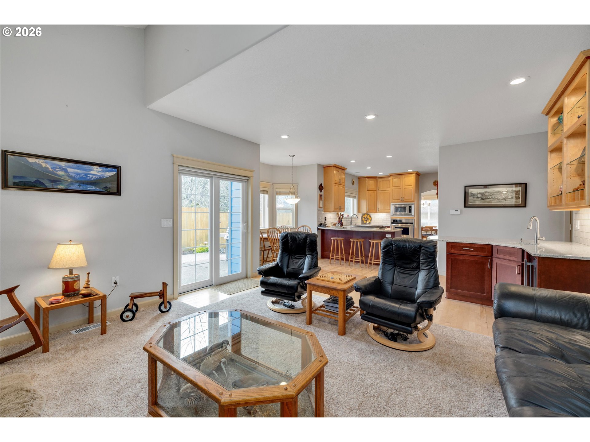 Northwest living at its finest with this beautifully updated Oregon City home, ideally located on a quiet dead-end street for added privacy and minimal traffic. Fresh exterior/interior paint and a newer roof provide lasting value and curb appeal, while expansive parking options — including a three-car garage and dedicated RV parking — offer the flexibility and storage today’s Oregon lifestyle demands.Step outside to a backyard perfect for year-round enjoyment, featuring curated landscaping, a custom firepit gathering area, and a peaceful water feature. Enhancing its appeal, the property backs to larger acreage with only one backyard neighbor currently, creating a tranquil setting that feels private and connected to nature.Inside, the updated kitchen combines timeless finishes with high-end performance. Granite hard-surface countertops anchor the space, complemented by premium appliances including a Miele dishwasher, JennAir downdraft gas range, and a built-in oven. Newer carpet throughout makes it ideal for hosting holiday gatherings or enjoying everyday cooking.